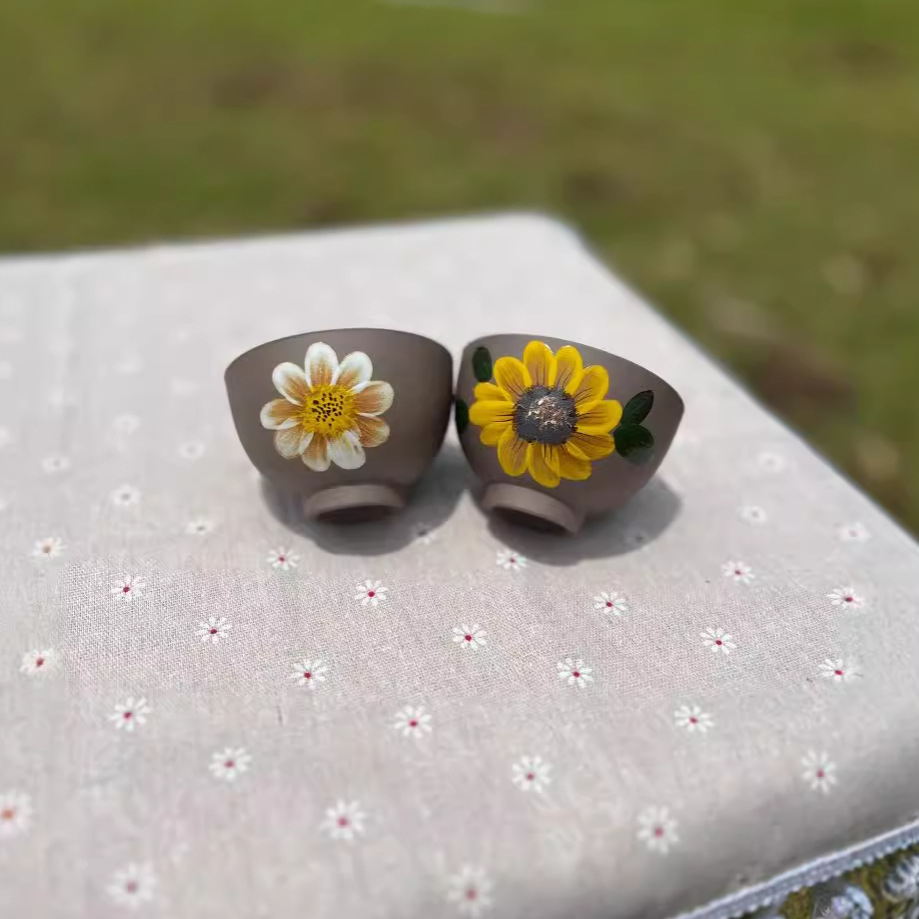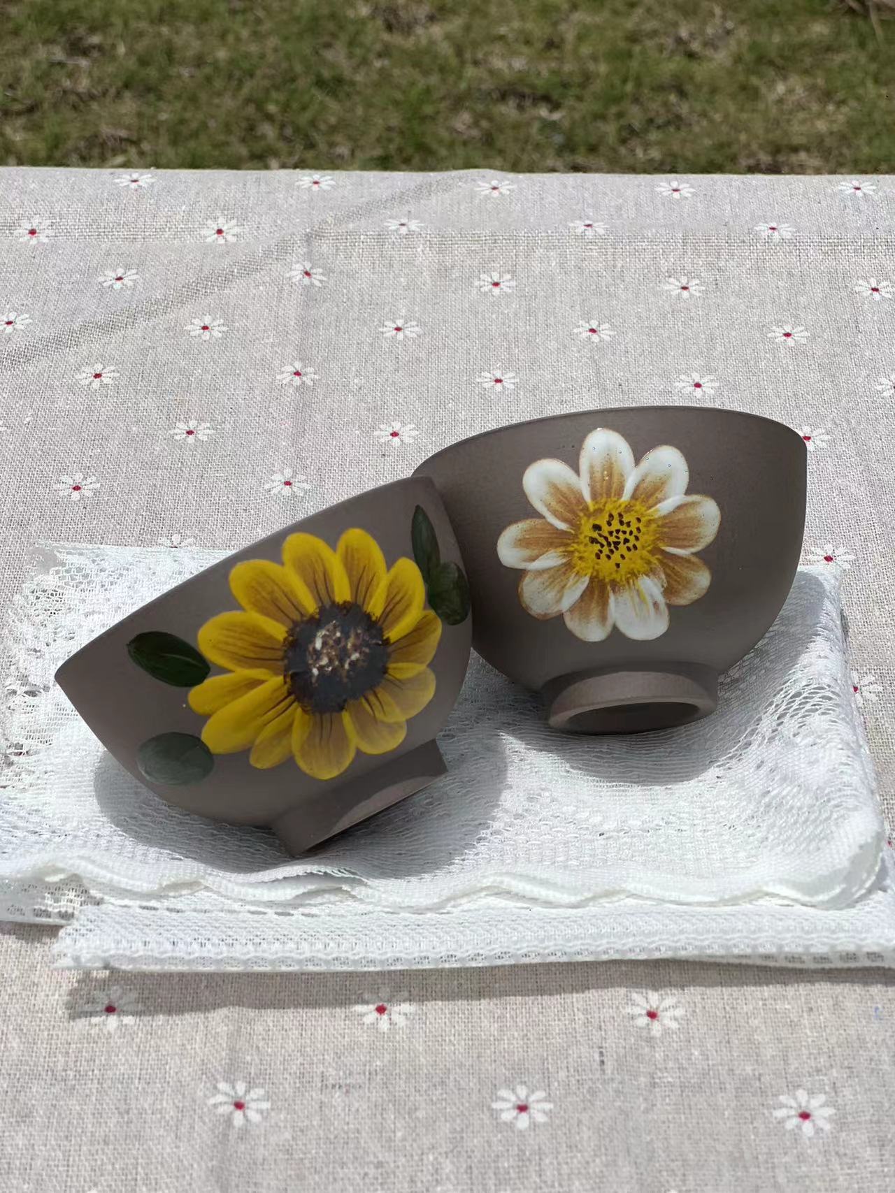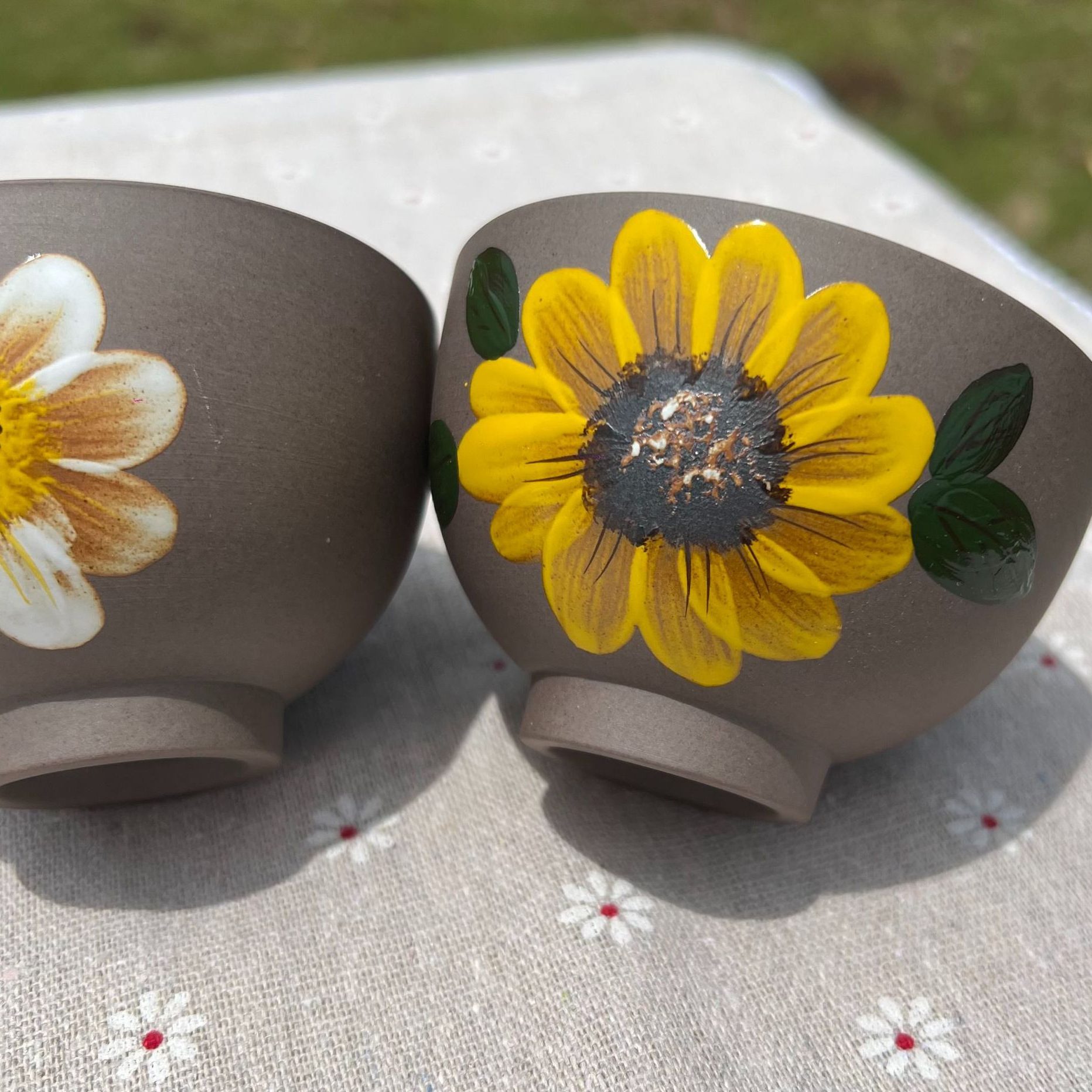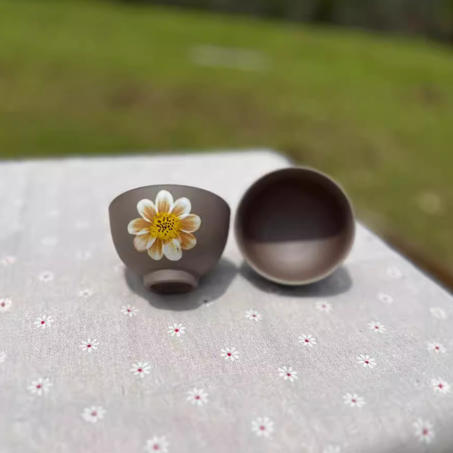 陶瓷纯手绘主人杯功夫茶杯复古釉下彩单杯粗陶喝茶品茗杯大号茶盏