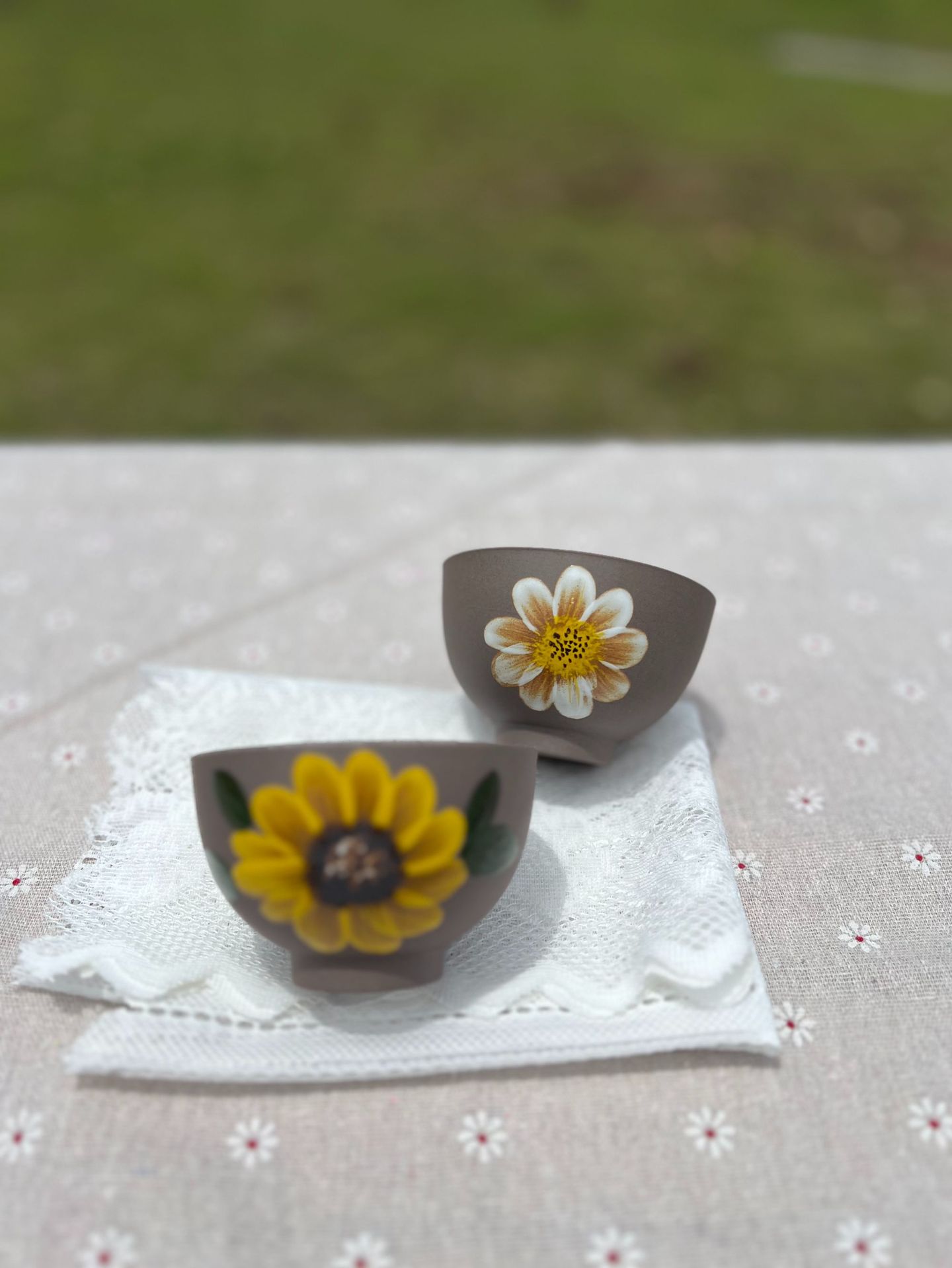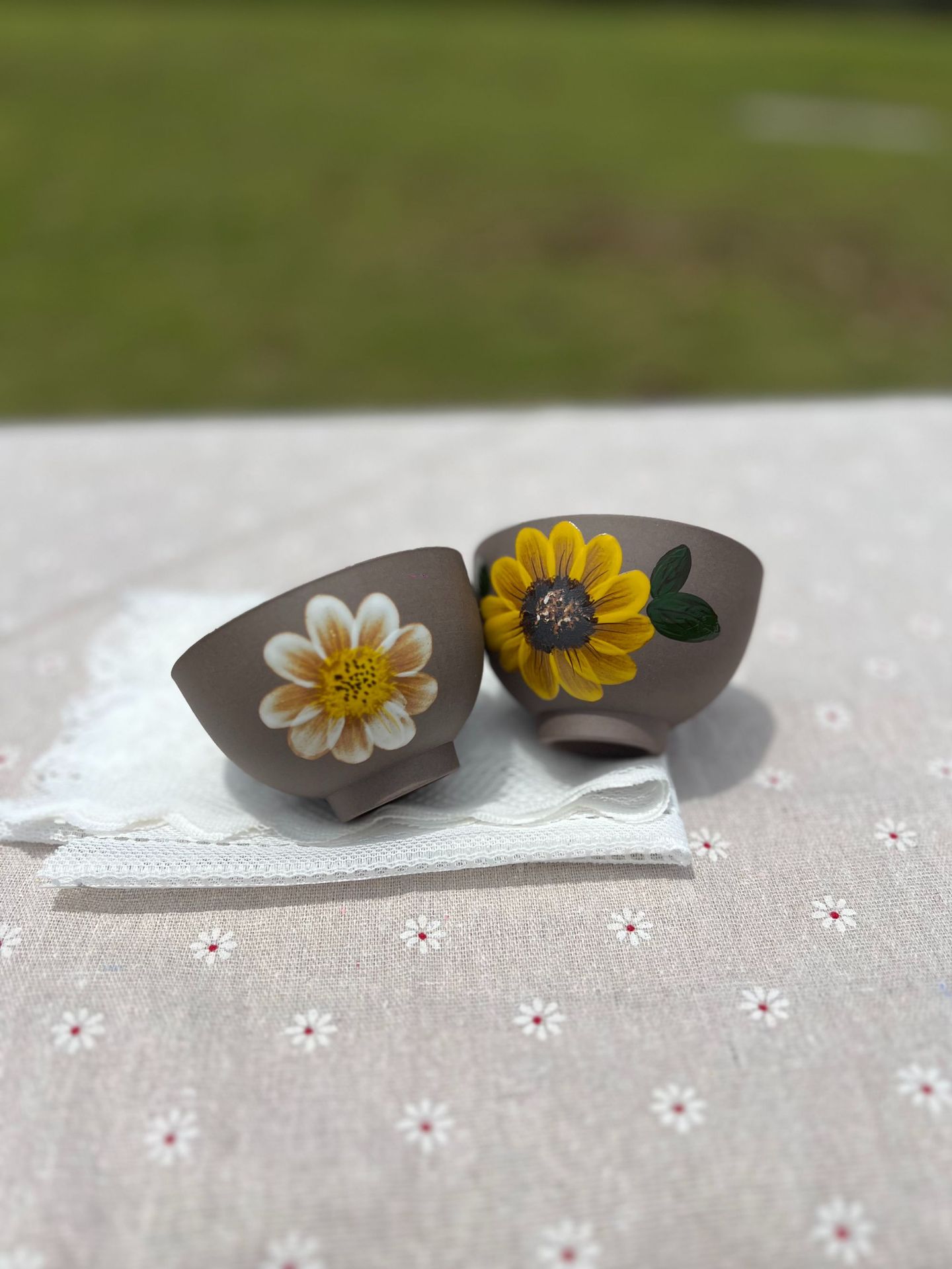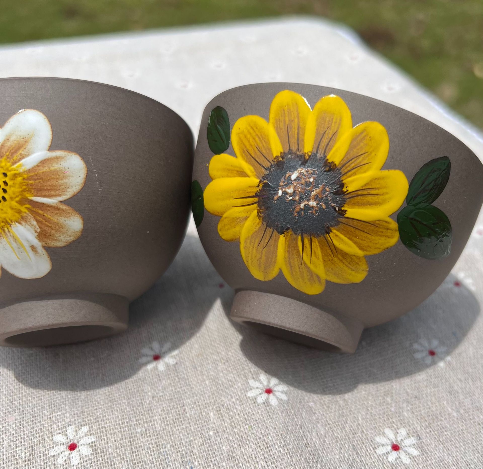 陶瓷纯手绘主人杯功夫茶杯复古釉下彩单杯粗陶喝茶品茗杯大号茶盏