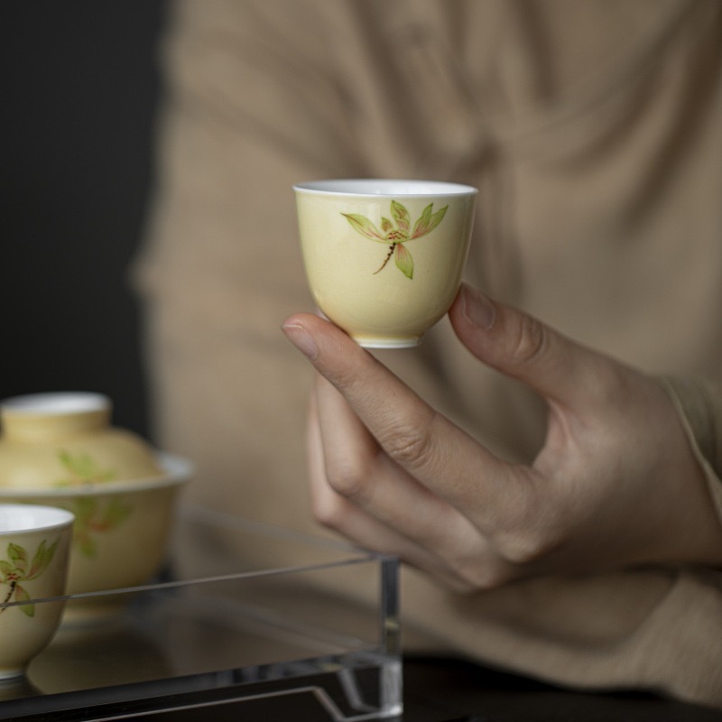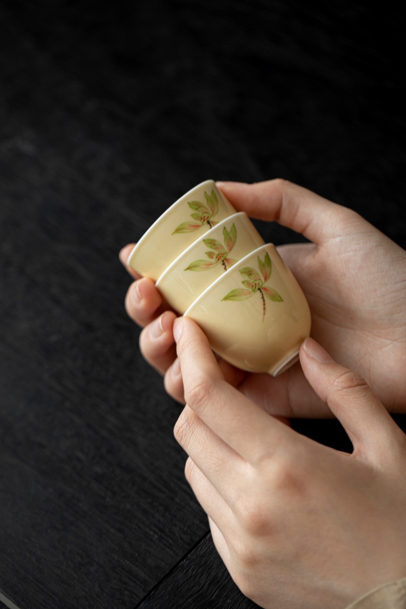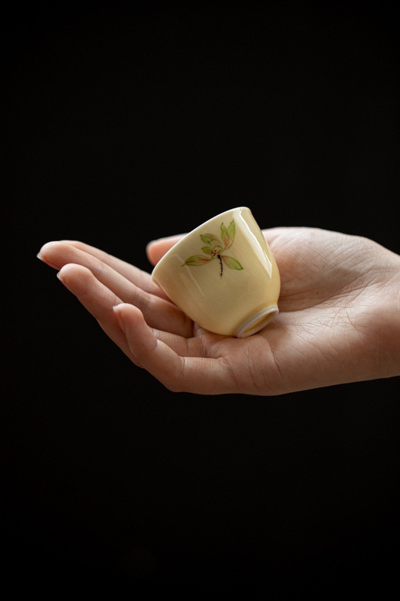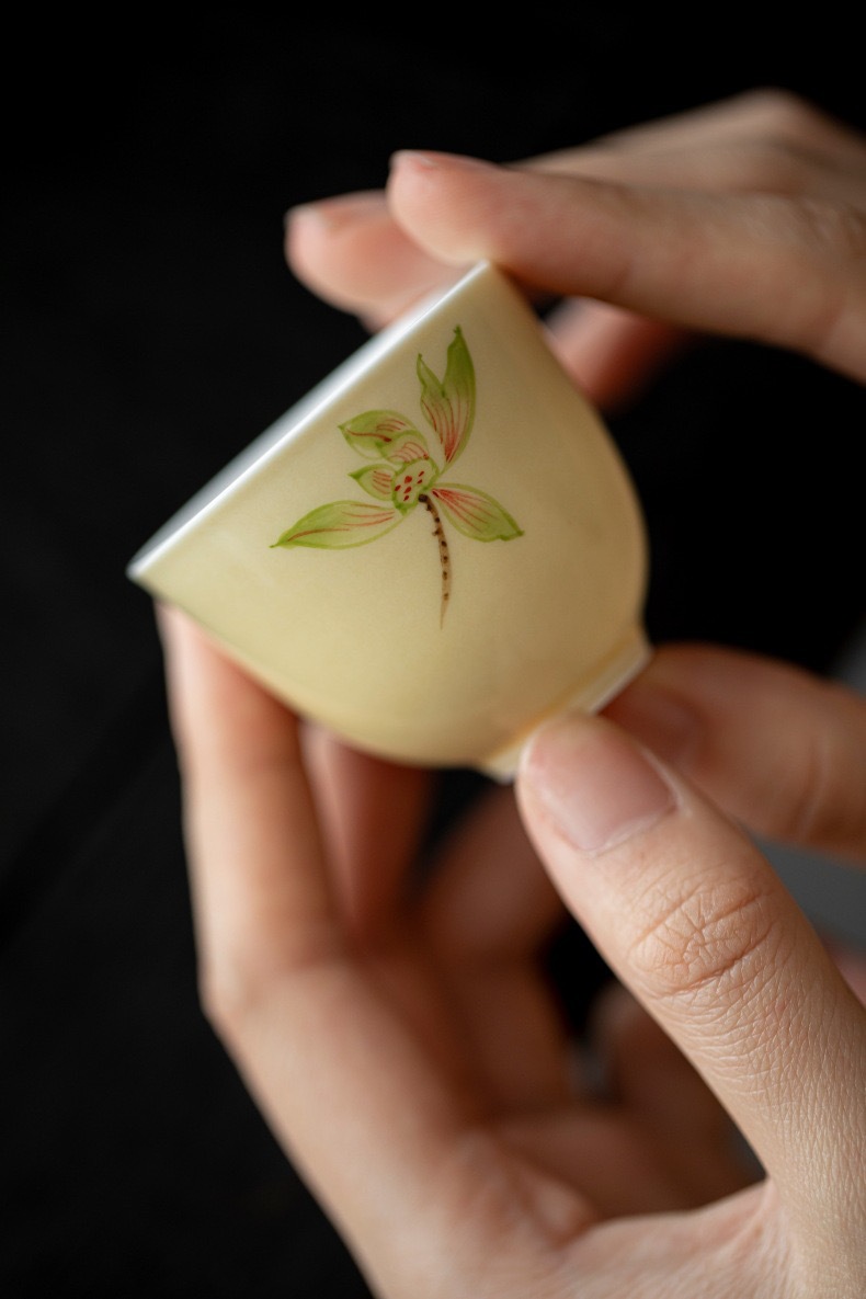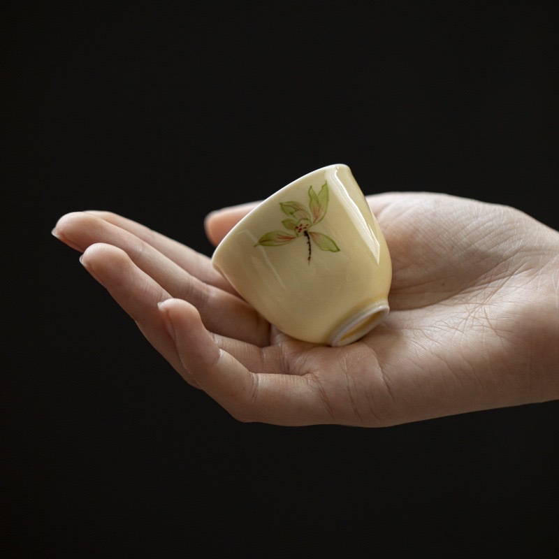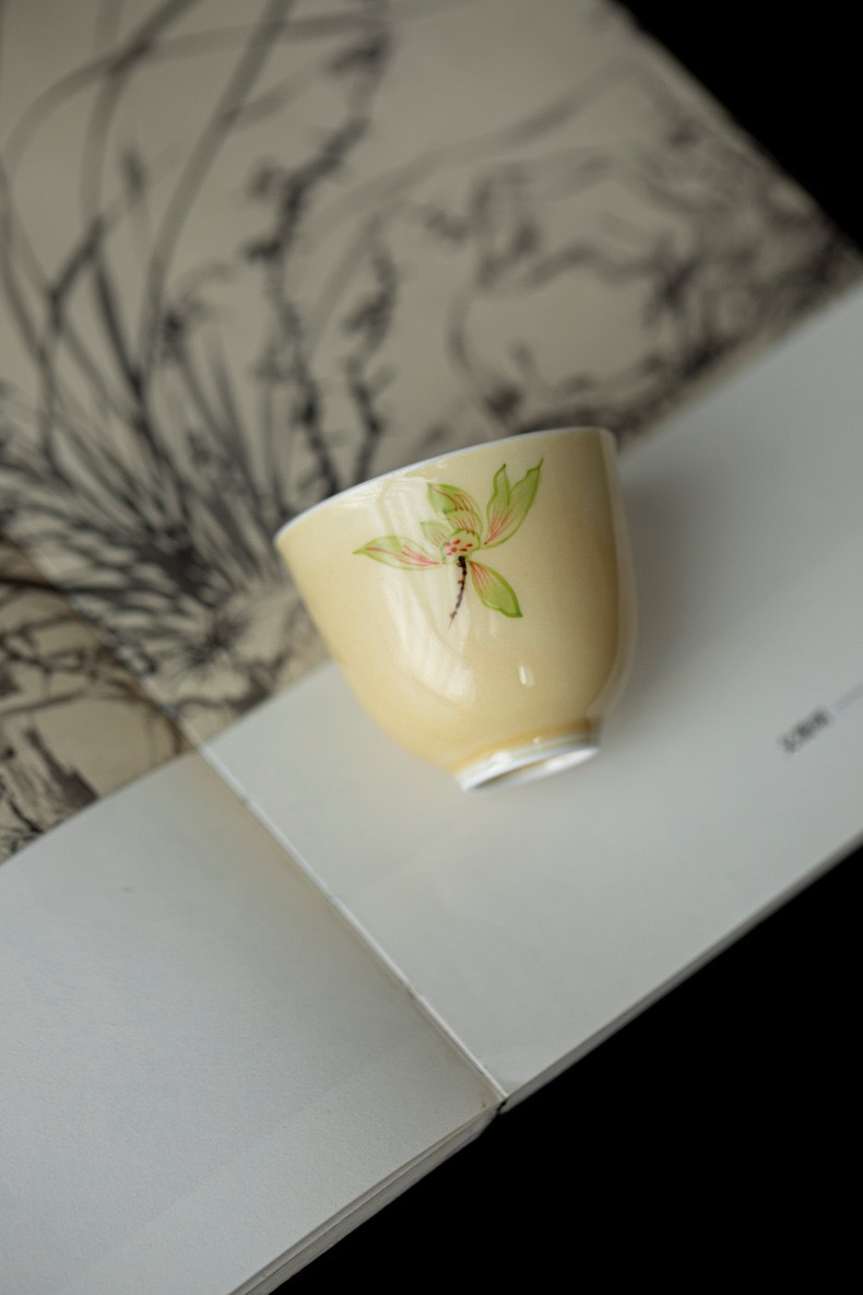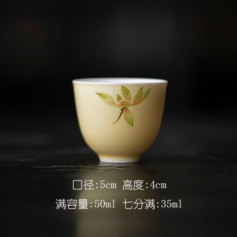 手绘玉兰花茶杯陶瓷功夫茶杯主人杯单杯白瓷家用品茗杯釉下彩喝茶