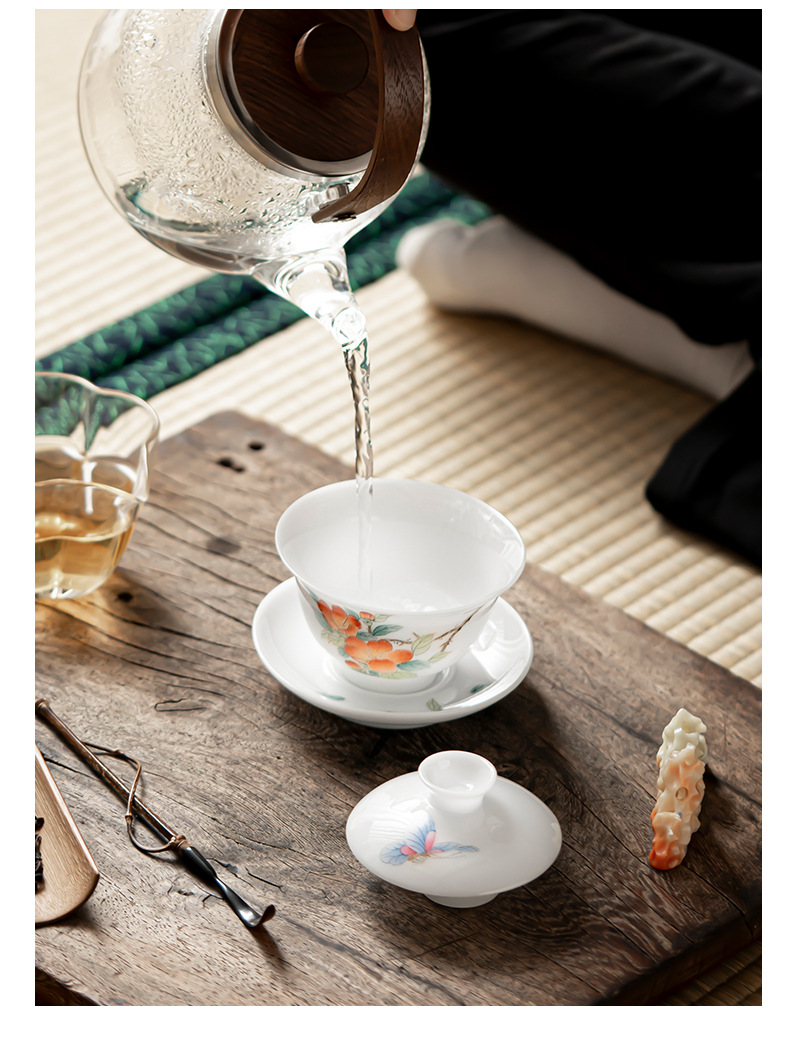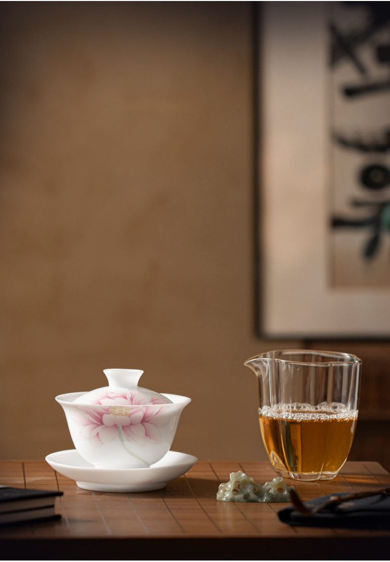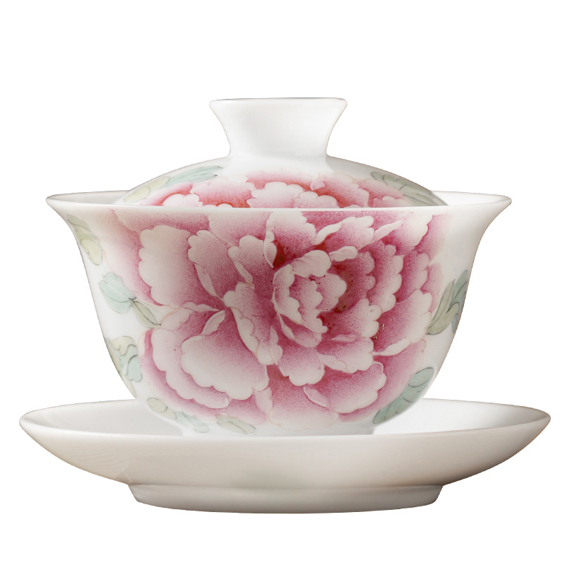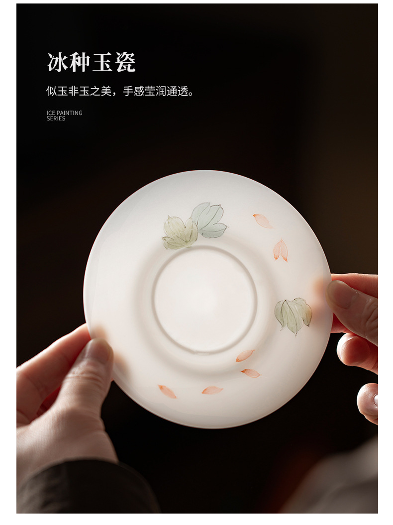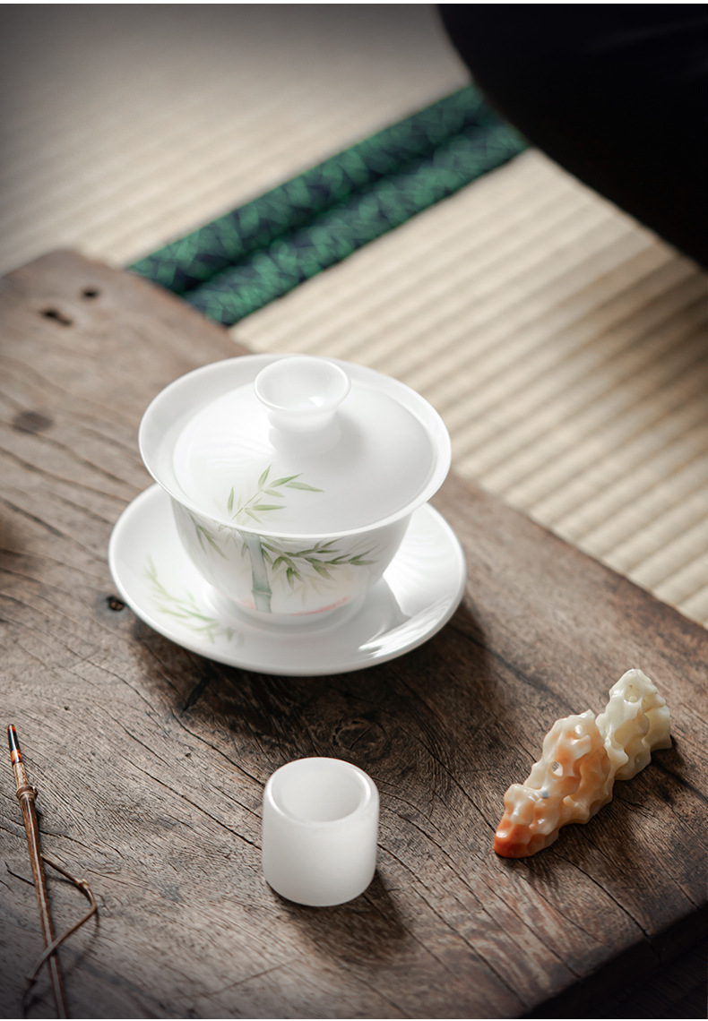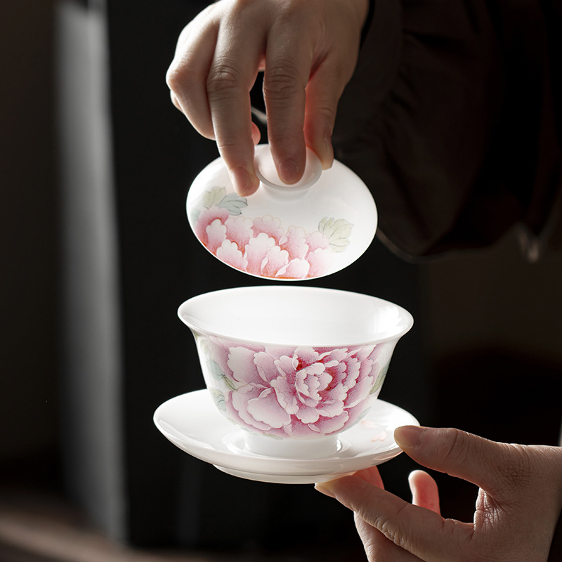 国风手绘冰种三才盖碗茶杯单个陶瓷不烫手盖碗三才茶盏泡茶碗高端