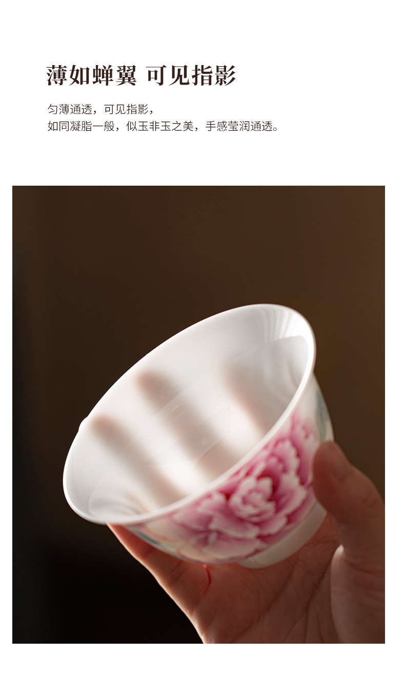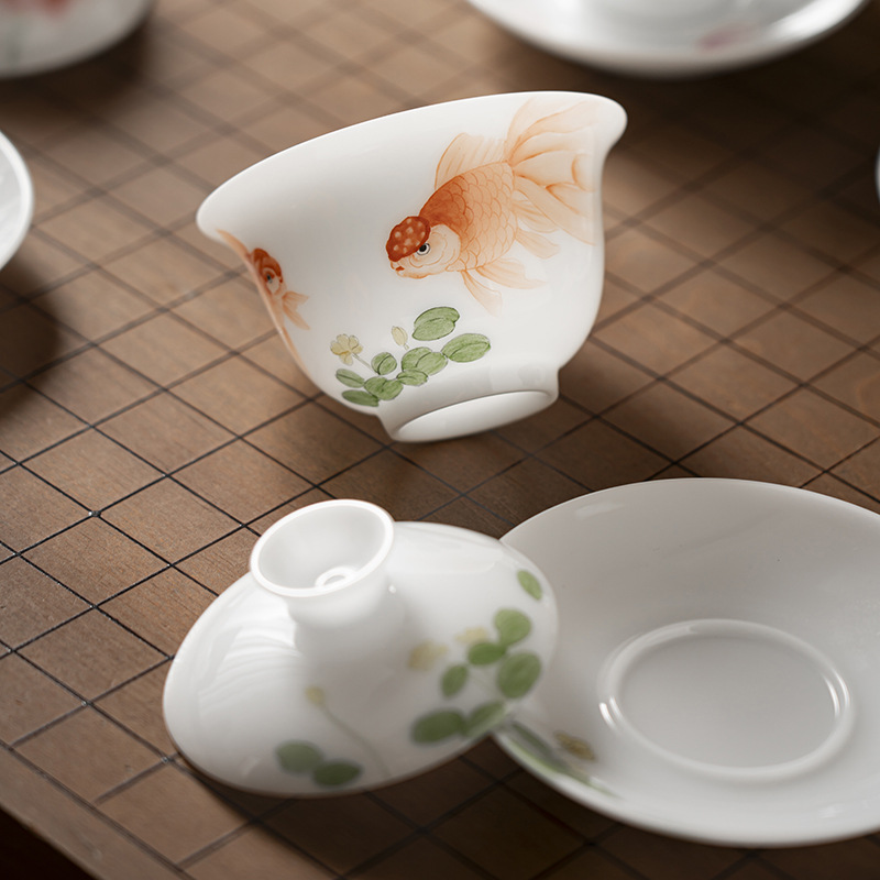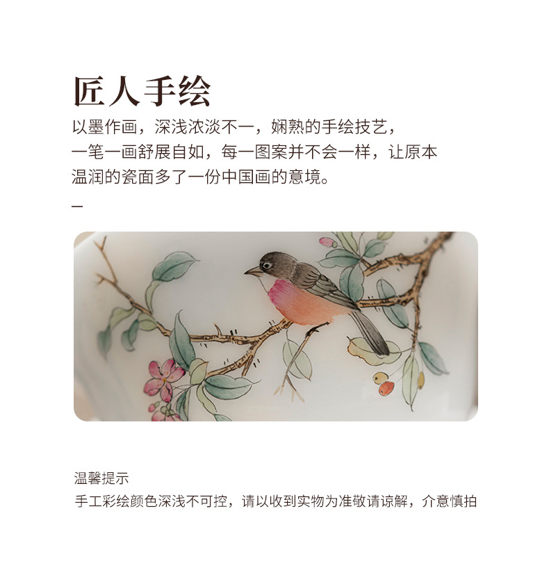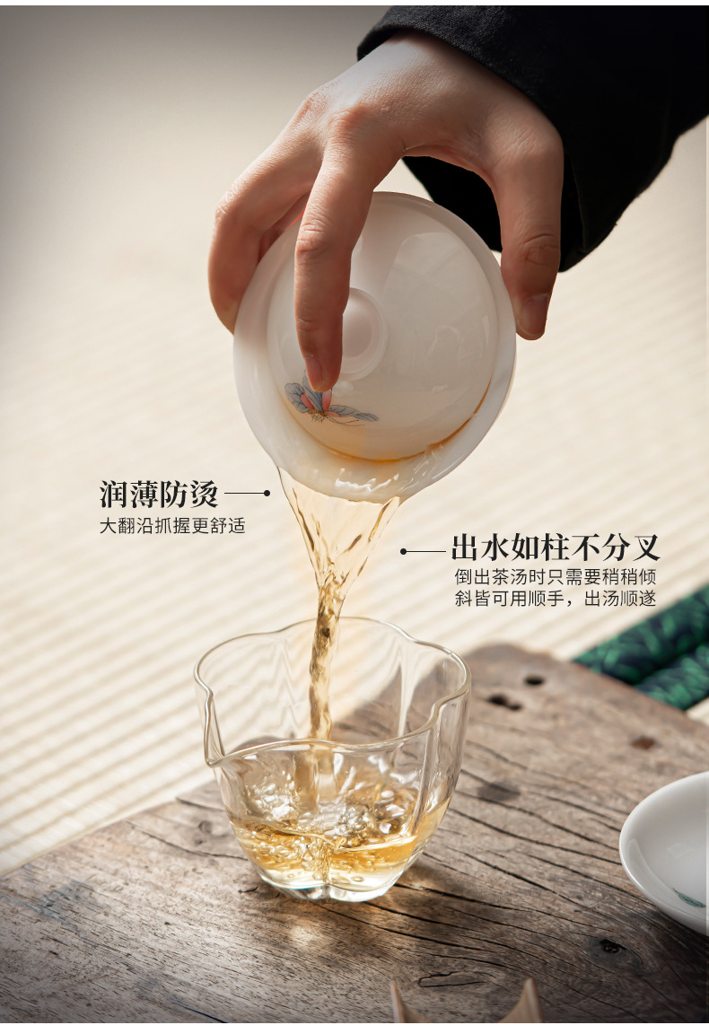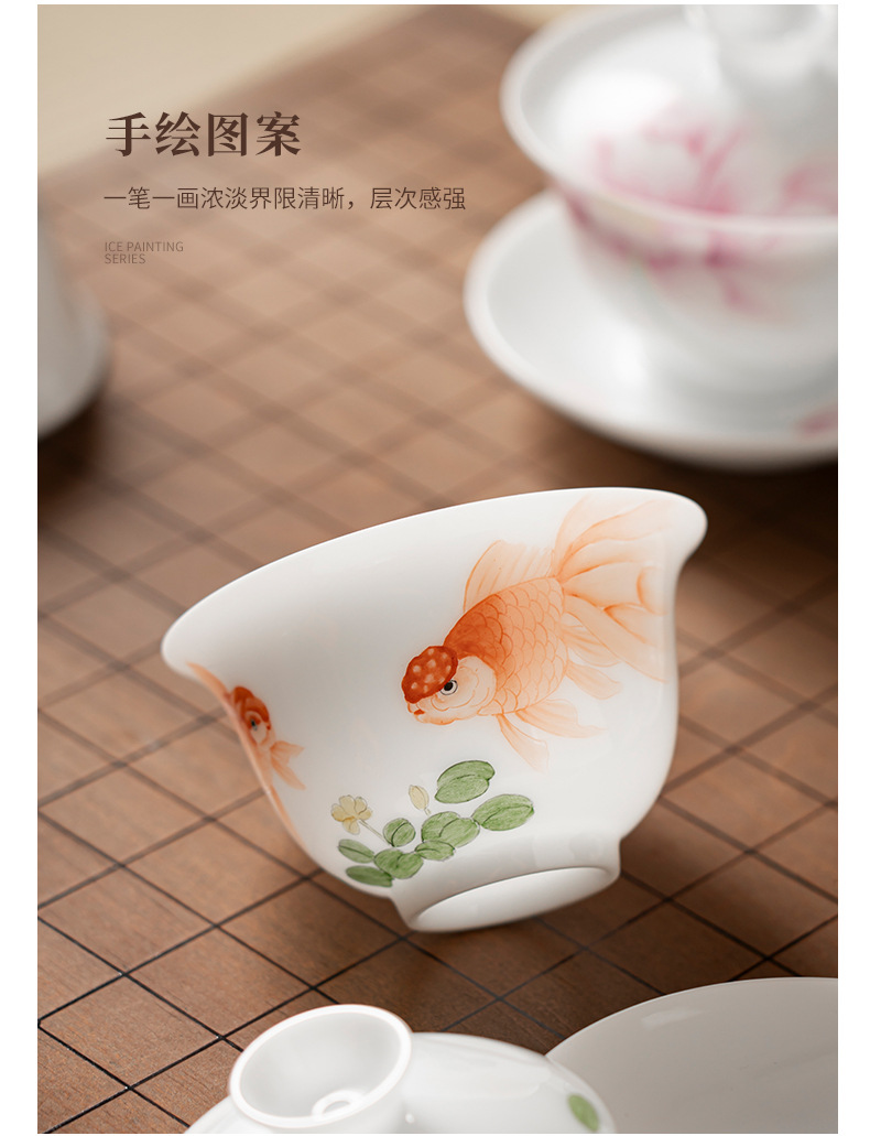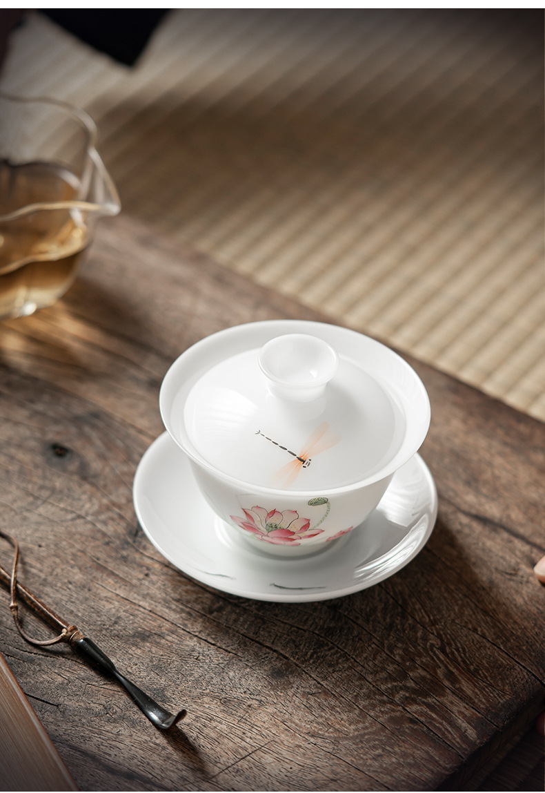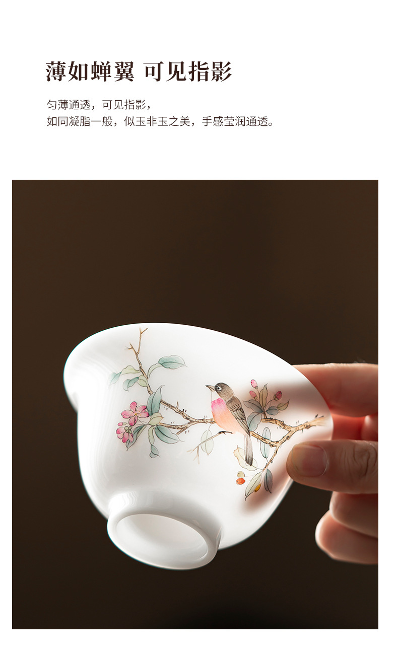 国风手绘冰种三才盖碗茶杯单个陶瓷不烫手盖碗三才茶盏泡茶碗高端