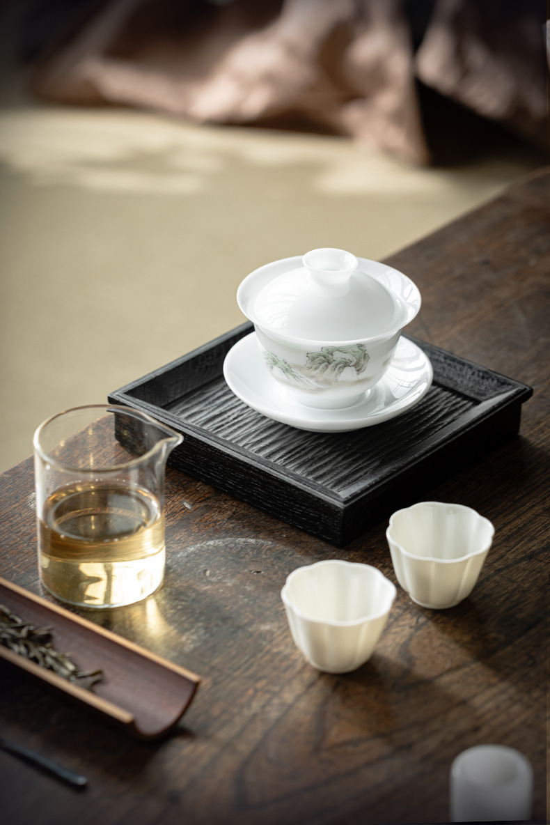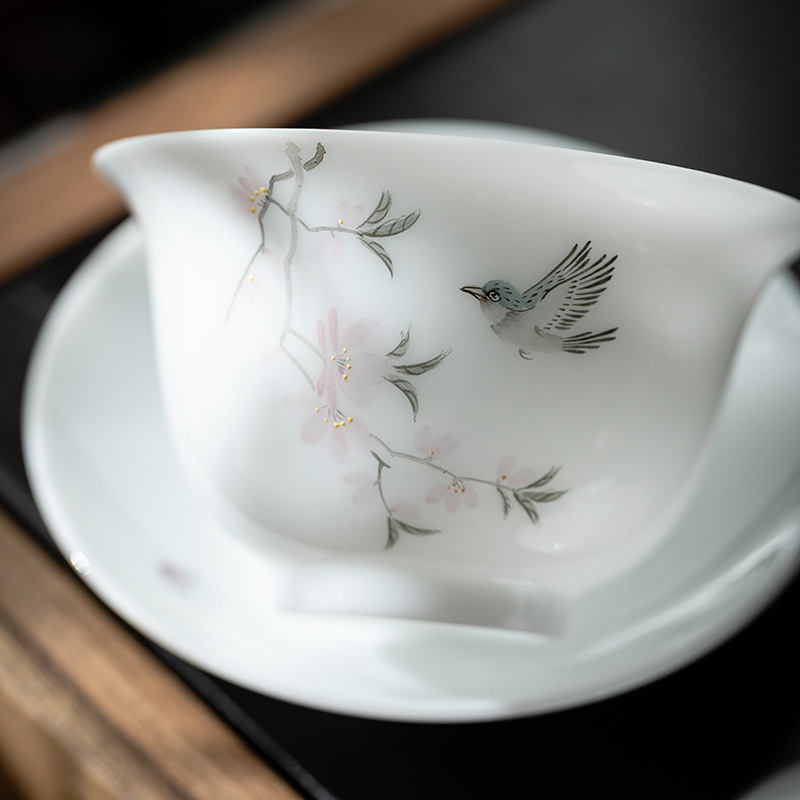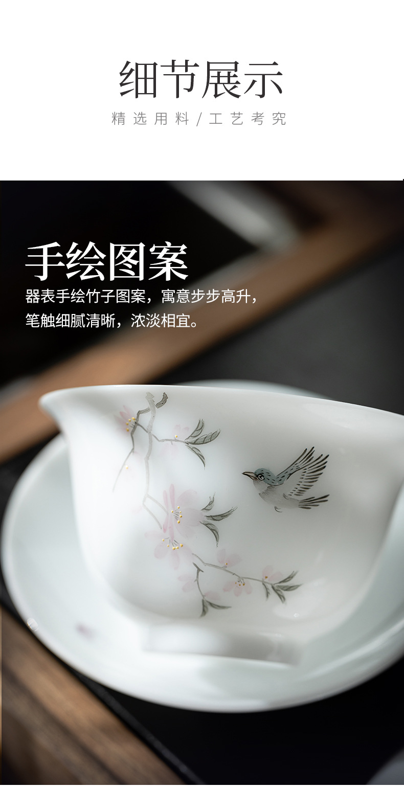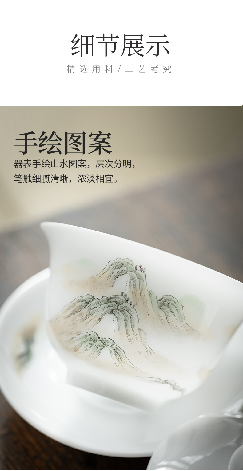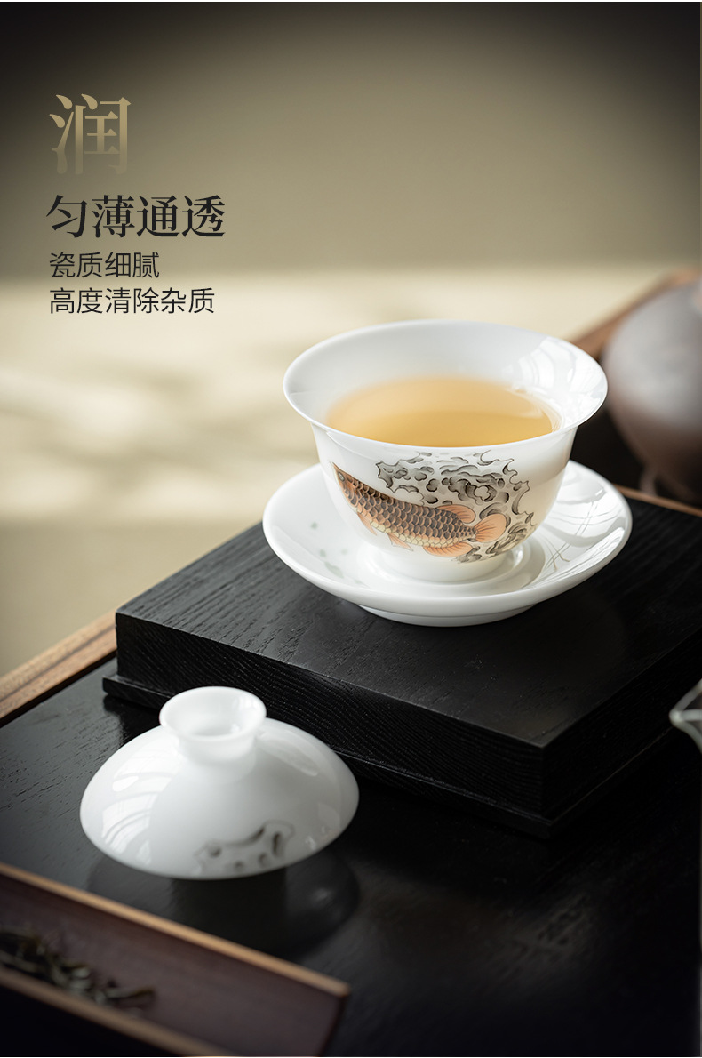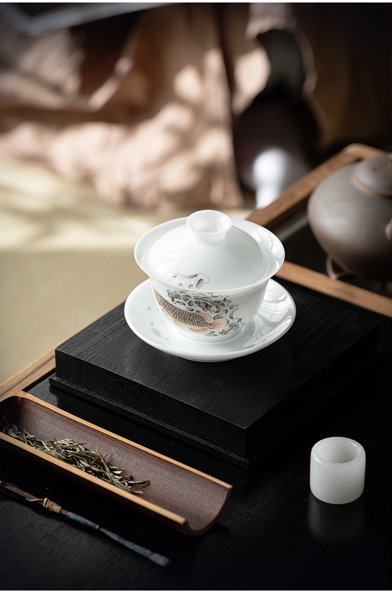 手绘粉彩三才盖碗单个不烫手高档冰种玉瓷泡茶碗陶瓷盖碗茶杯三才
