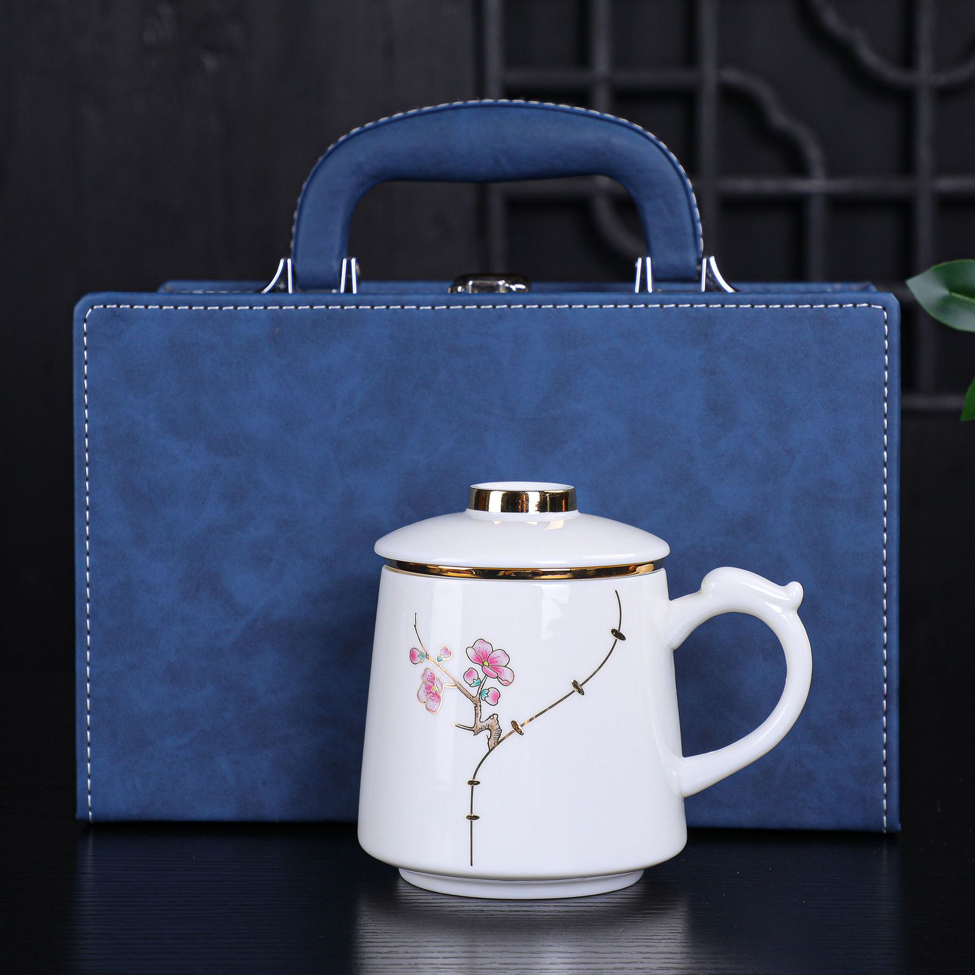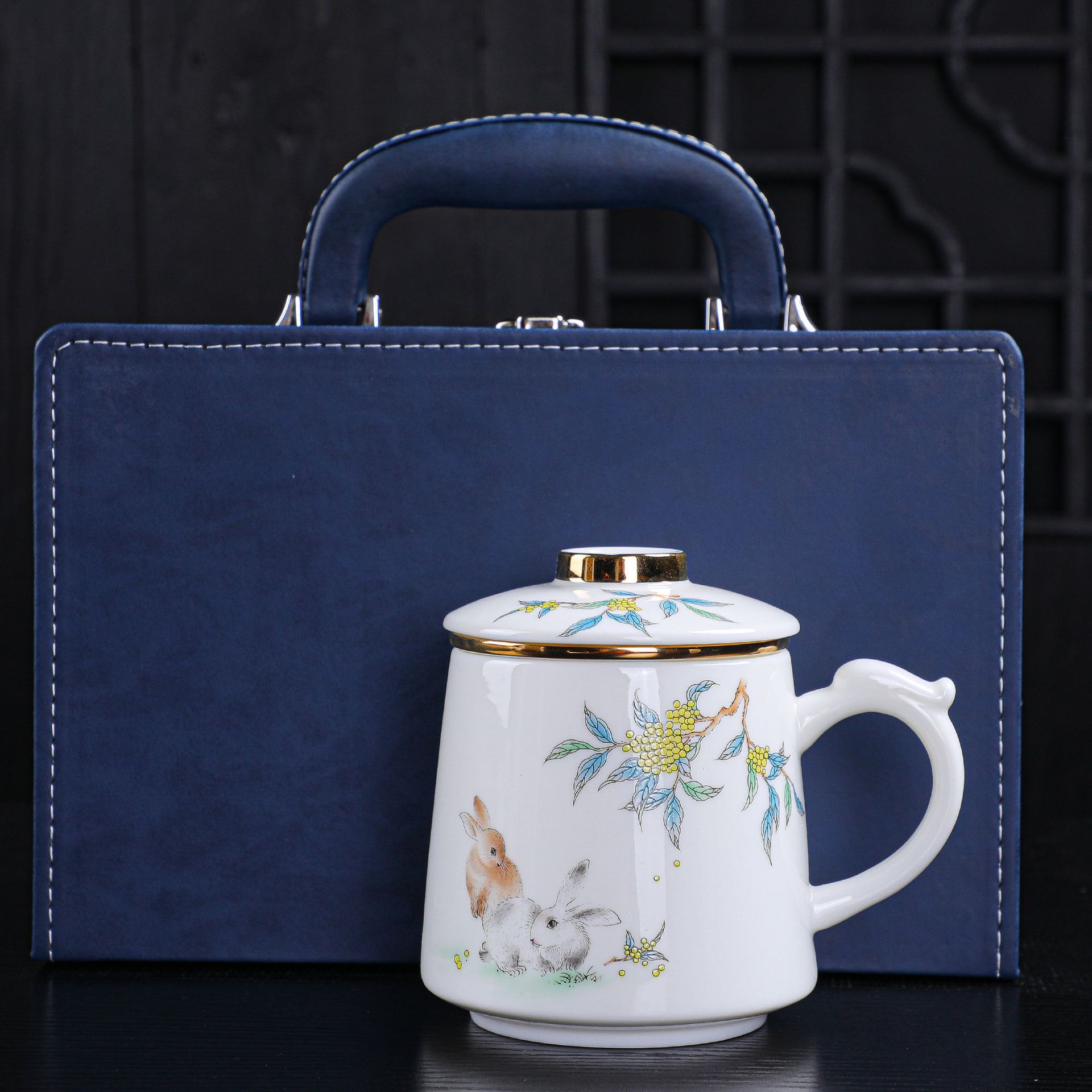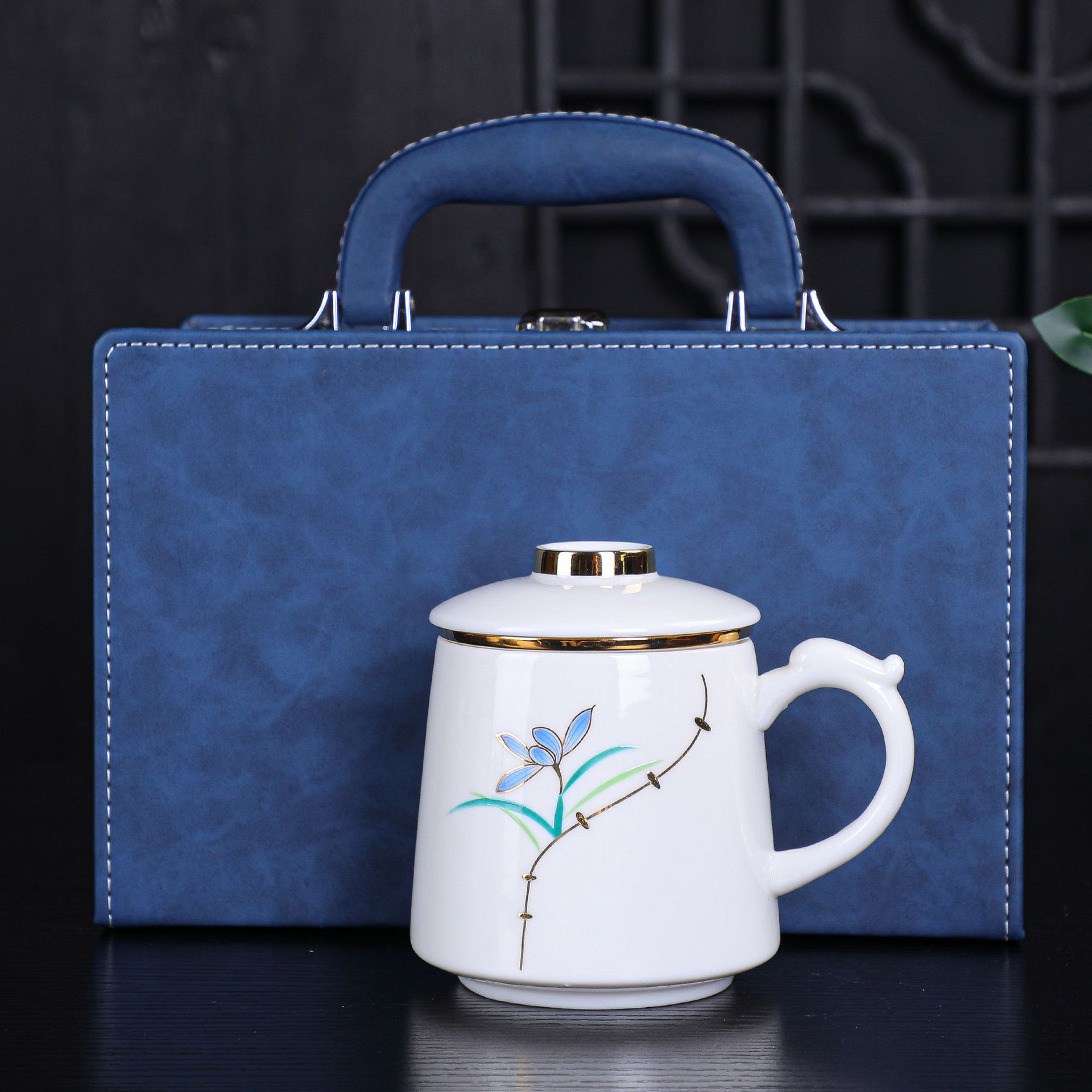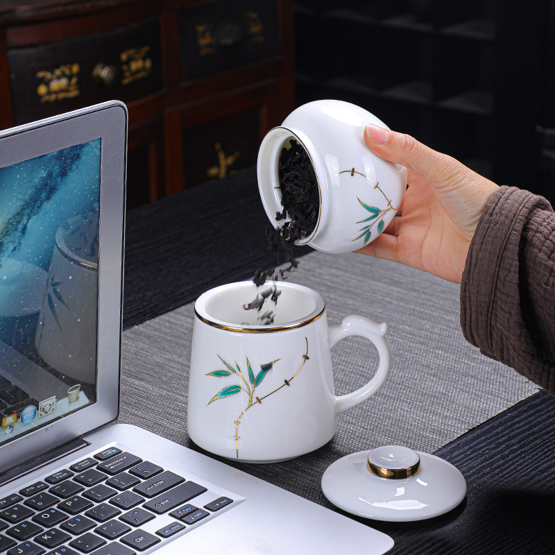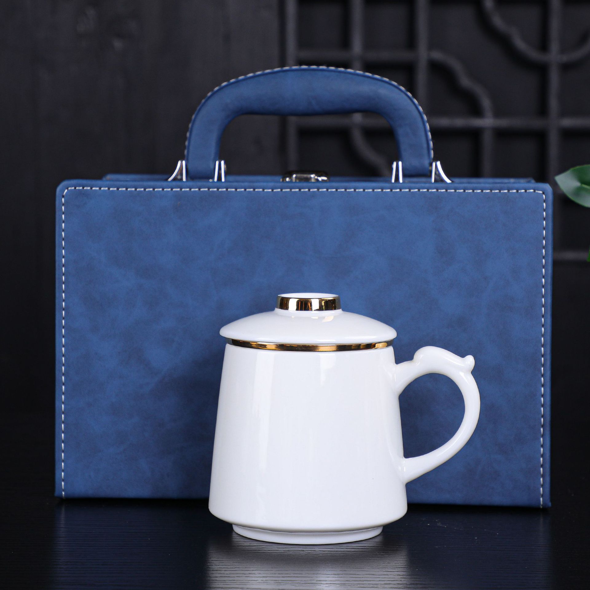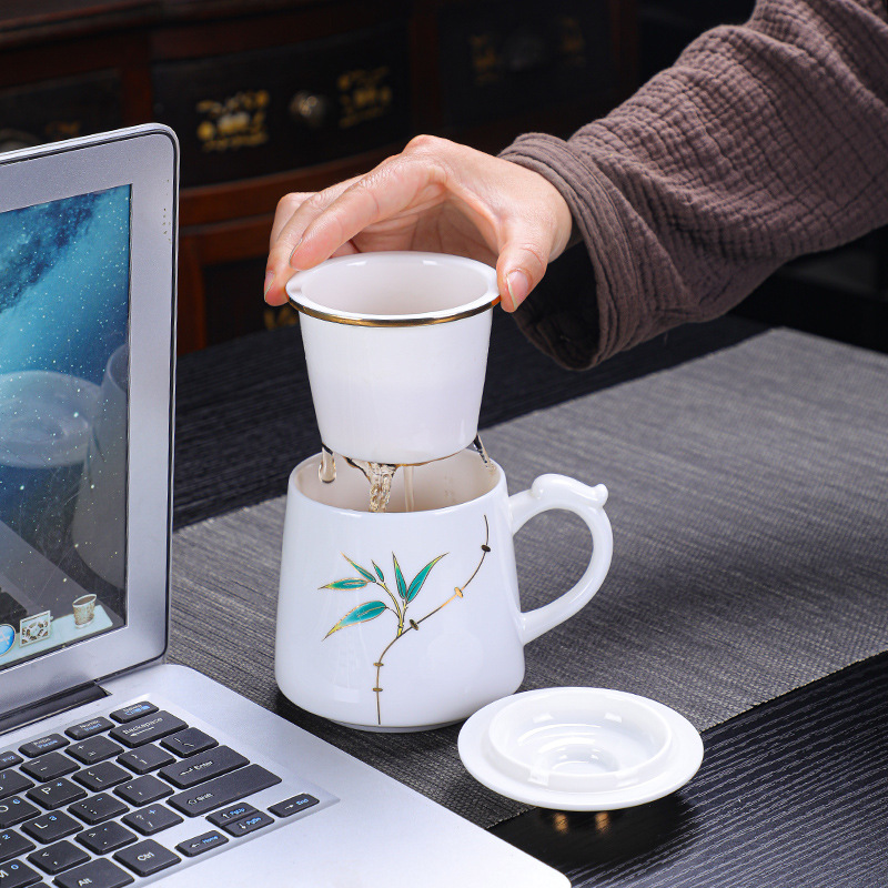 陶瓷办公杯羊脂玉茶水分离马克杯功夫泡茶杯礼品杯公司会议杯批发