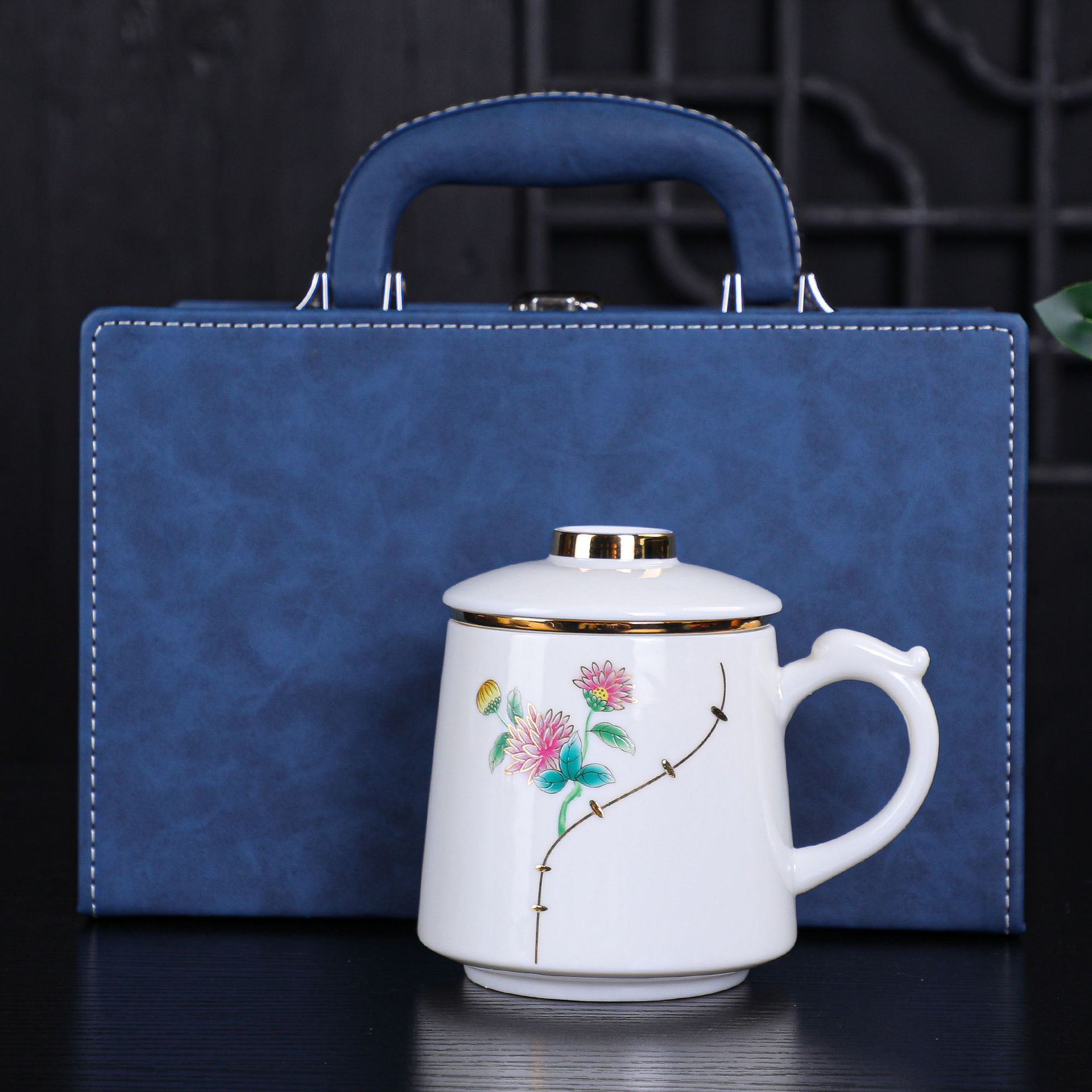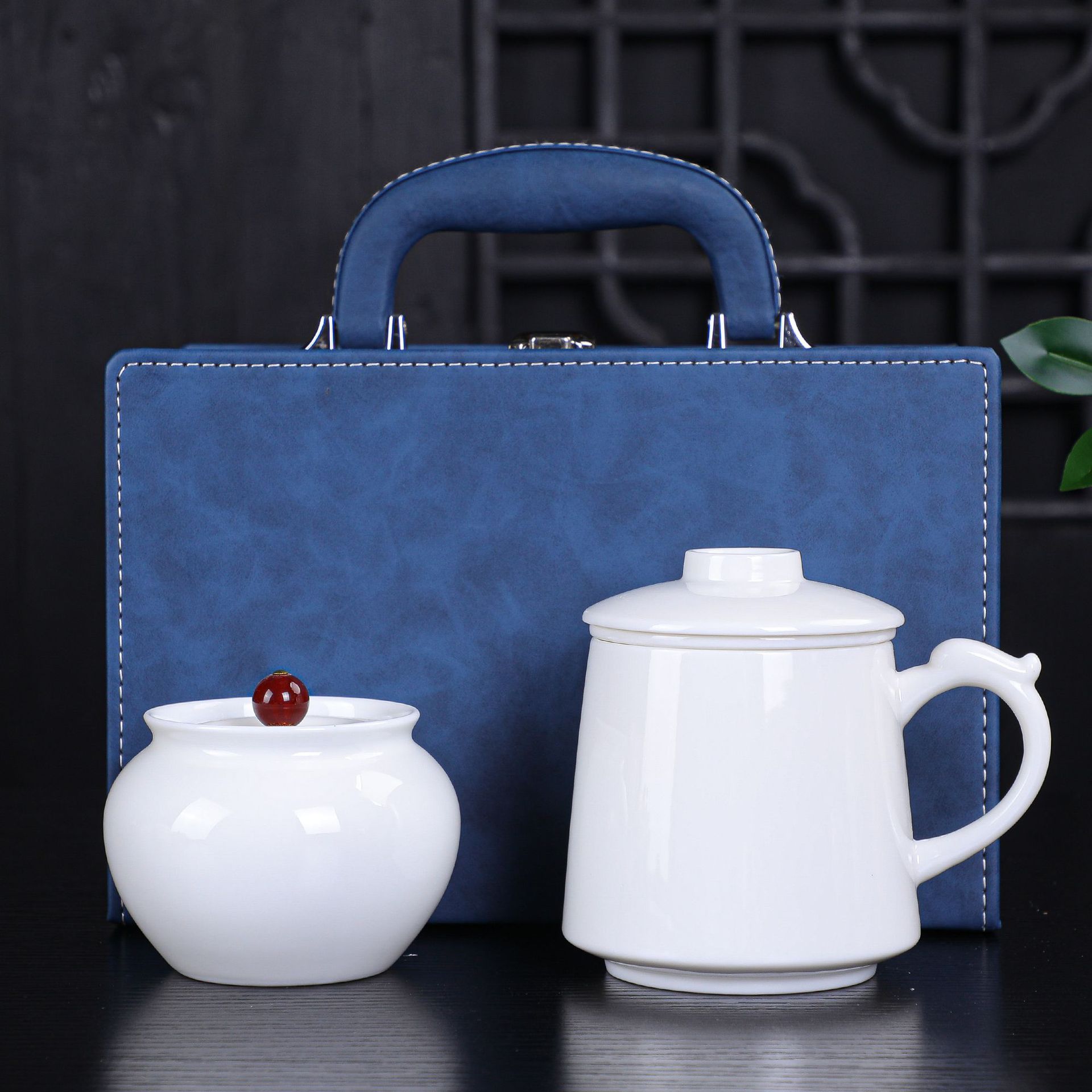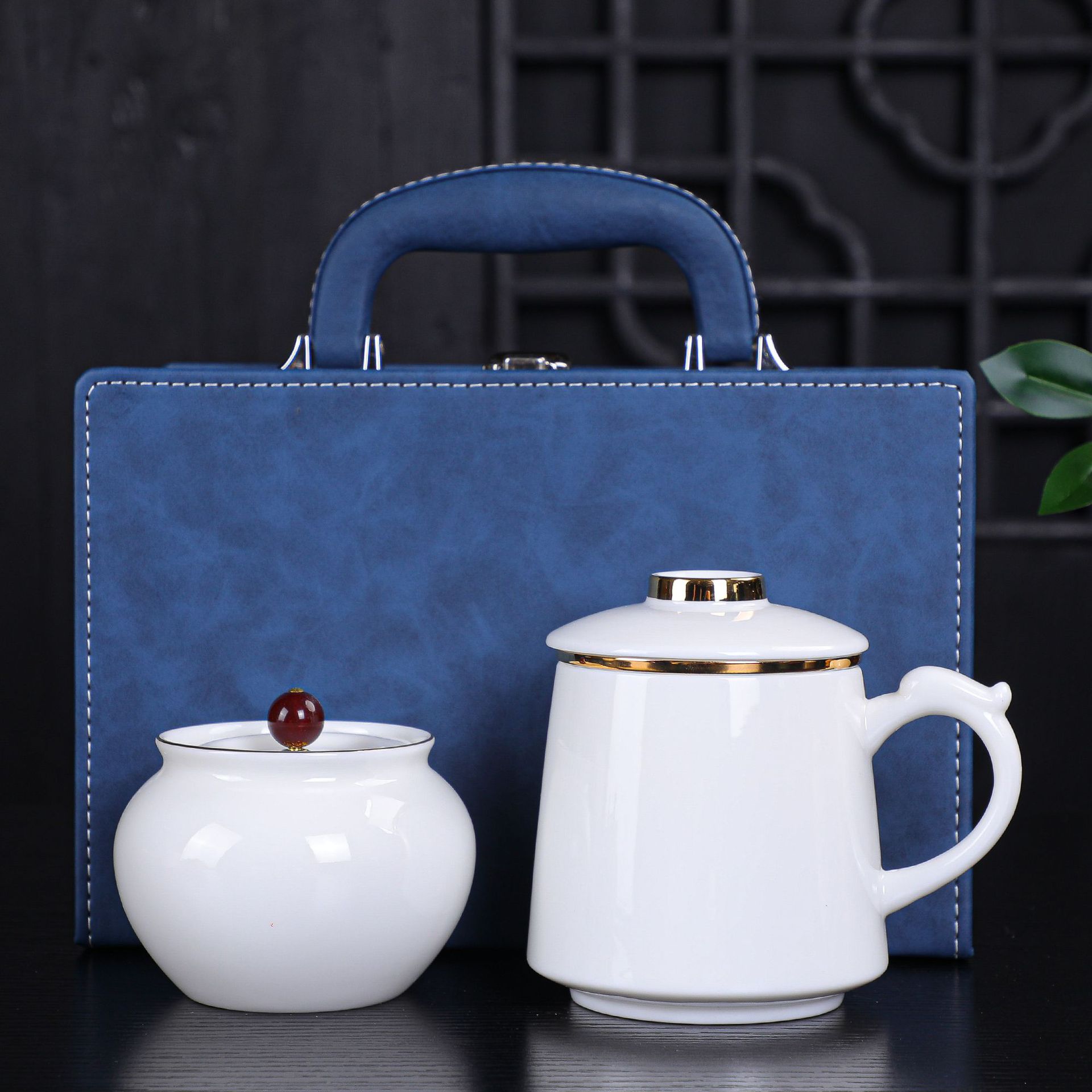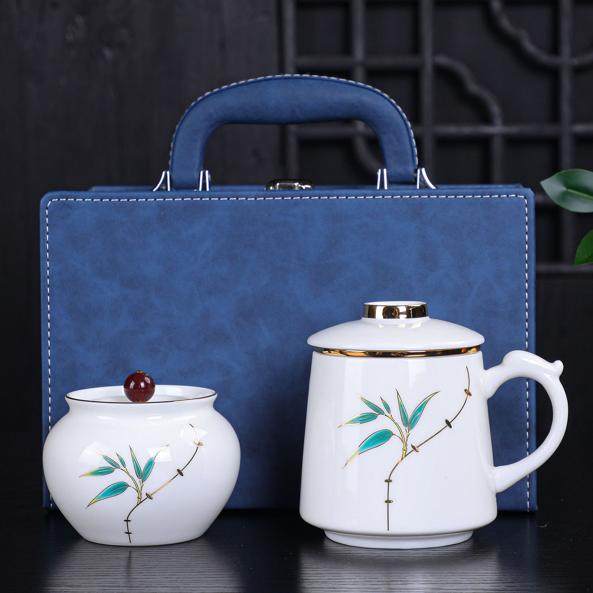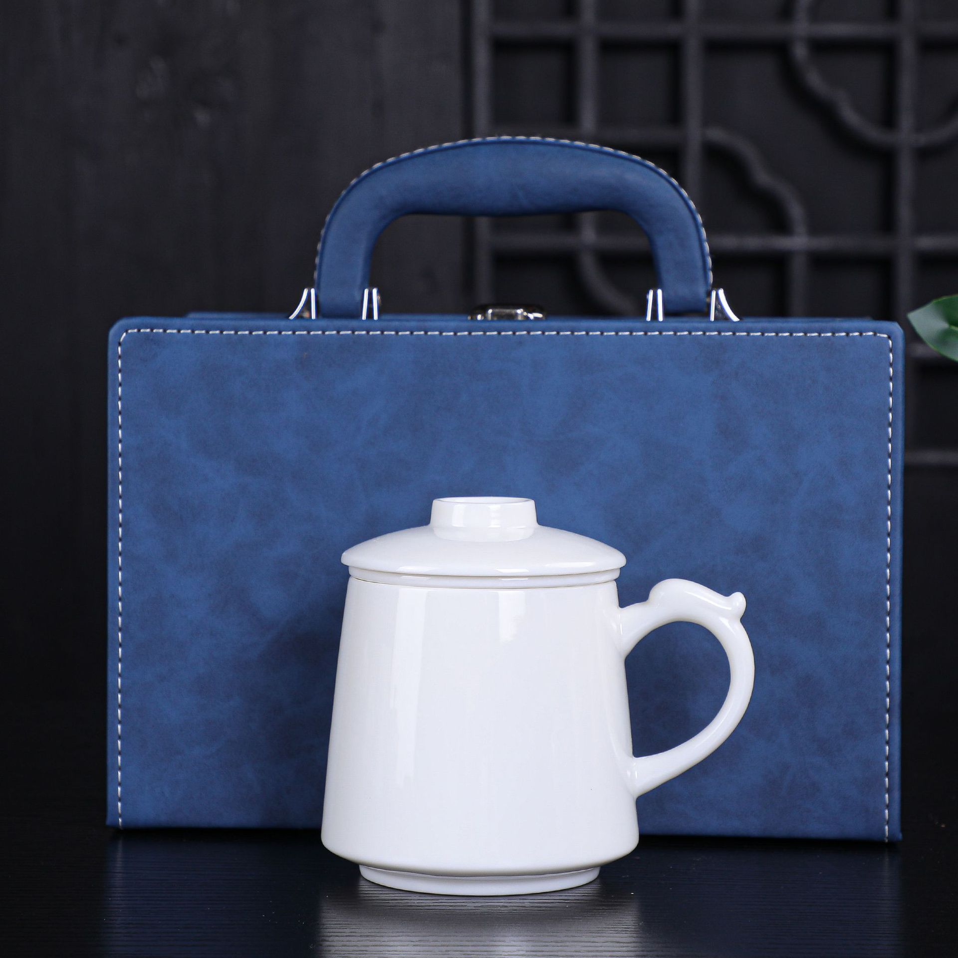 陶瓷办公杯羊脂玉茶水分离马克杯功夫泡茶杯礼品杯公司会议杯批发