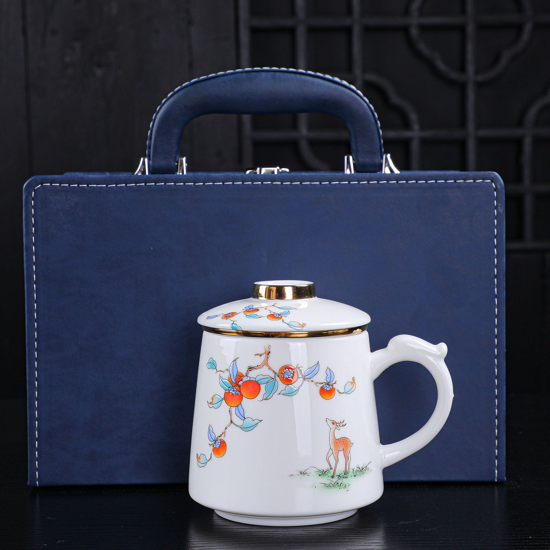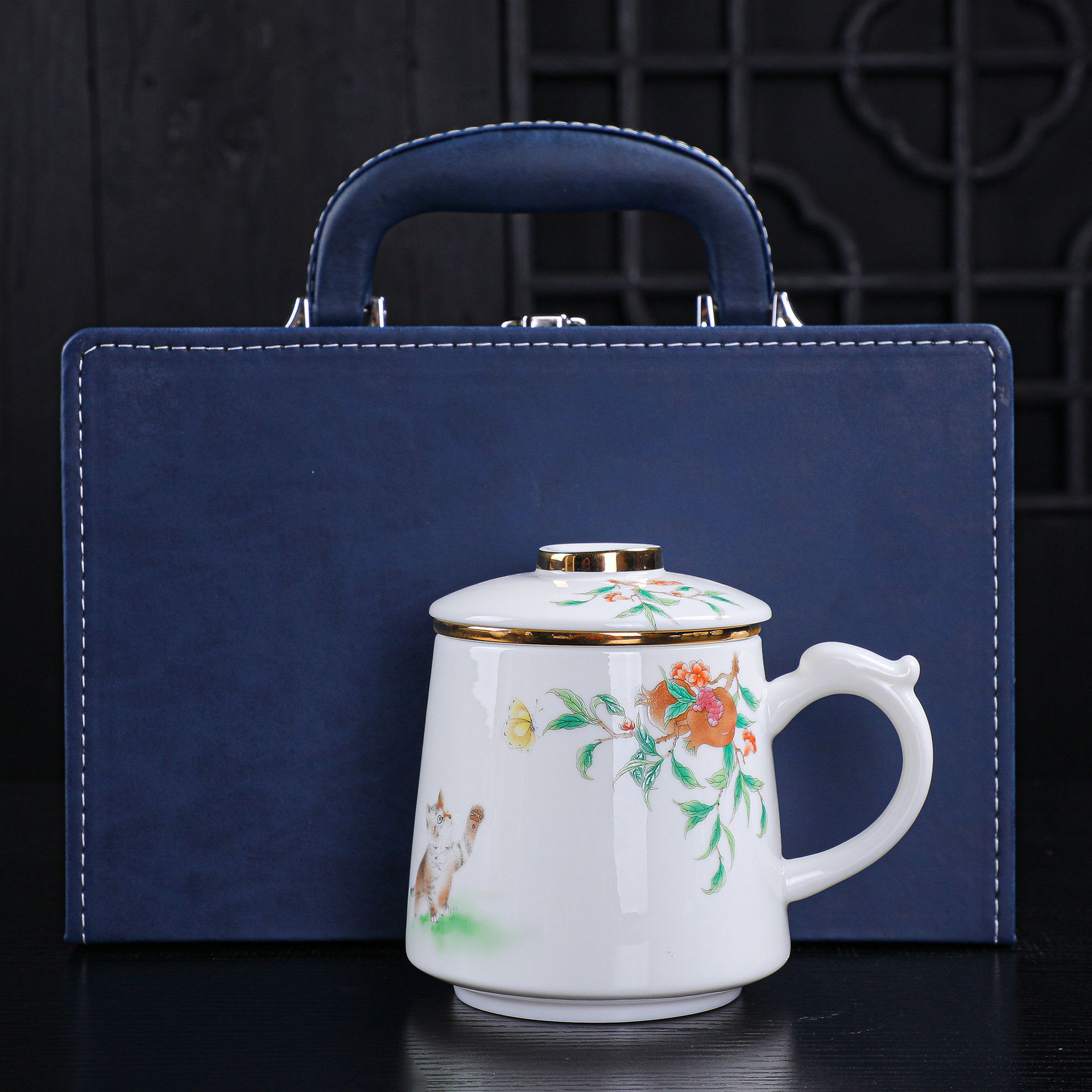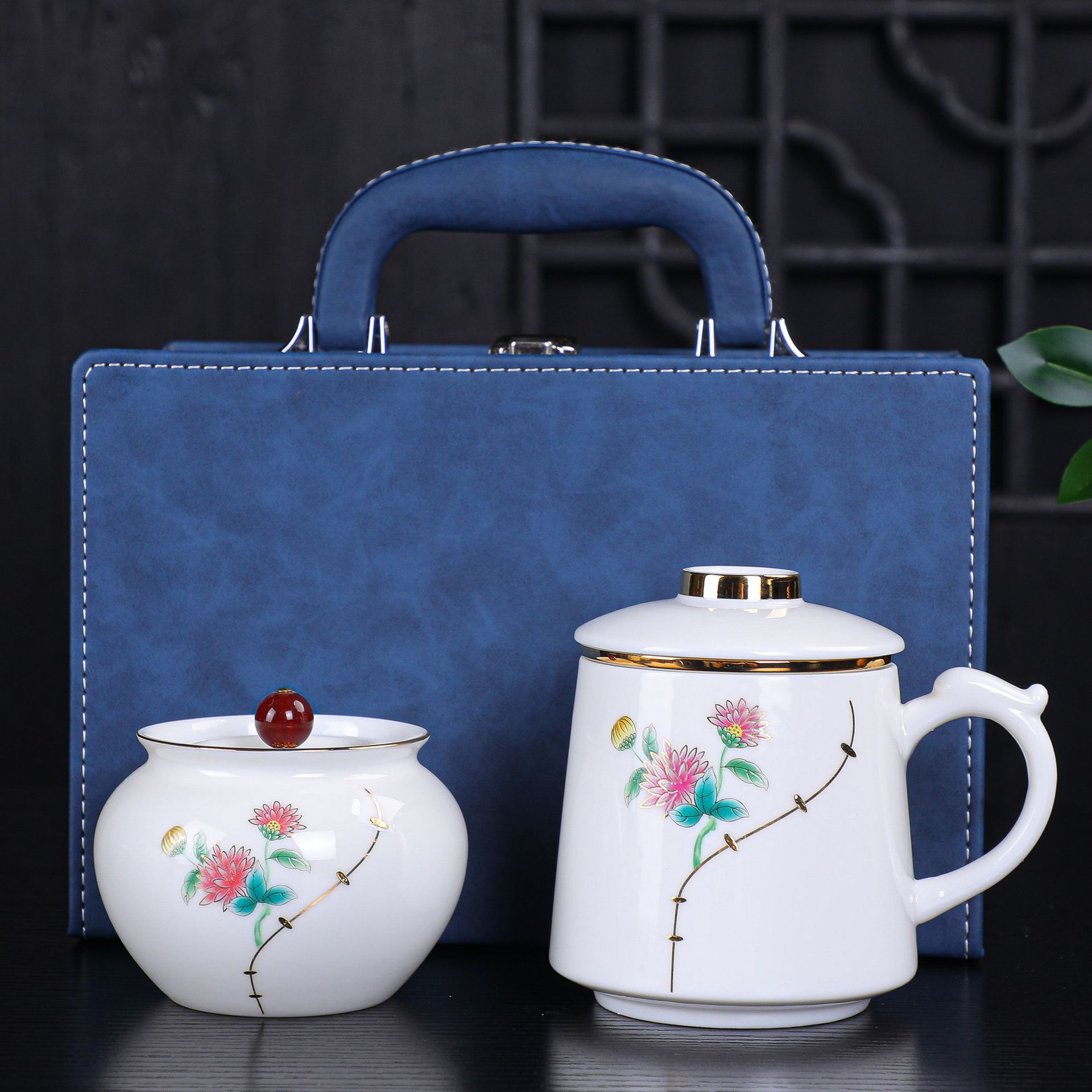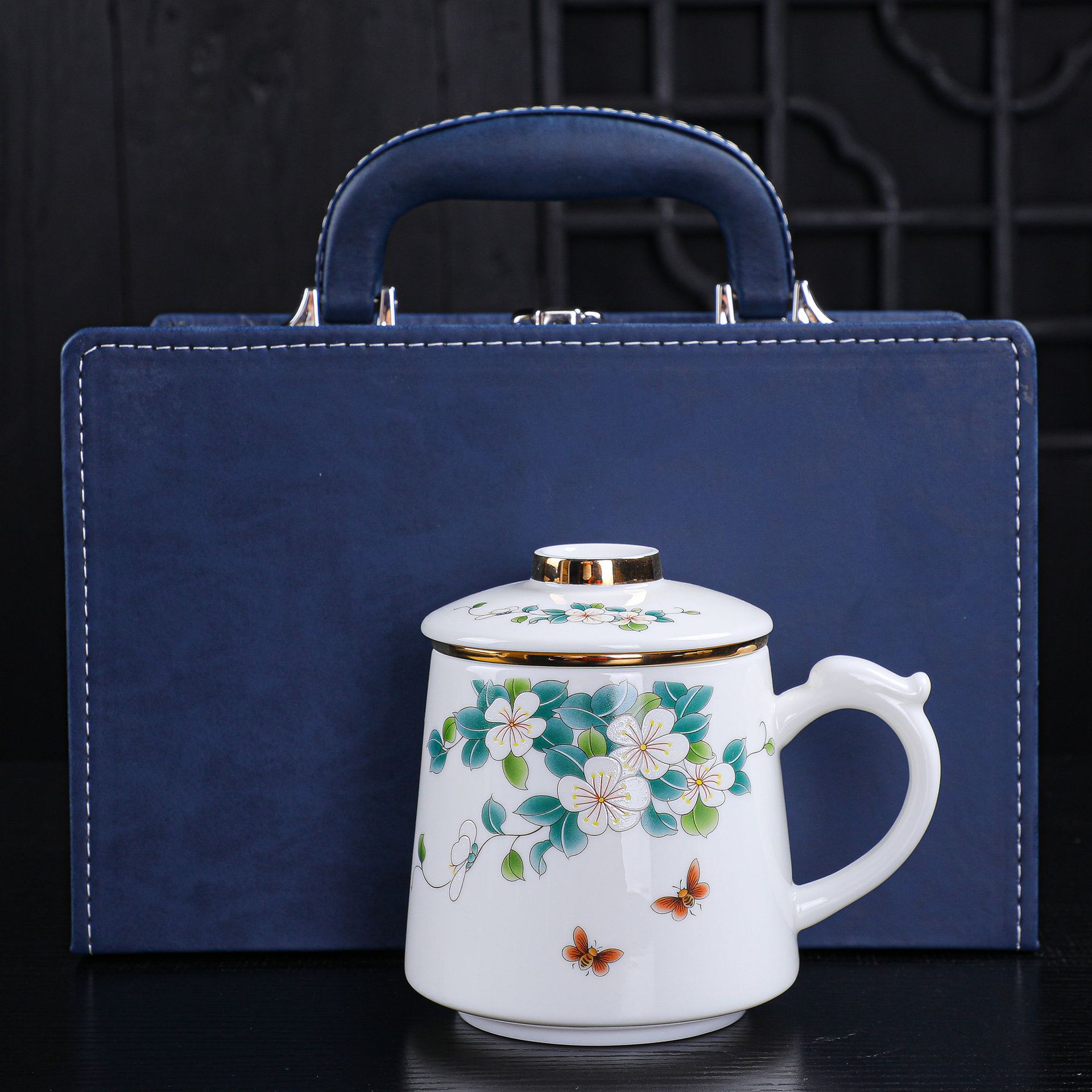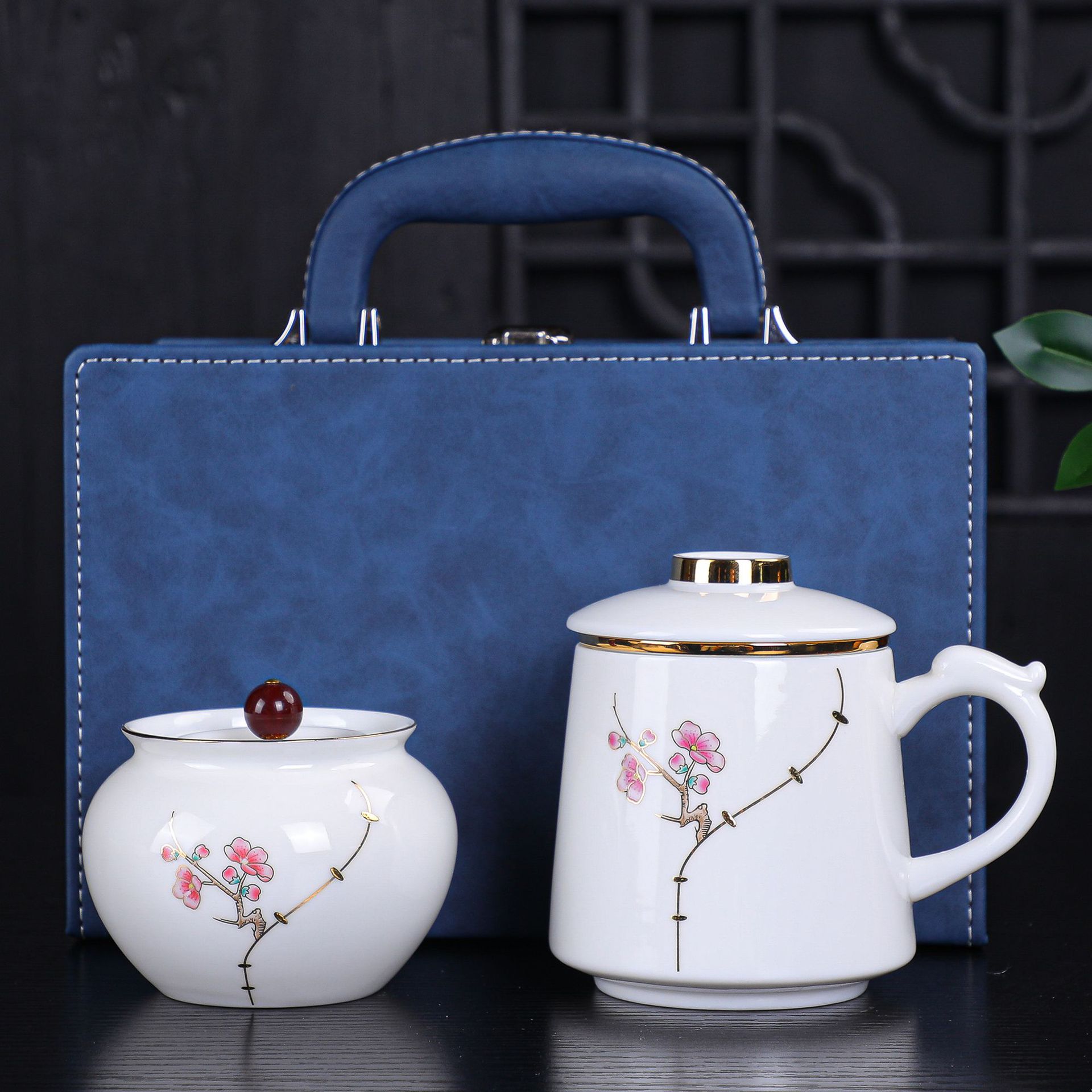 陶瓷办公杯羊脂玉茶水分离马克杯功夫泡茶杯礼品杯公司会议杯批发