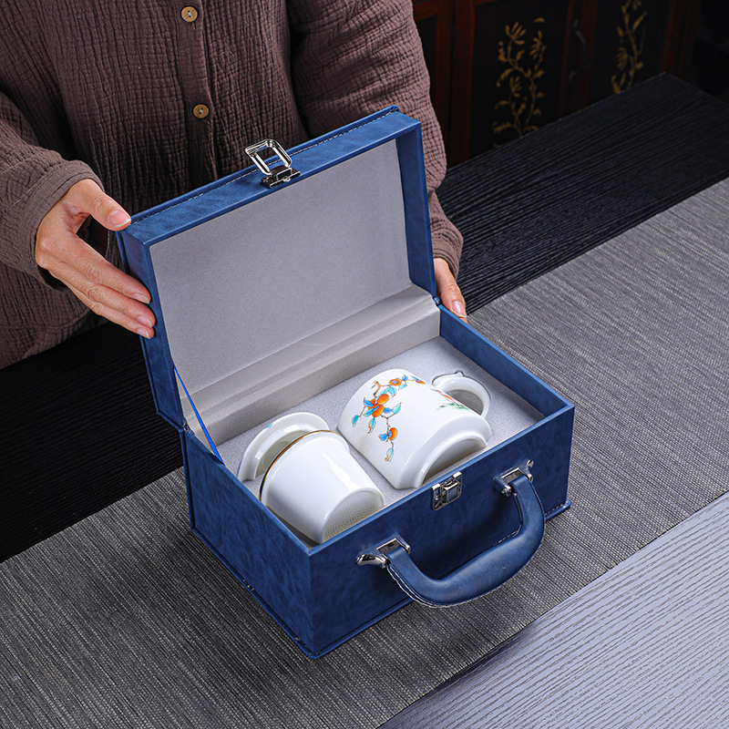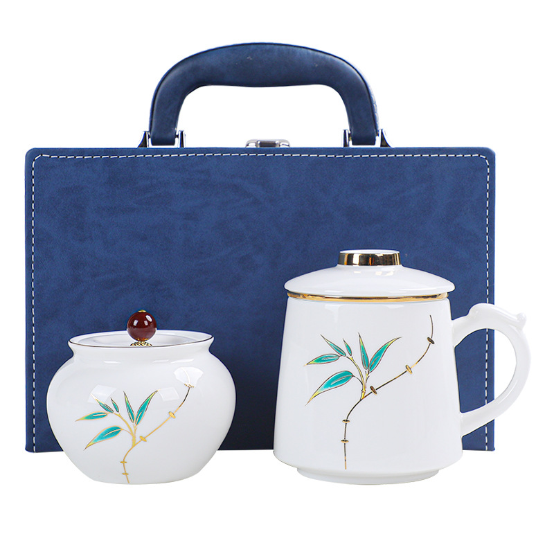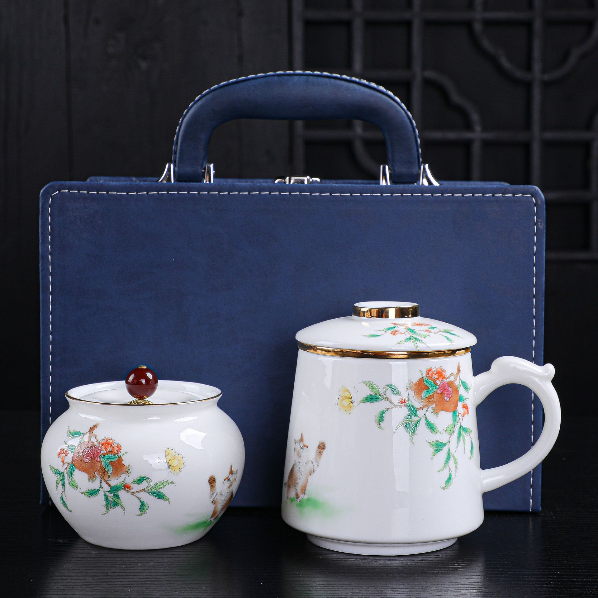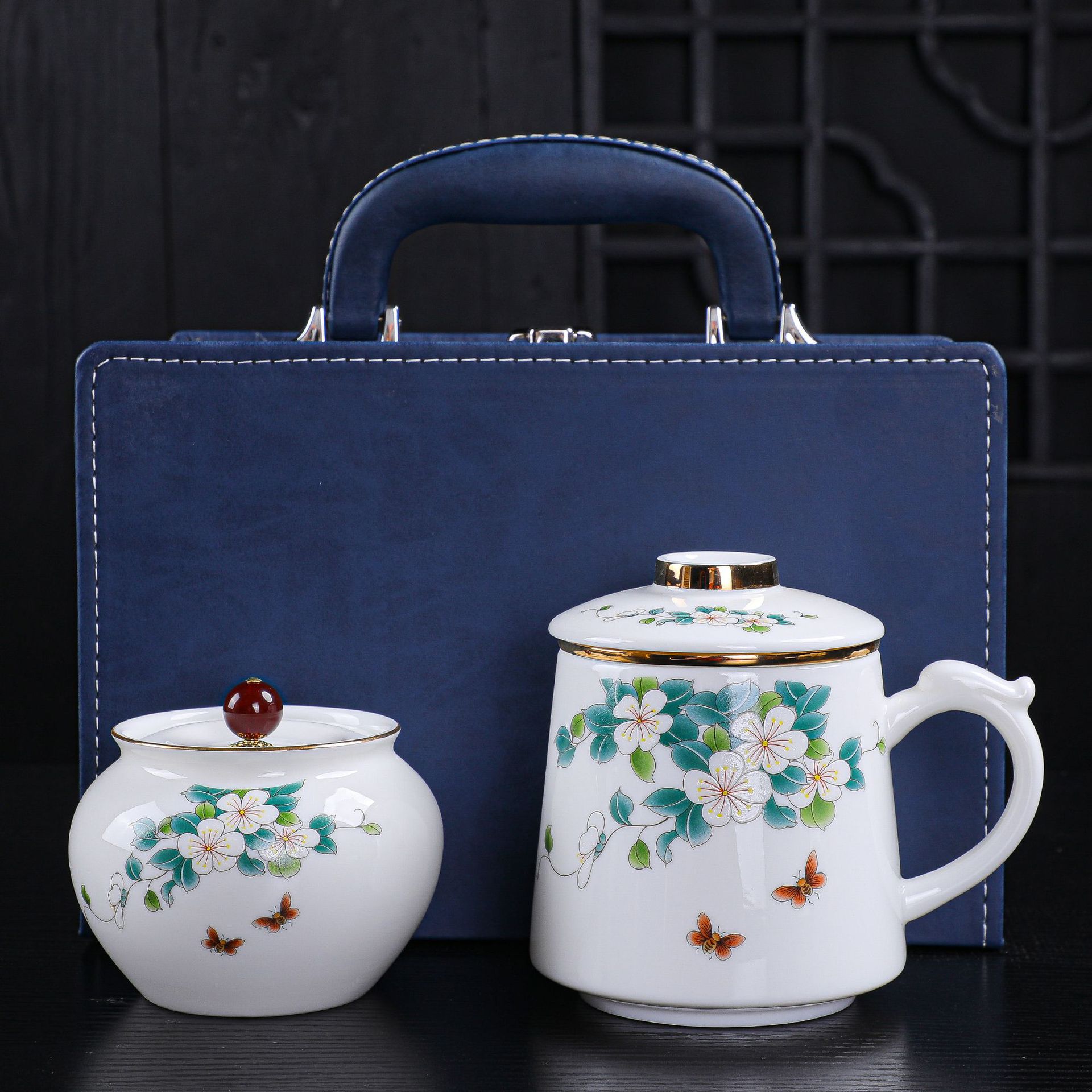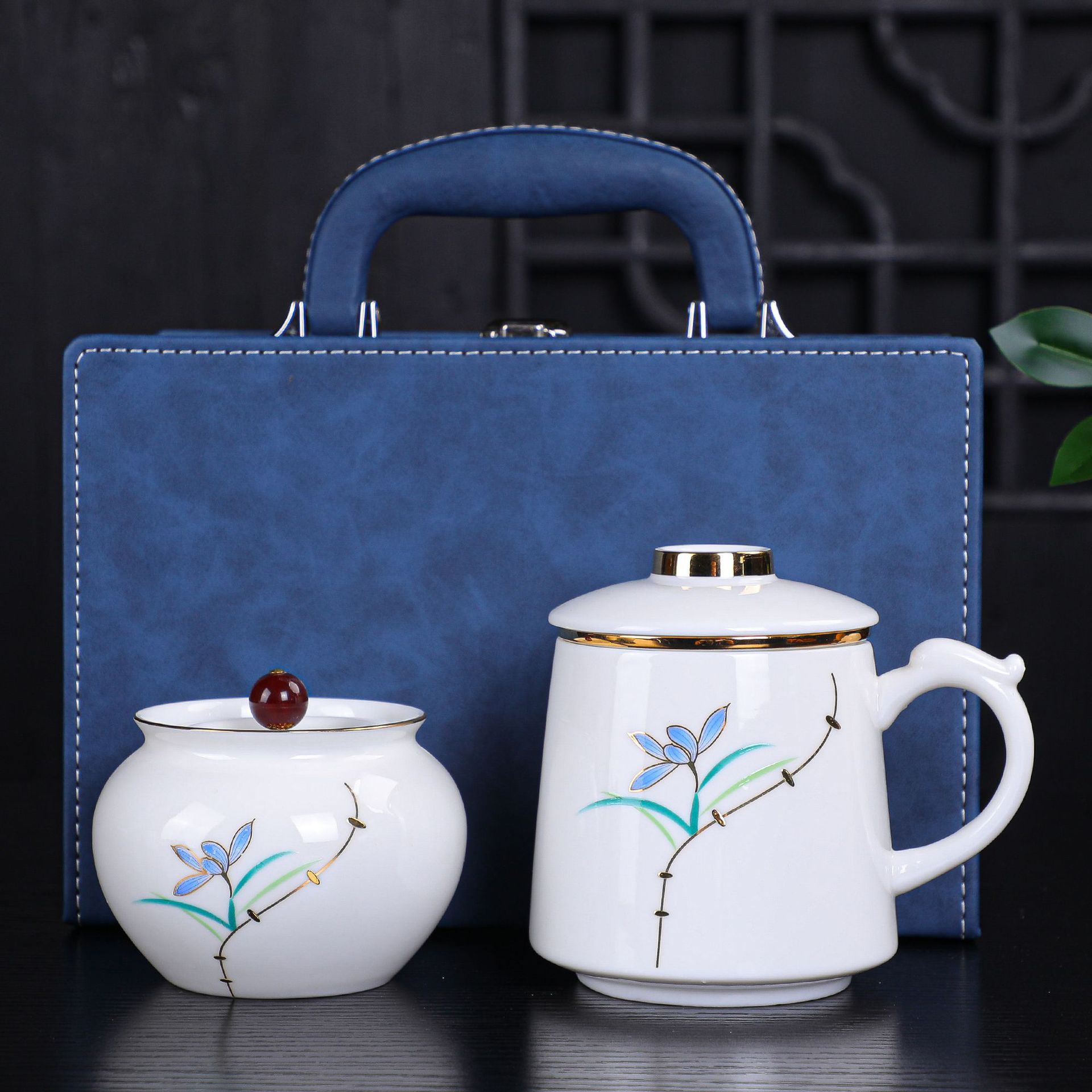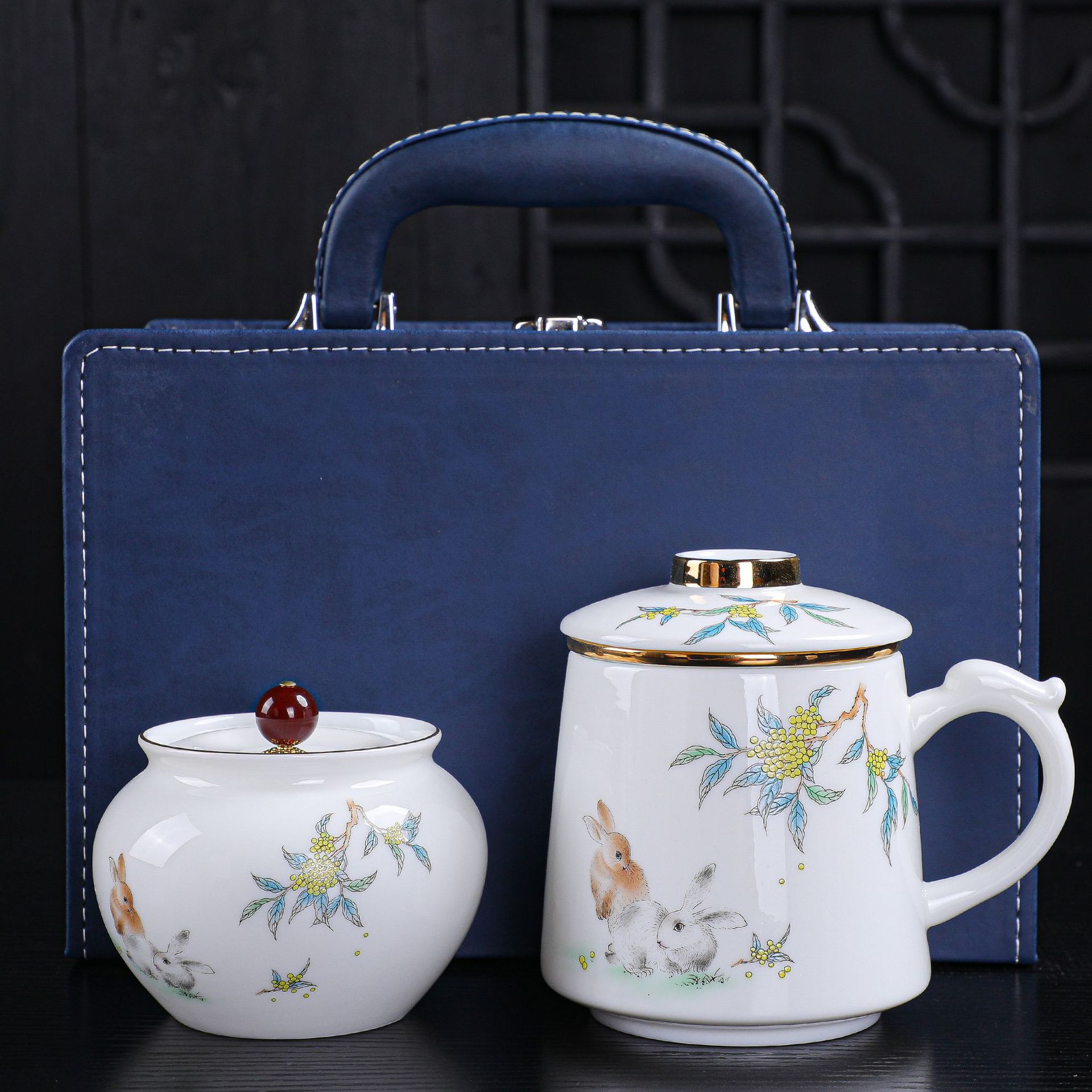陶瓷办公杯羊脂玉茶水分离马克杯功夫泡茶杯礼品杯公司会议杯批发