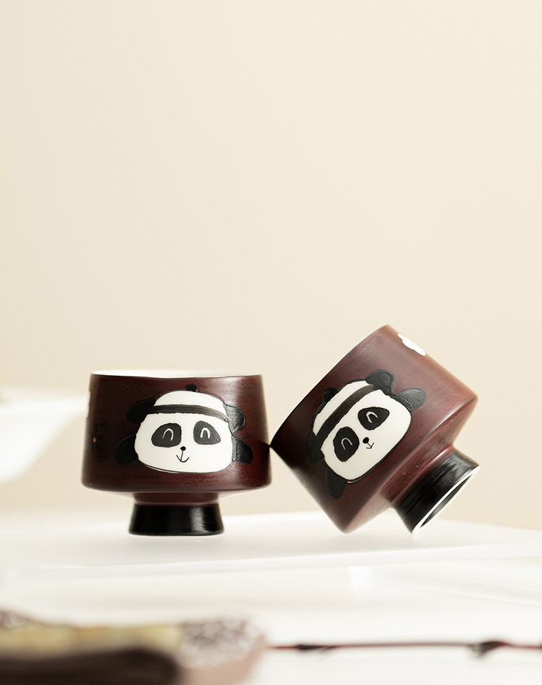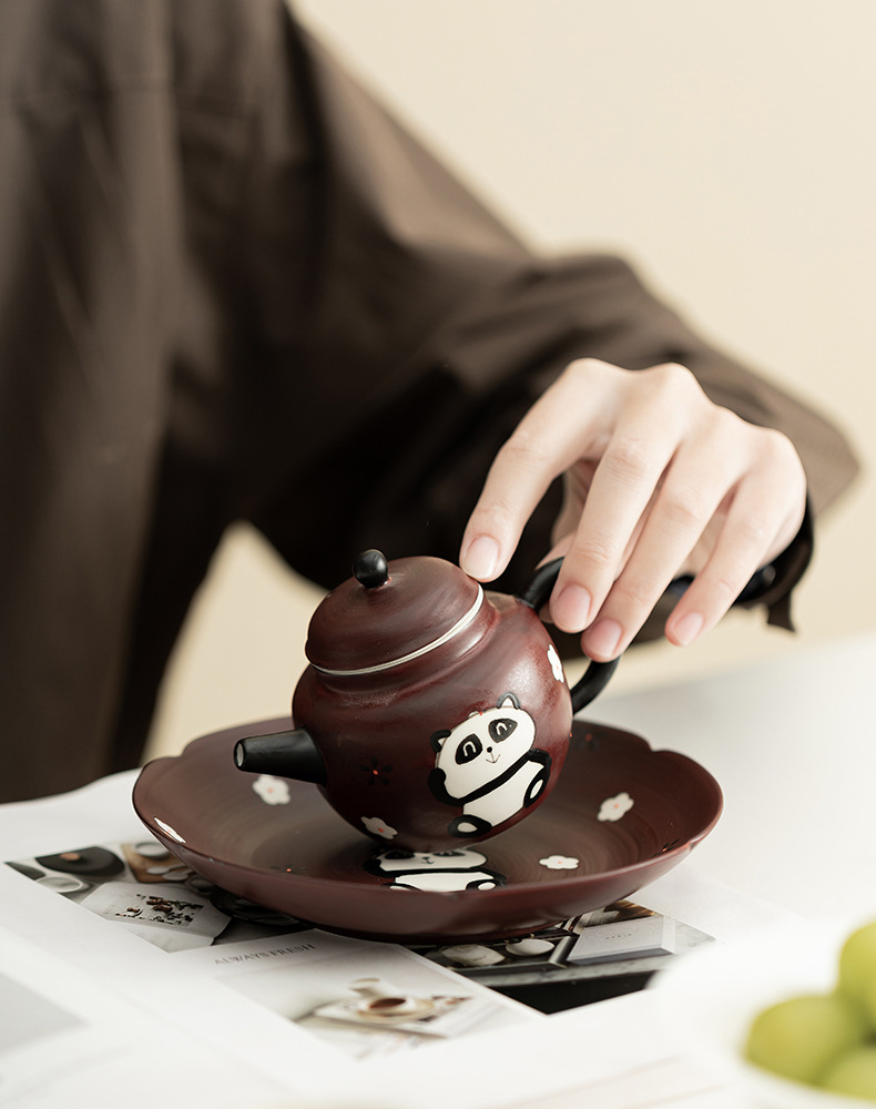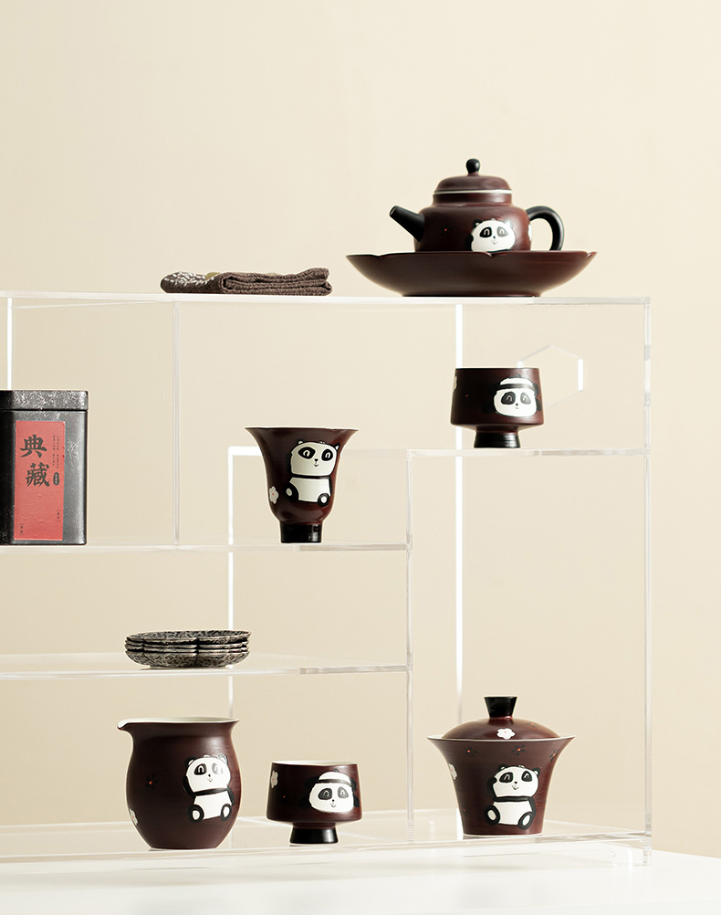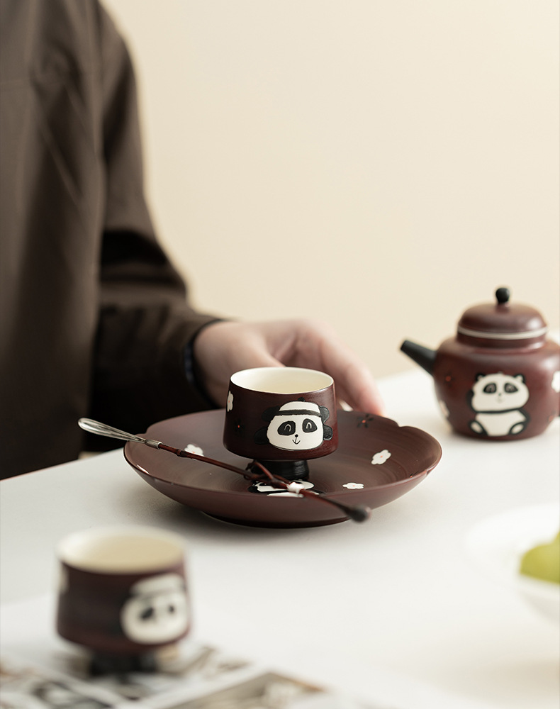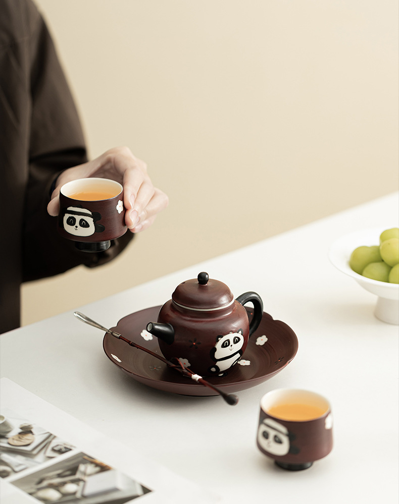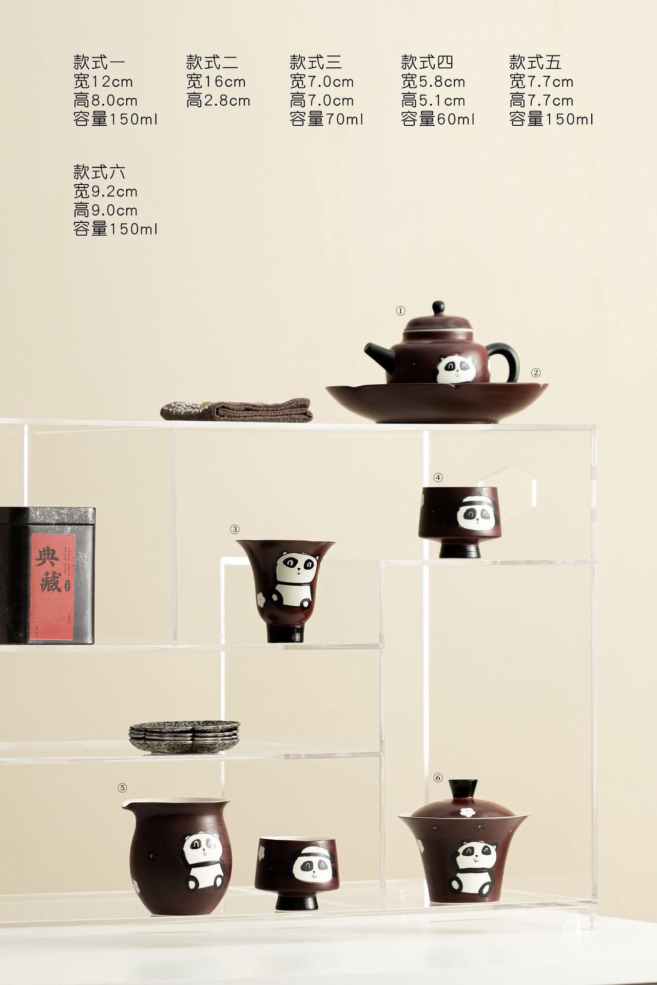 国潮山楂红手绘熊猫陶瓷功夫茶具套装 茶壶盖碗茶杯全套 泡茶茶具