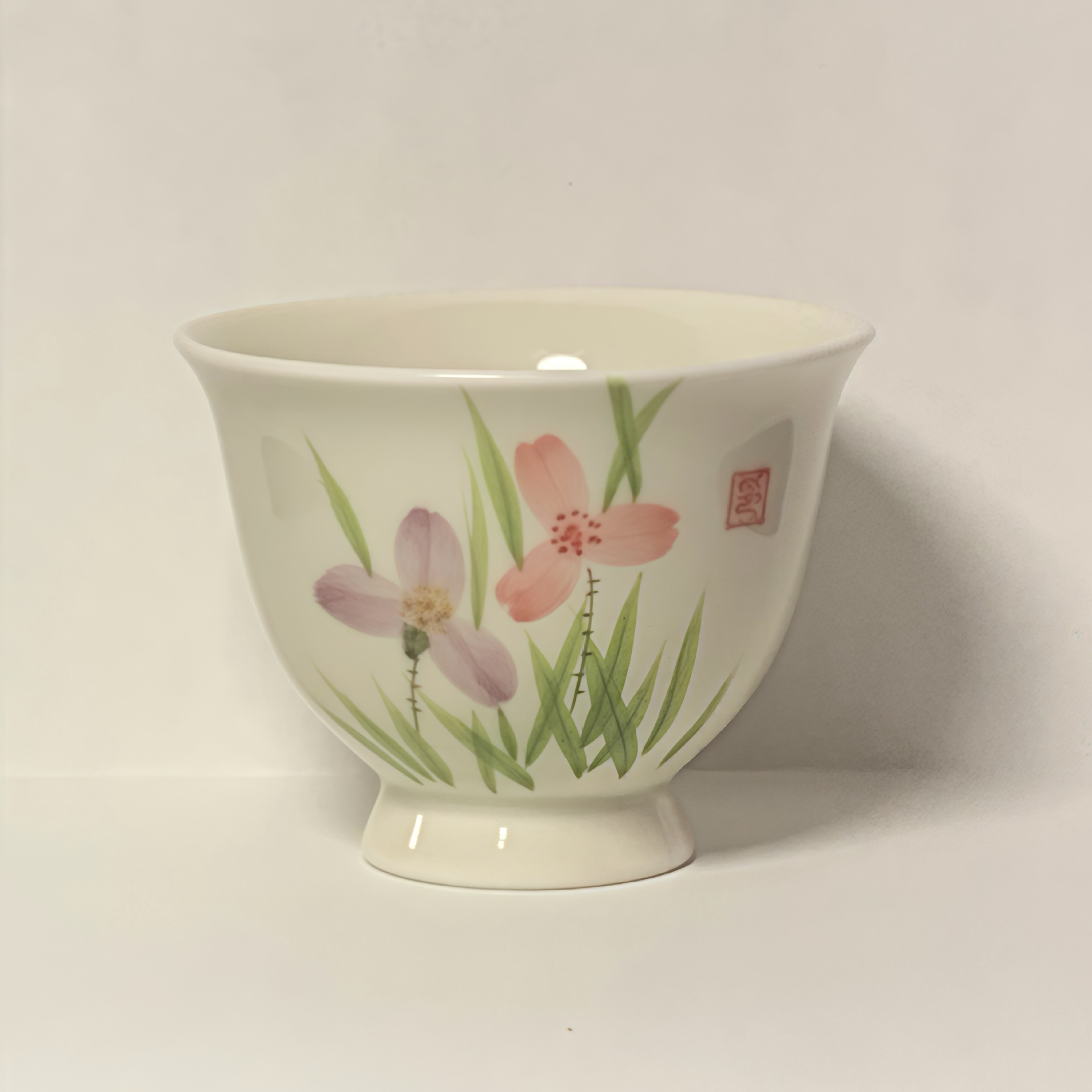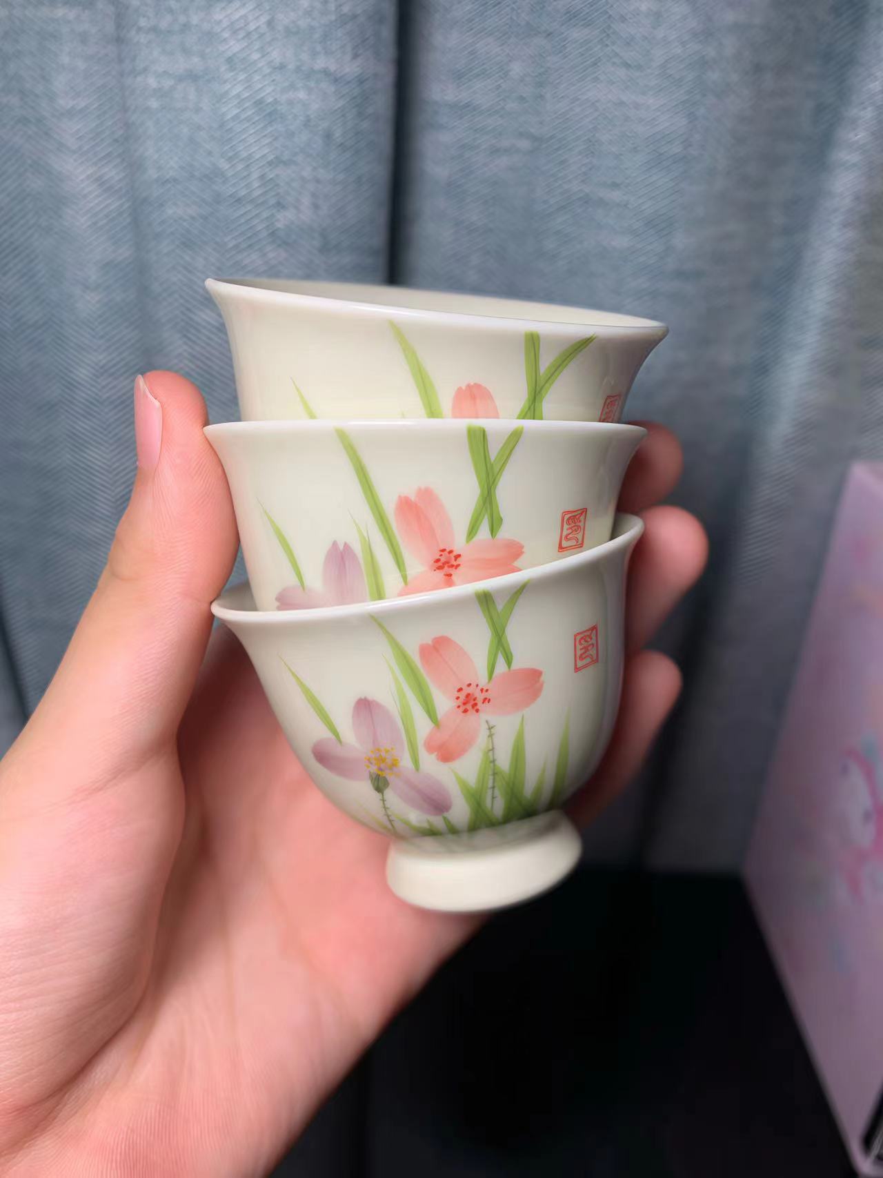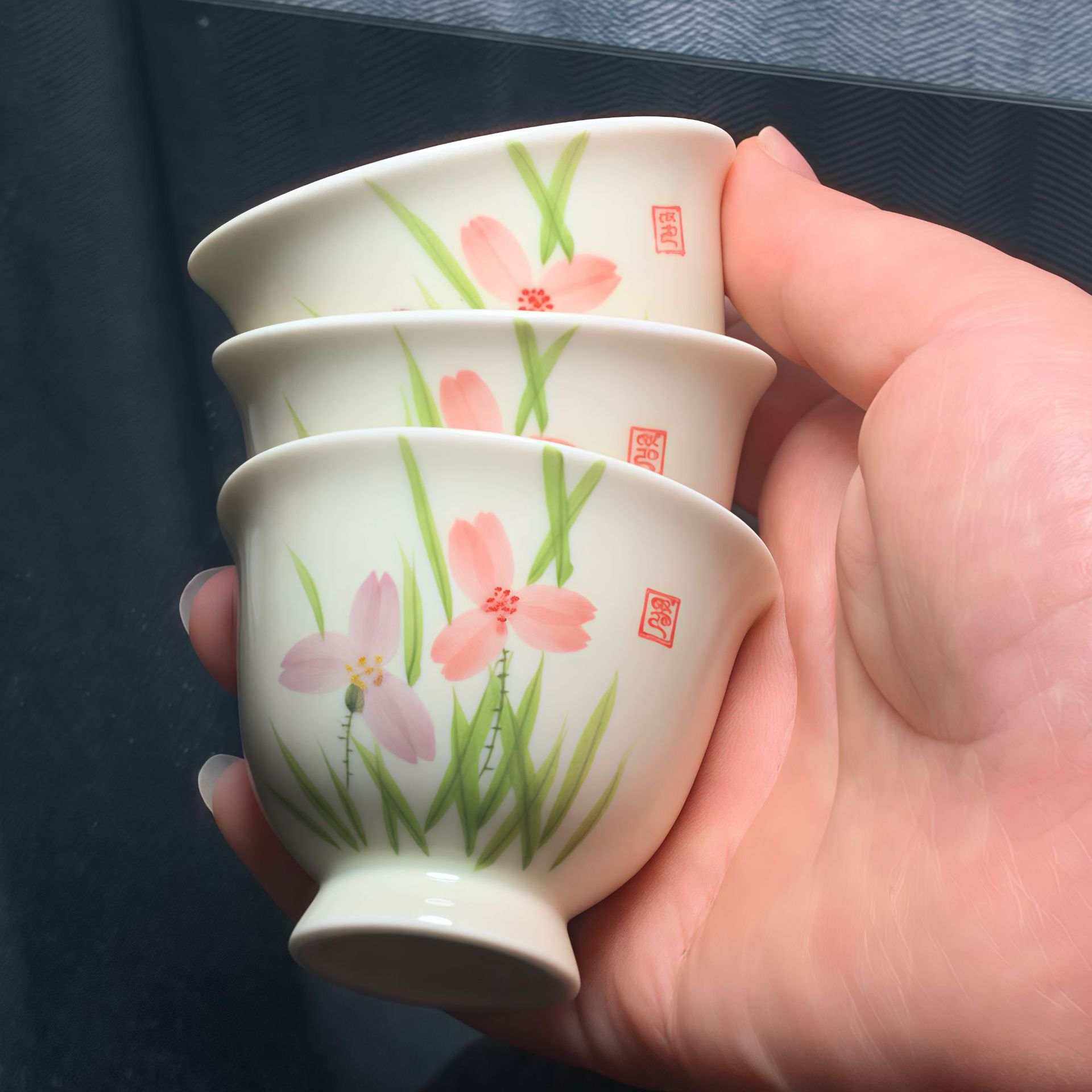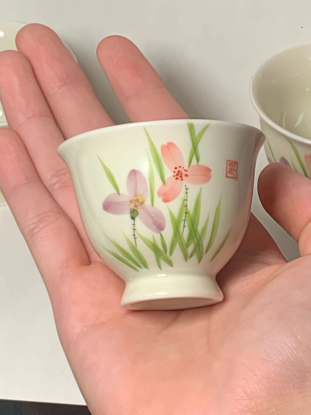 米浆白手绘兰花品茗杯陶瓷功夫茶杯白瓷主人杯釉下彩喝茶杯子单个