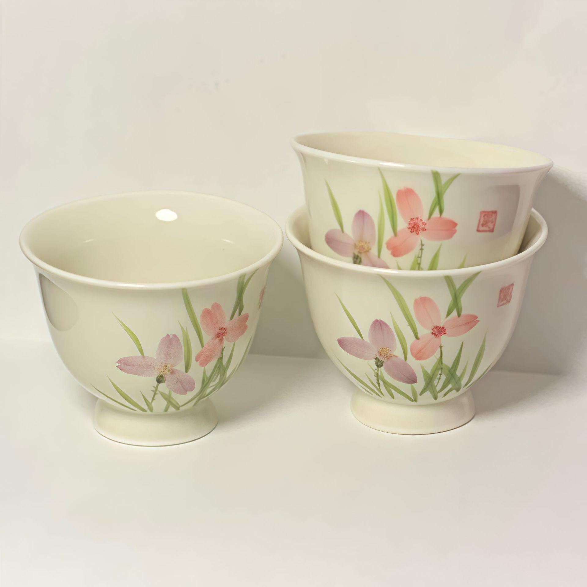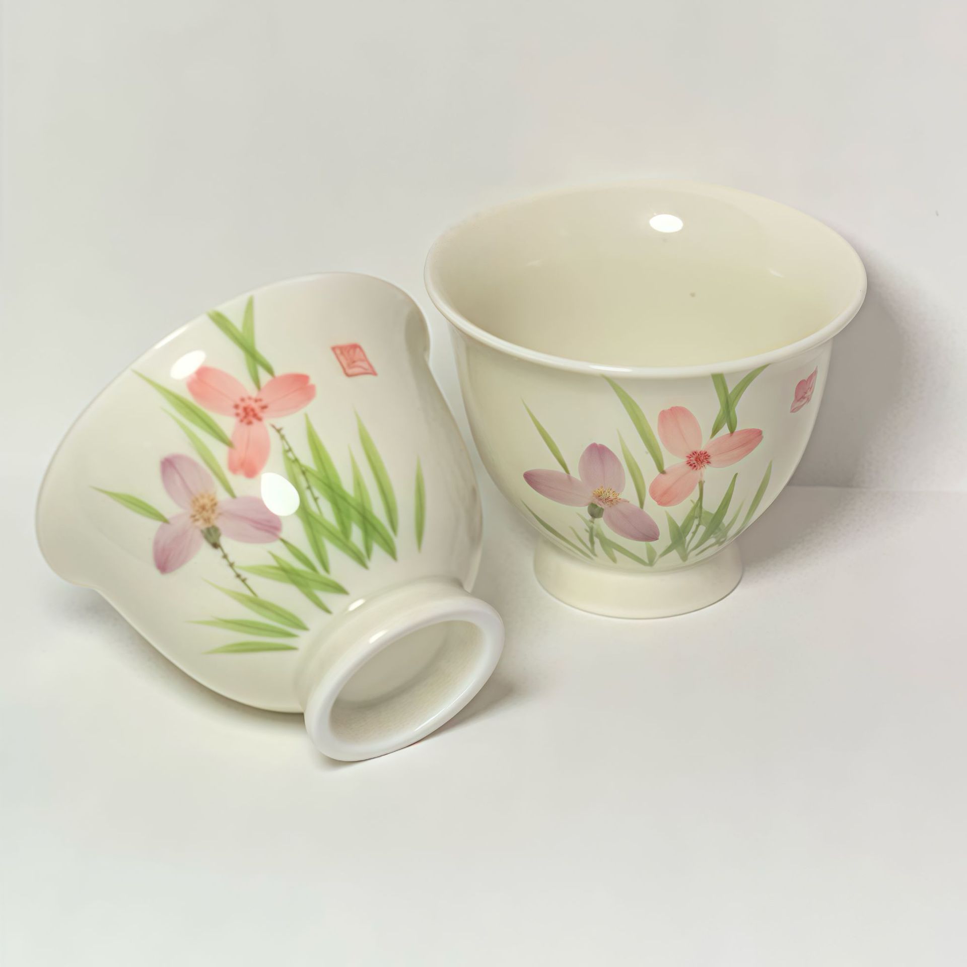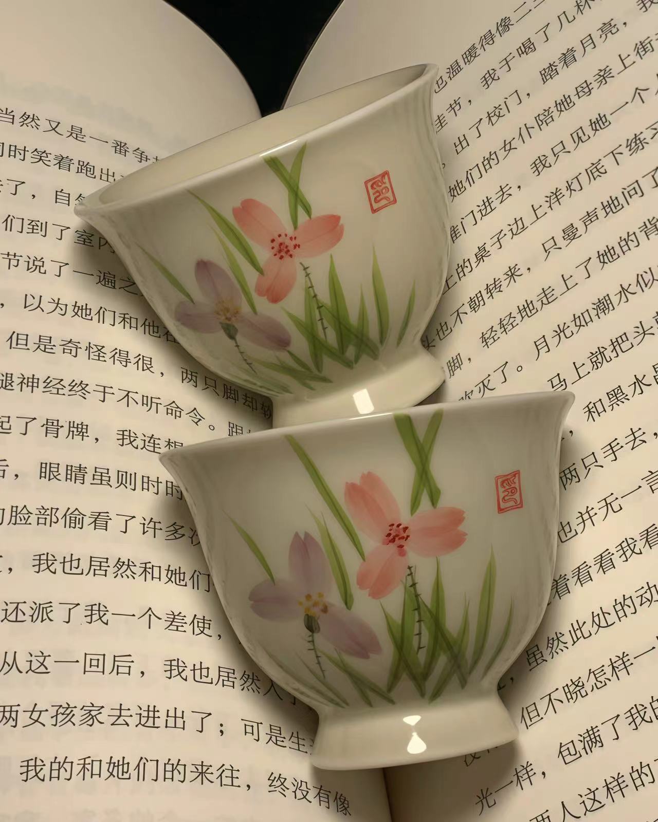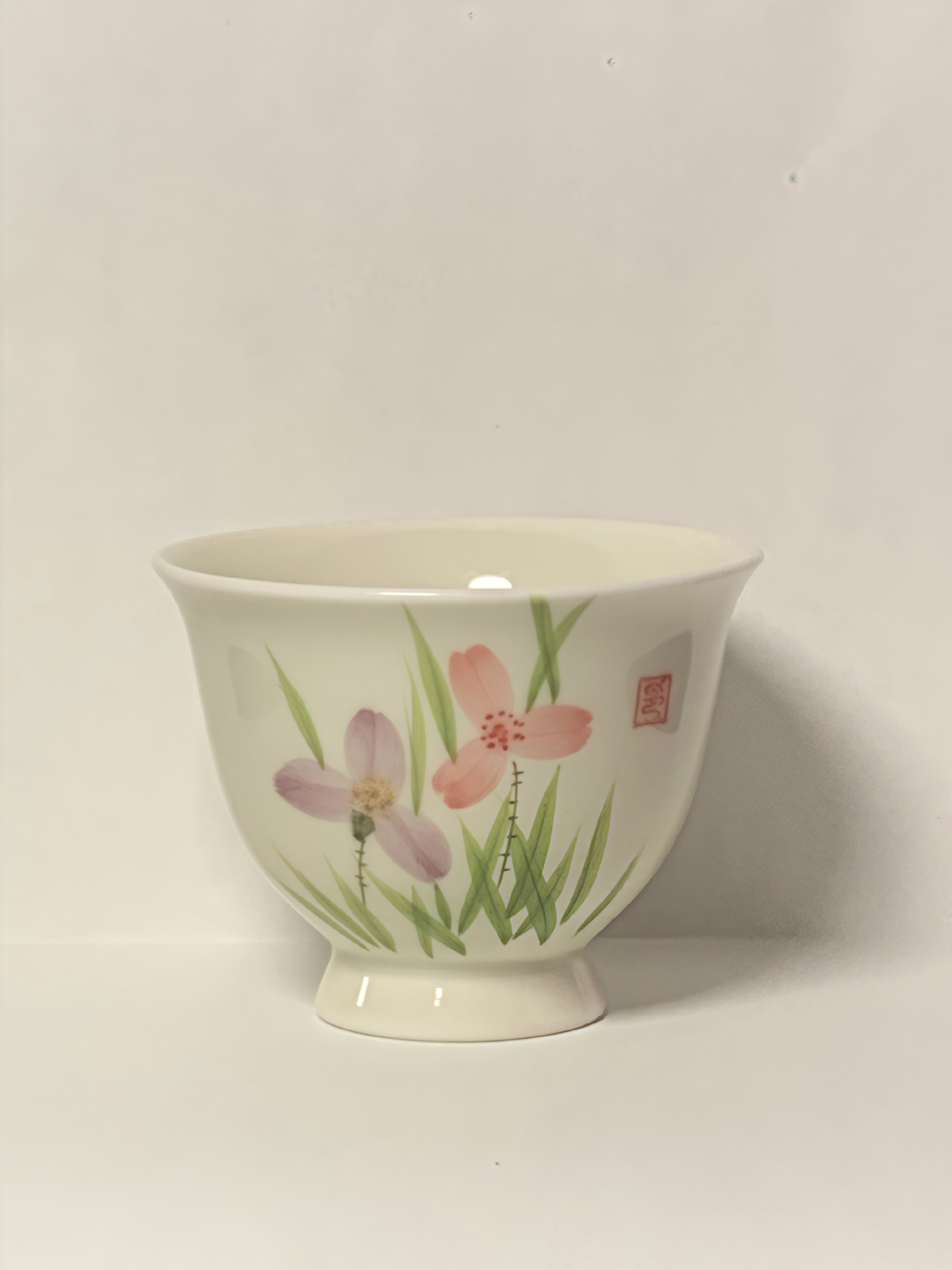 米浆白手绘兰花品茗杯陶瓷功夫茶杯白瓷主人杯釉下彩喝茶杯子单个