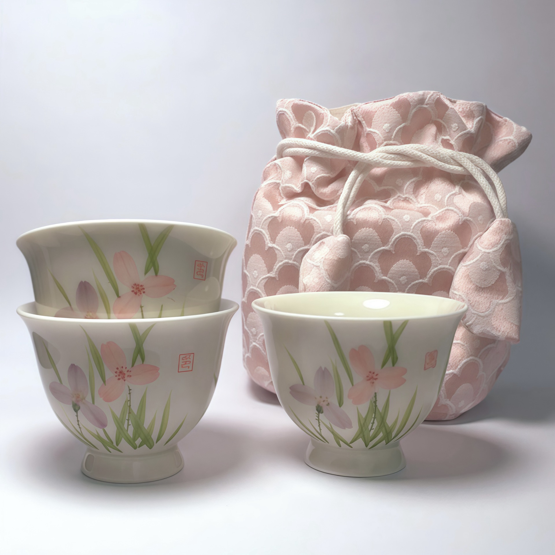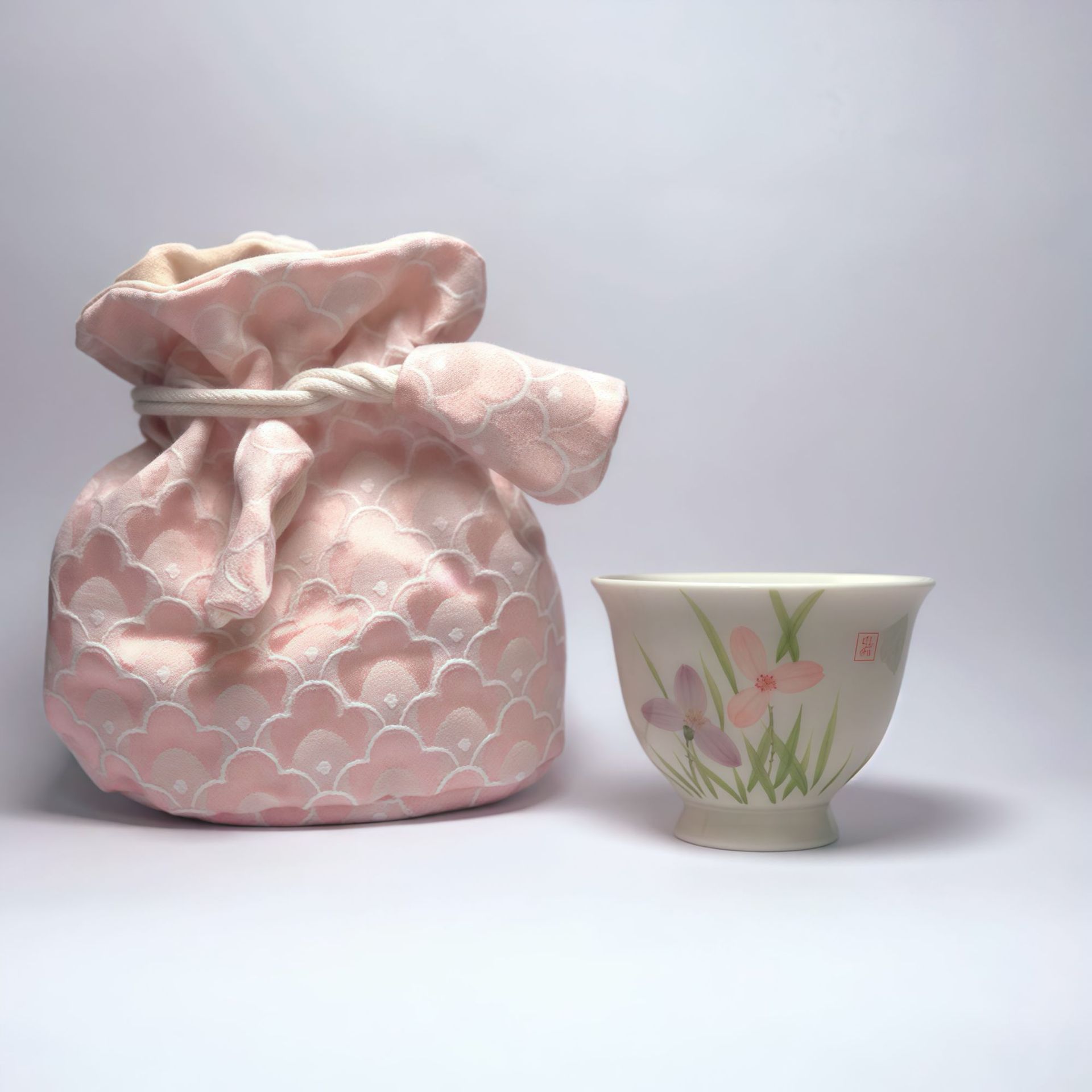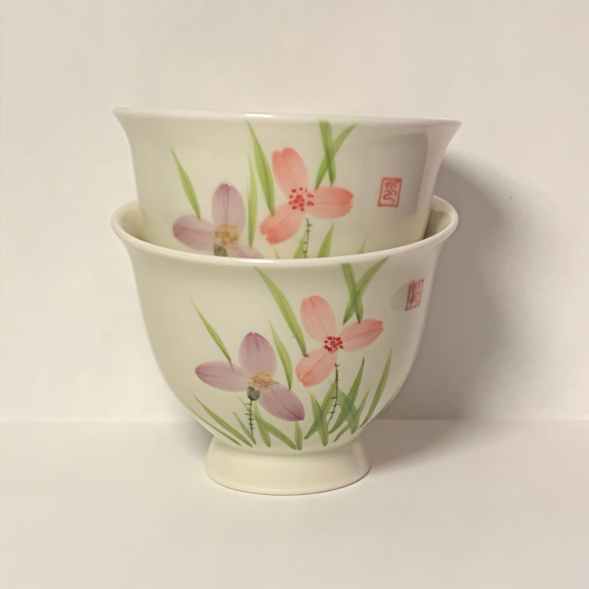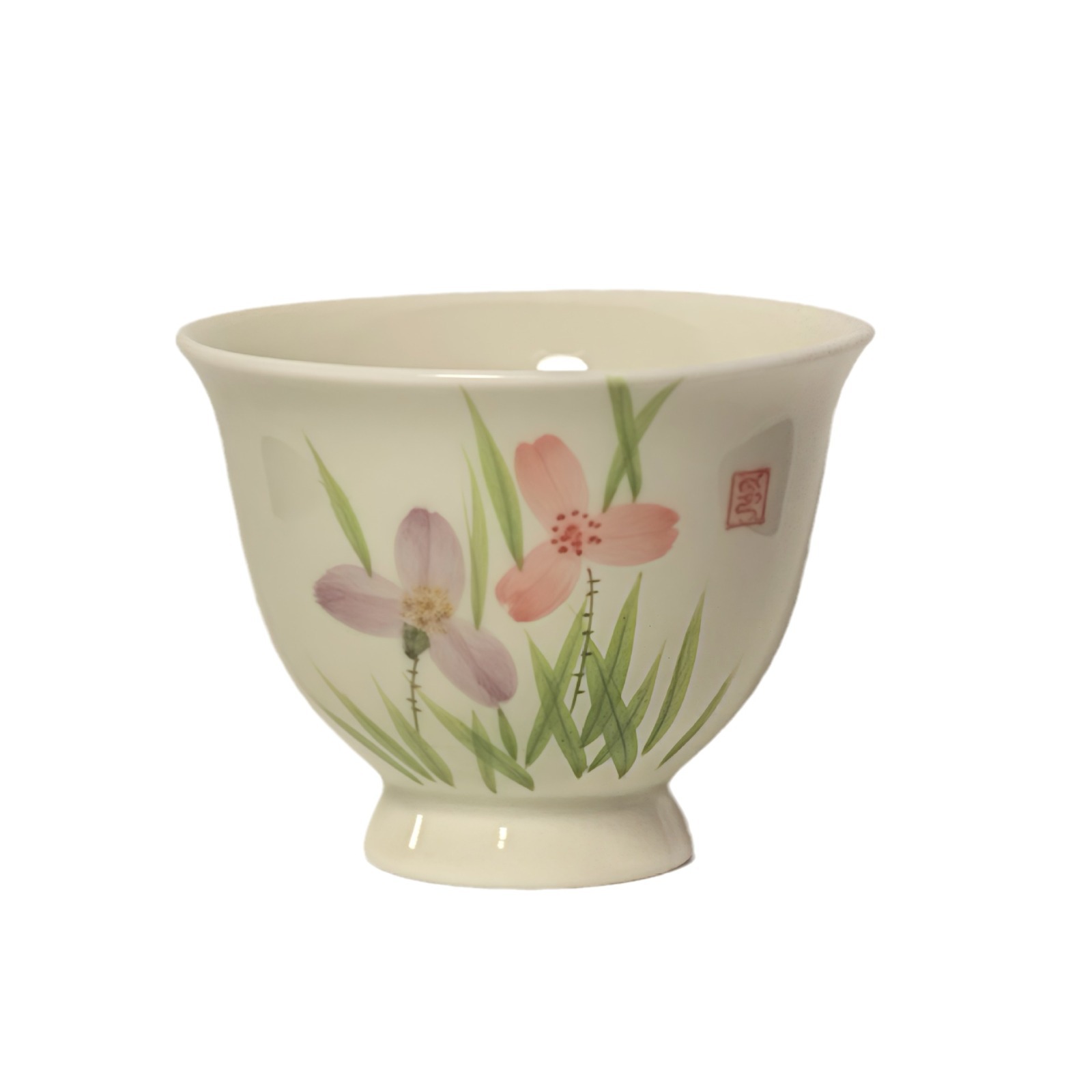 米浆白手绘兰花品茗杯陶瓷功夫茶杯白瓷主人杯釉下彩喝茶杯子单个