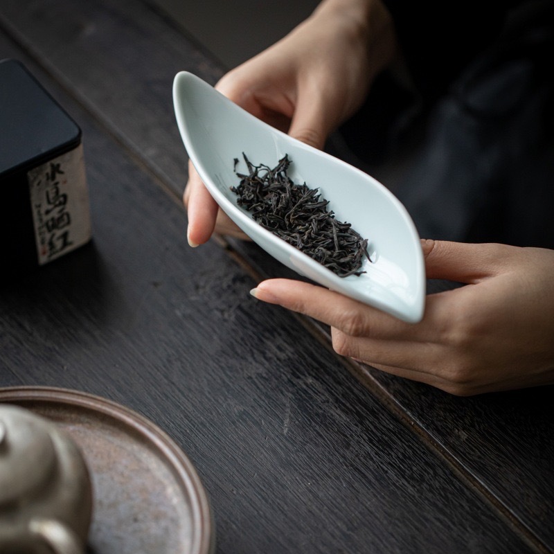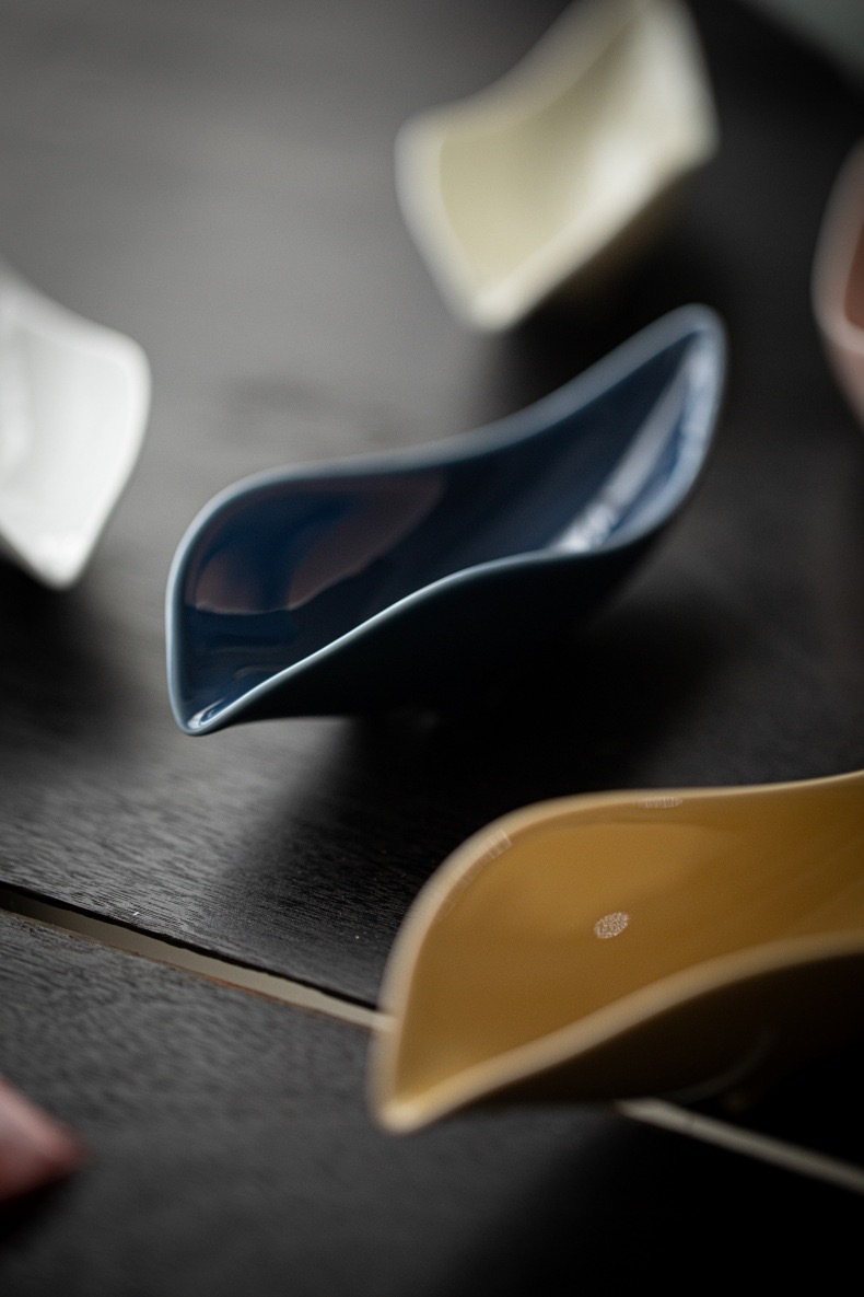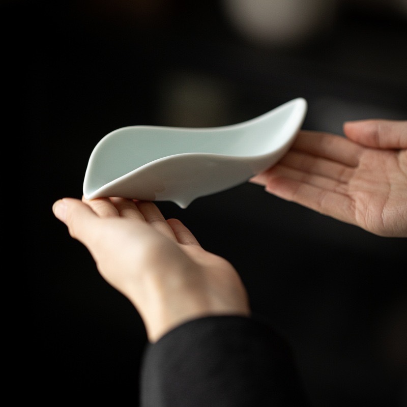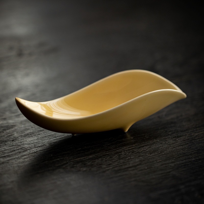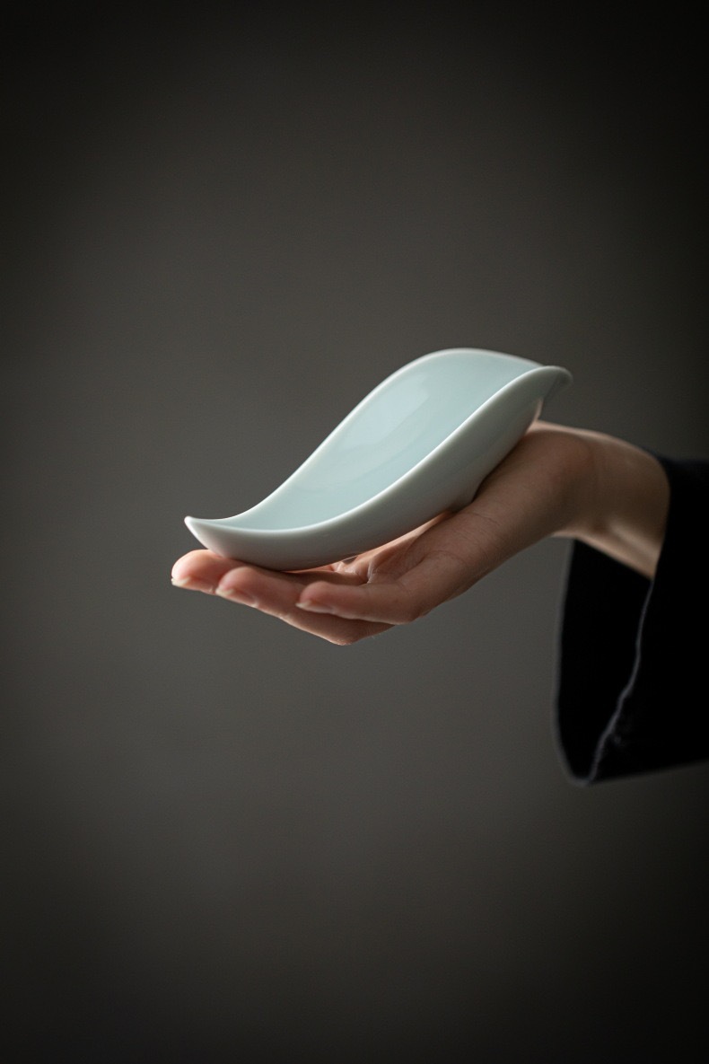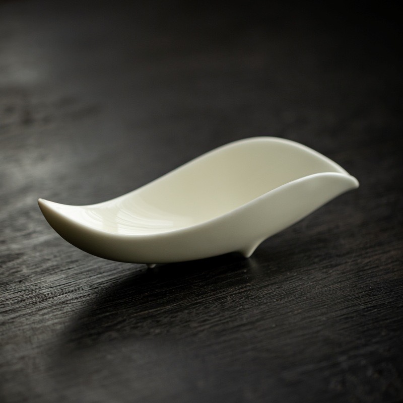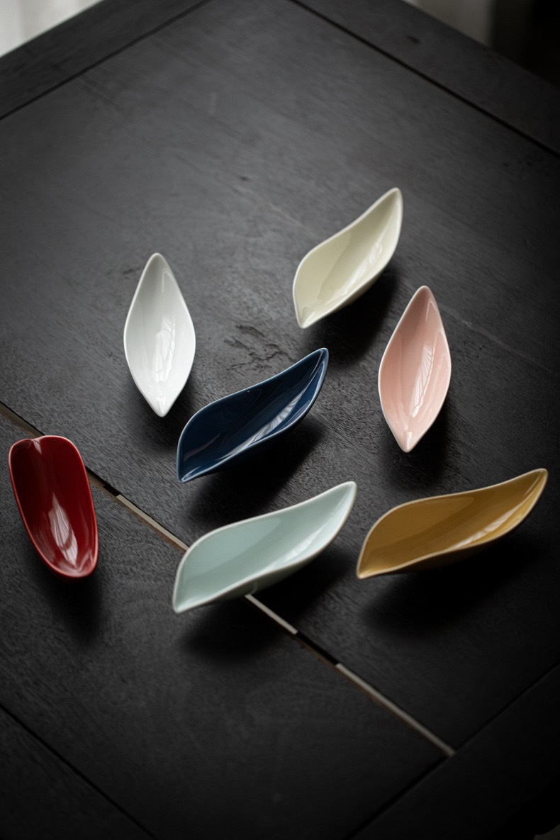 叶片型纯色釉茶荷陶瓷家用赏茶醒茶茶则分茶器创意功夫茶道零配件