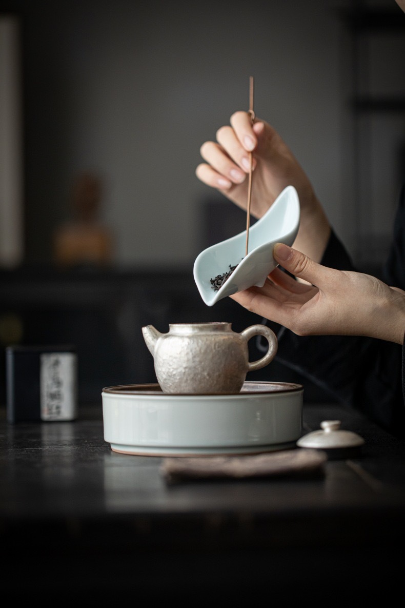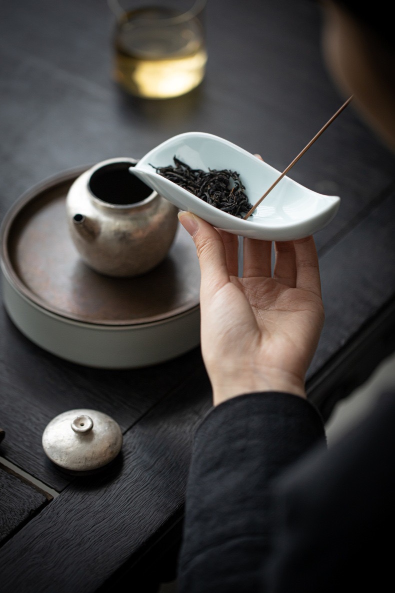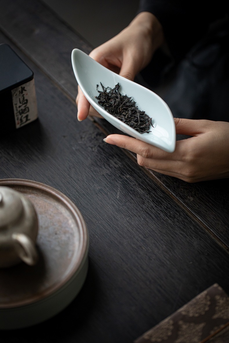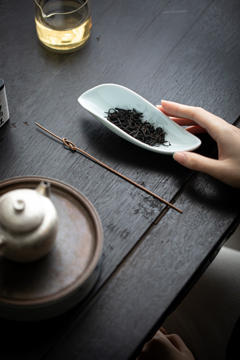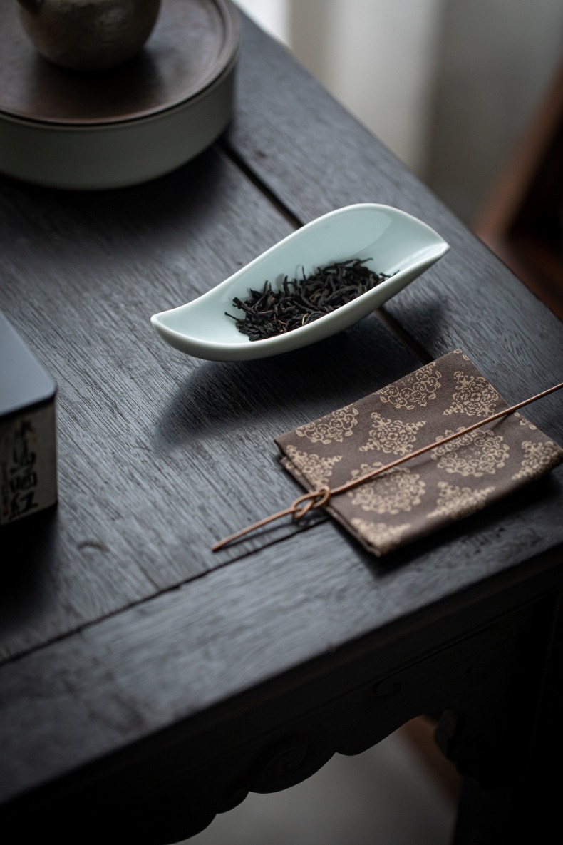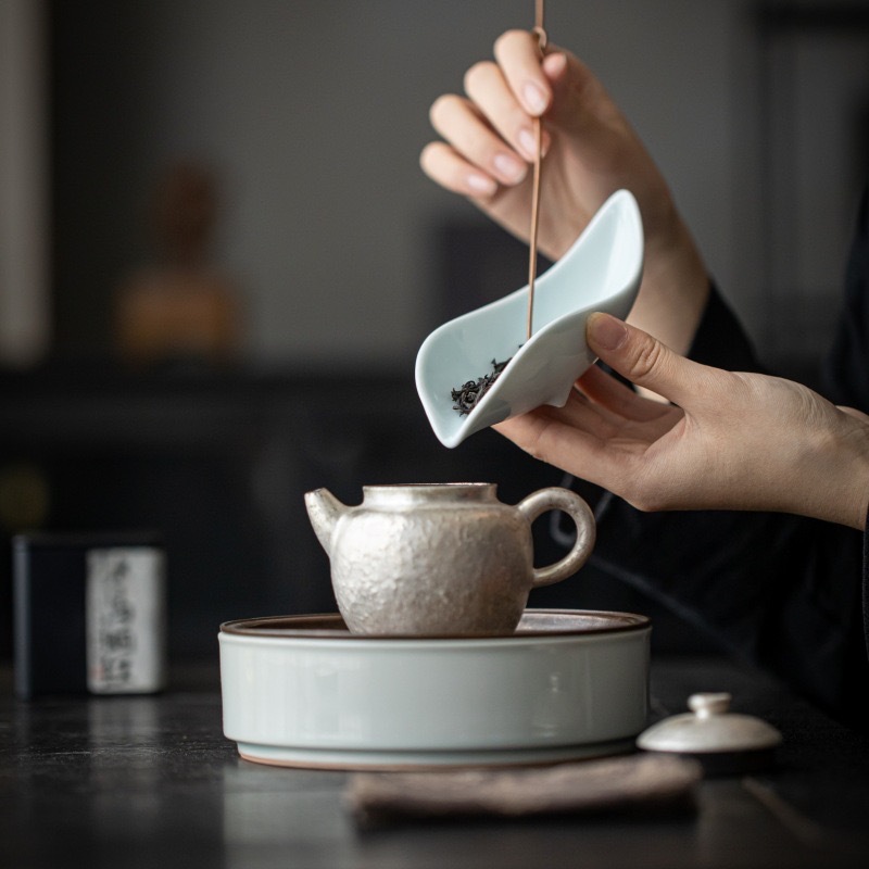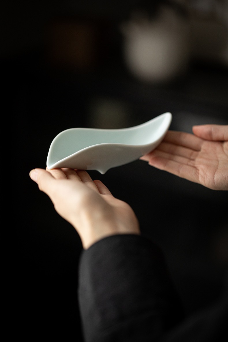 叶片型纯色釉茶荷陶瓷家用赏茶醒茶茶则分茶器创意功夫茶道零配件