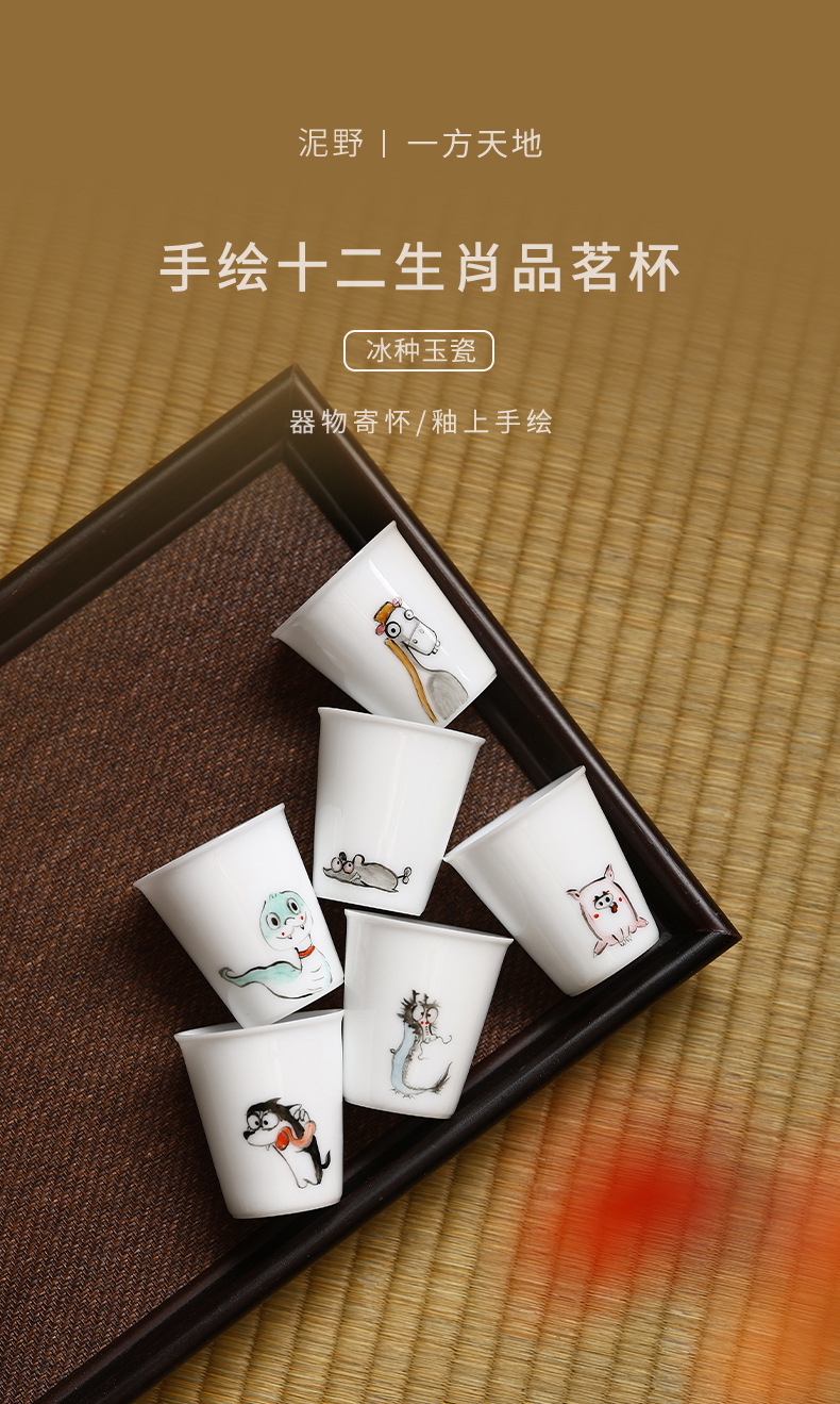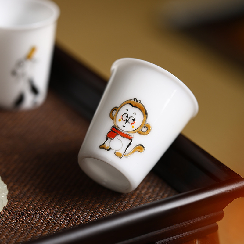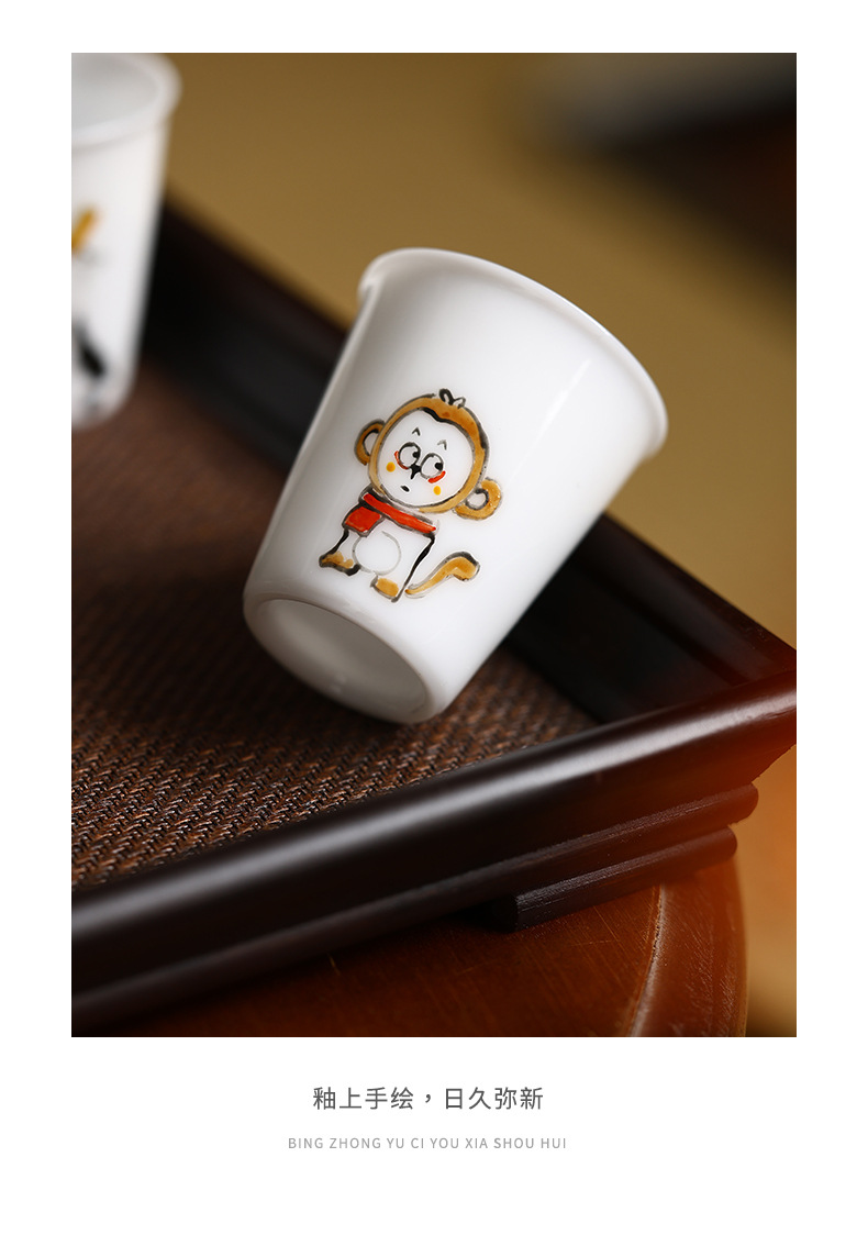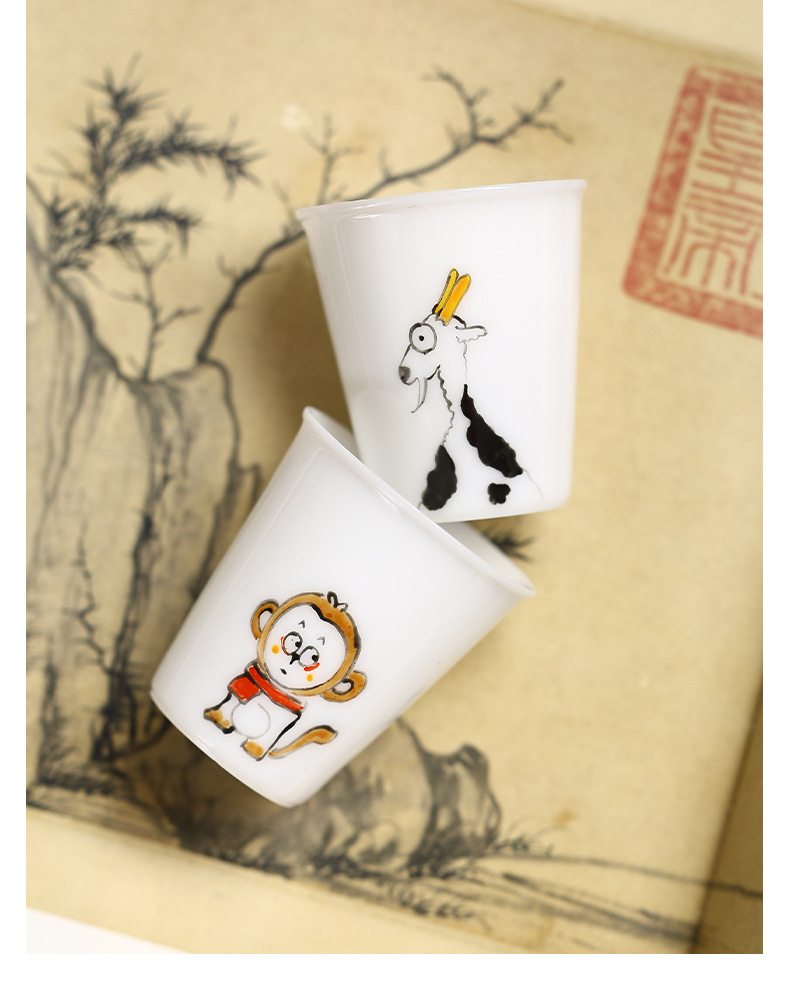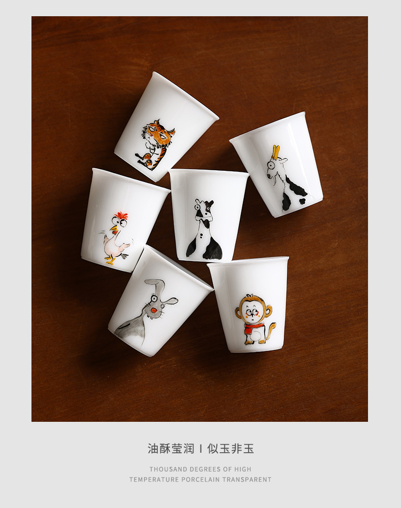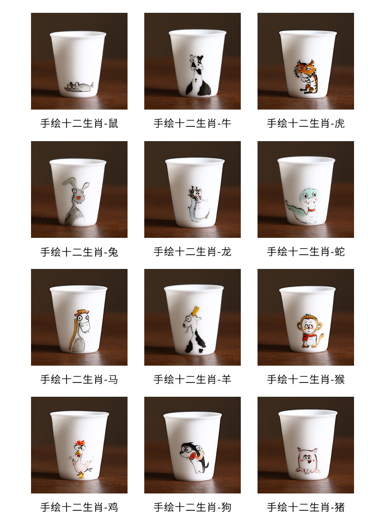 手绘十二生肖茶杯功夫茶小杯陶瓷茶杯主人杯冰种品茗杯卡通小茶杯