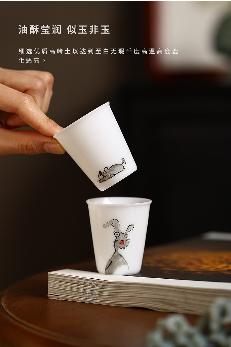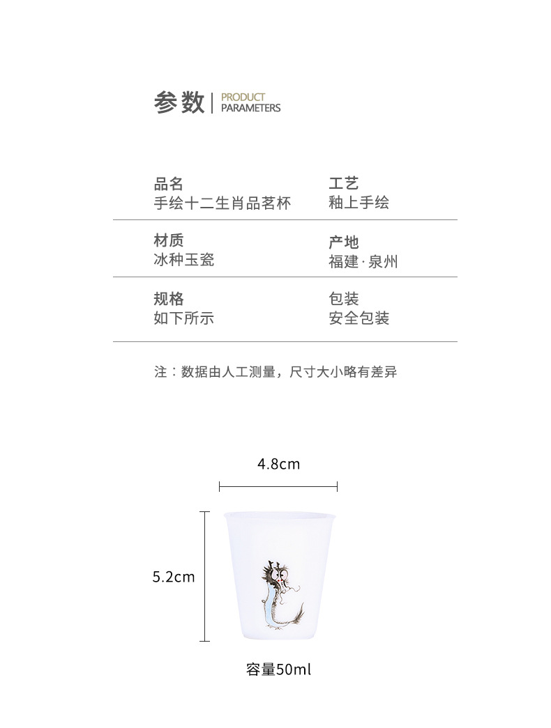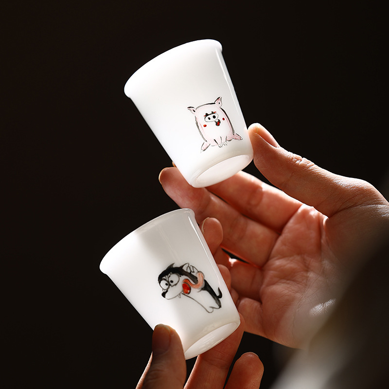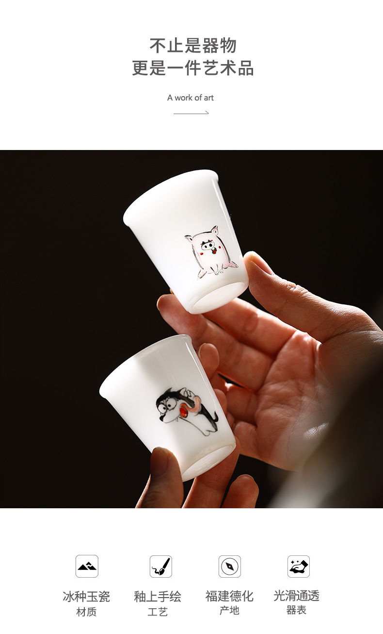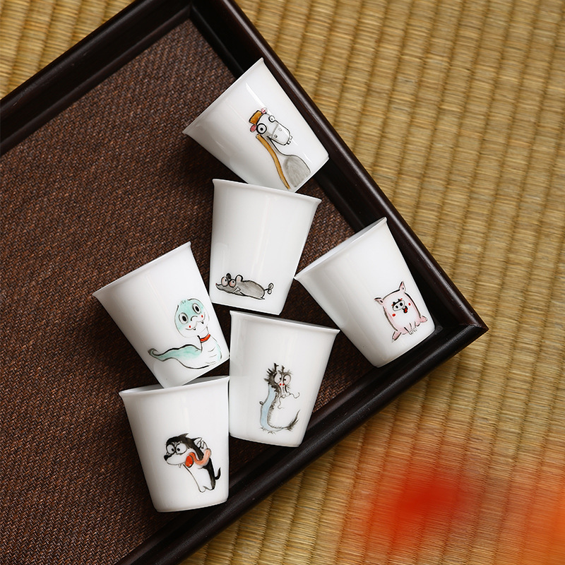 手绘十二生肖茶杯功夫茶小杯陶瓷茶杯主人杯冰种品茗杯卡通小茶杯