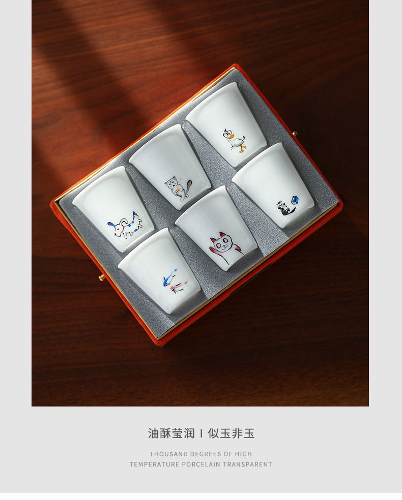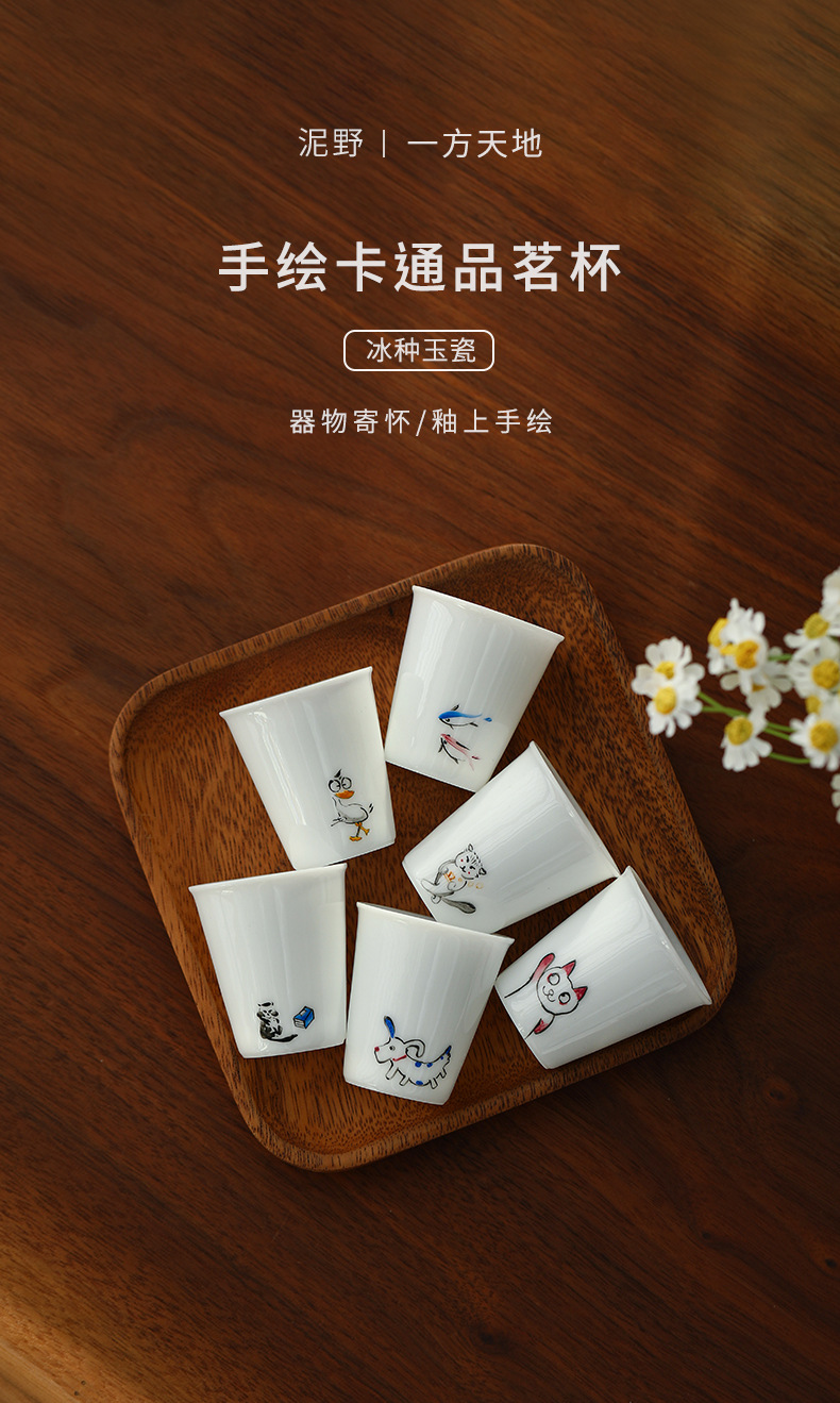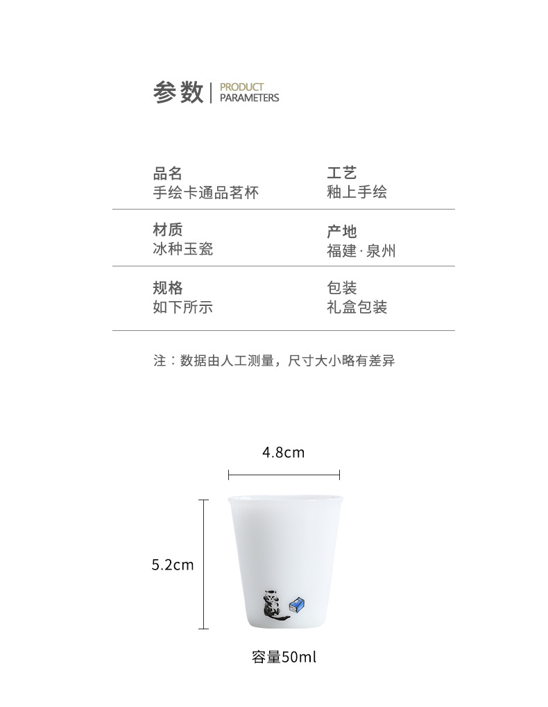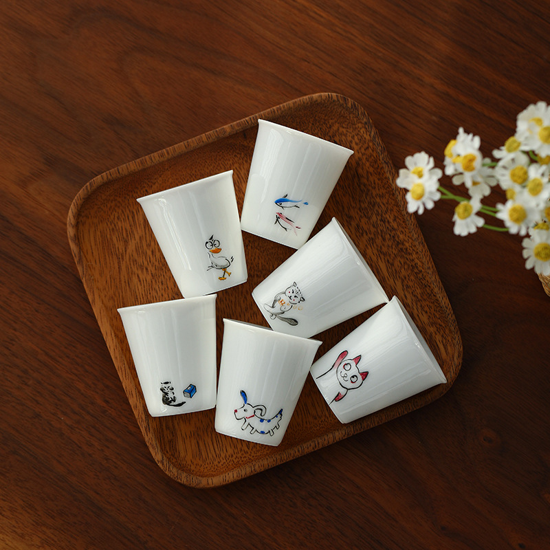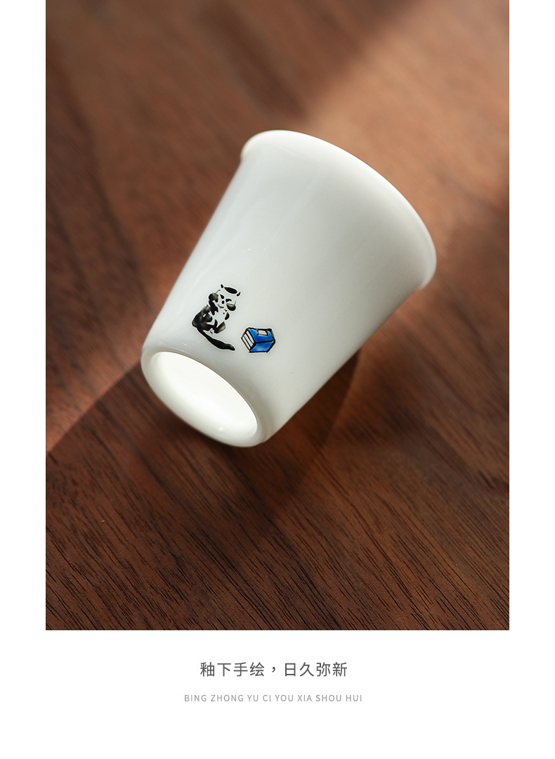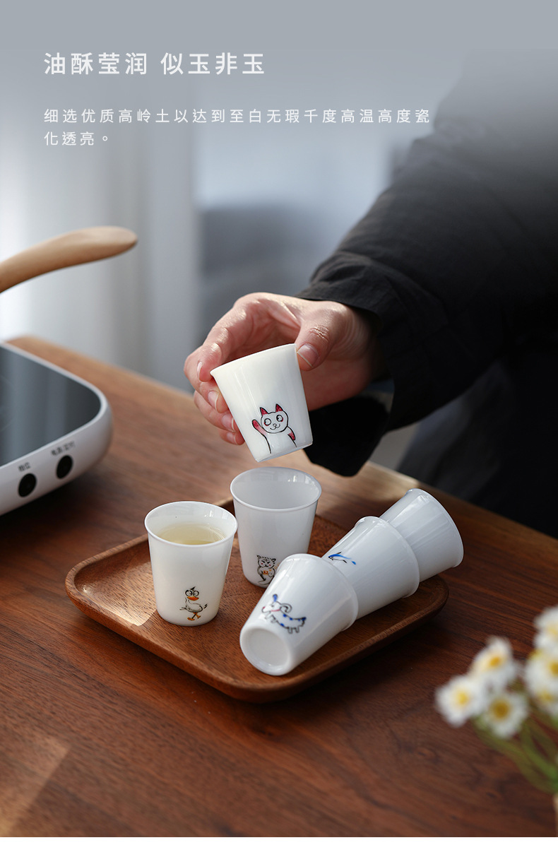 手绘卡通陶瓷茶杯冰种玉瓷功夫茶小茶杯主人杯闻香杯品茗杯功夫杯