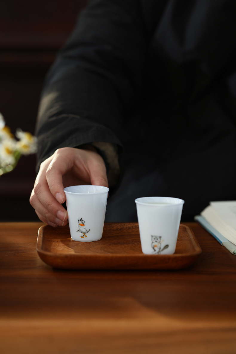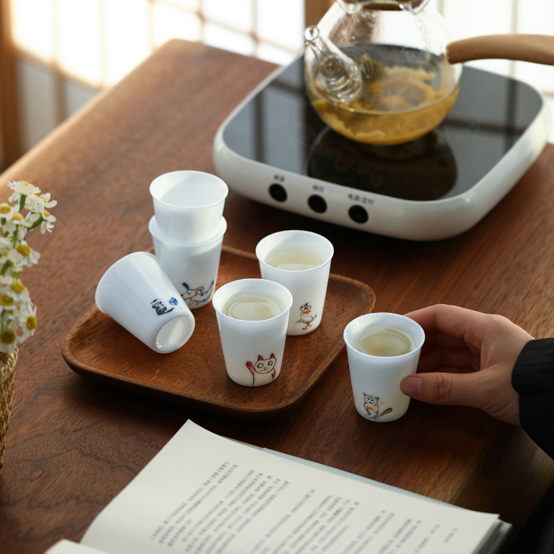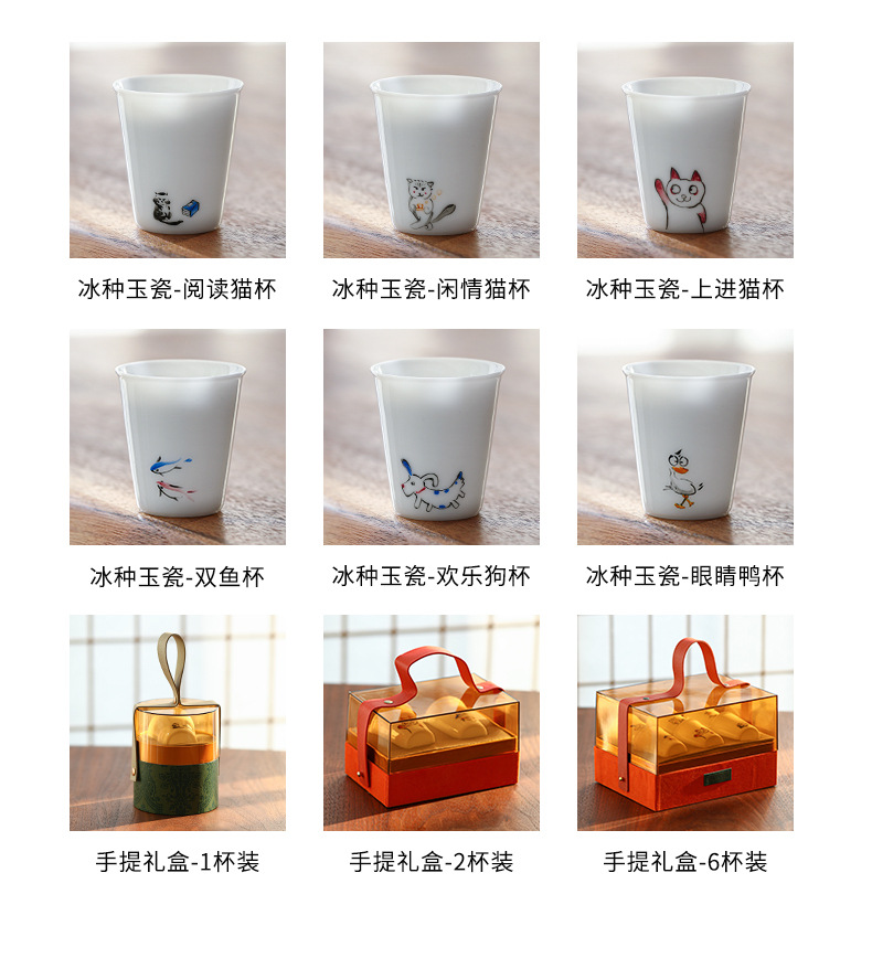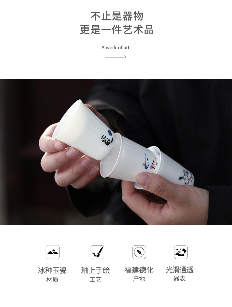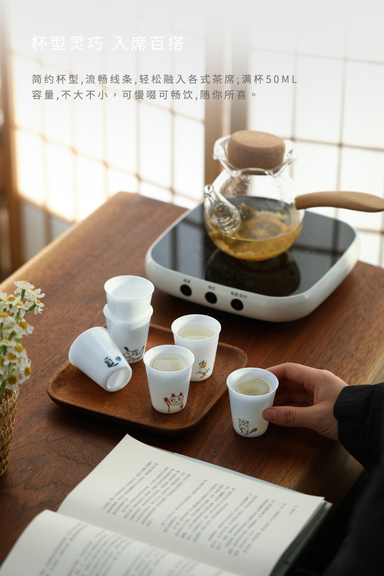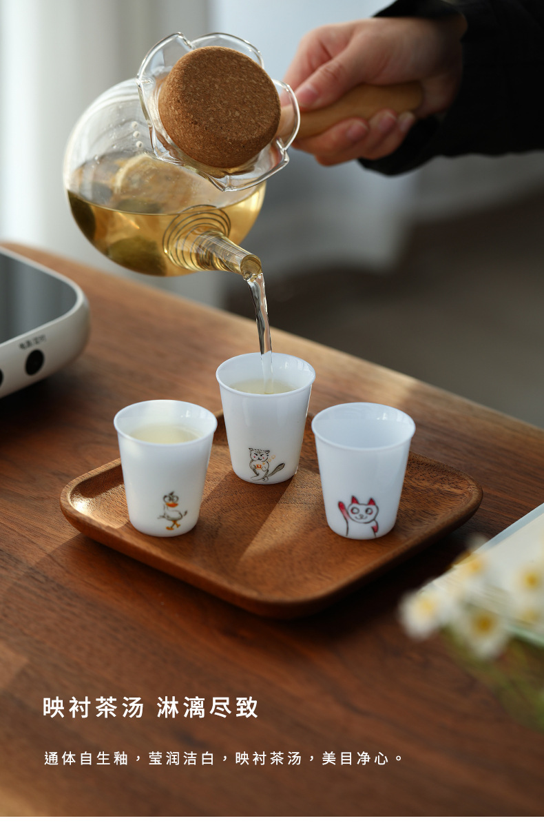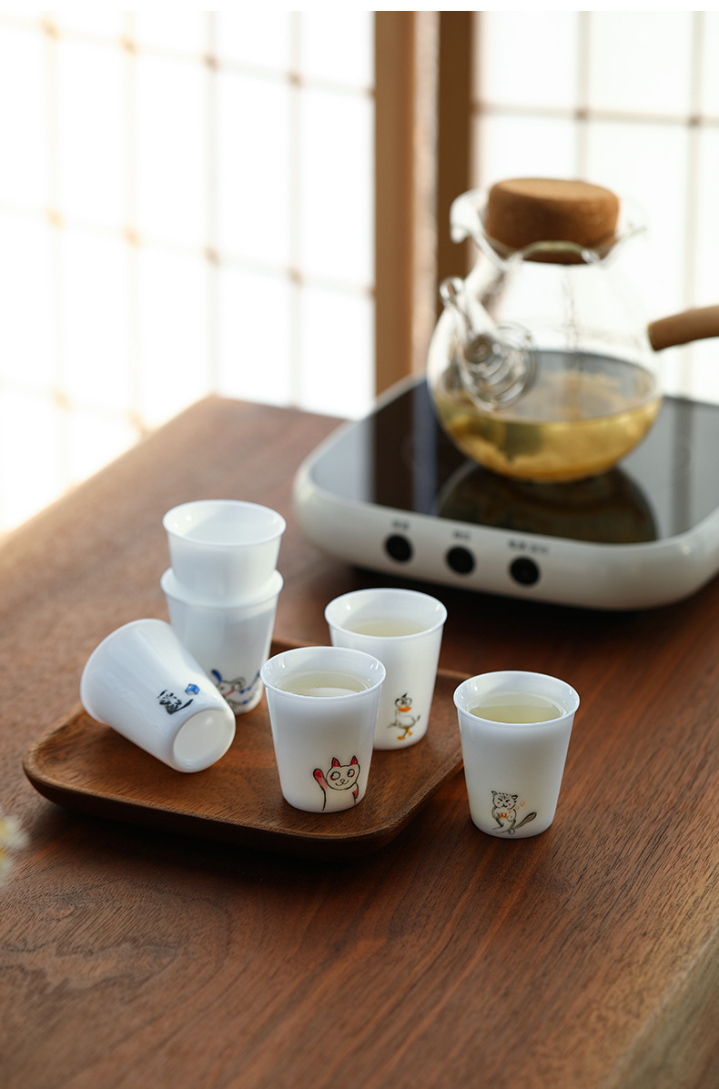 手绘卡通陶瓷茶杯冰种玉瓷功夫茶小茶杯主人杯闻香杯品茗杯功夫杯