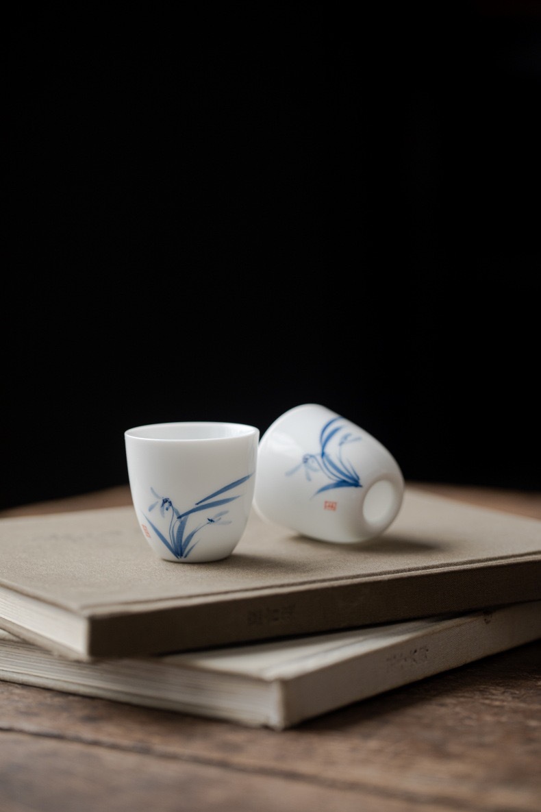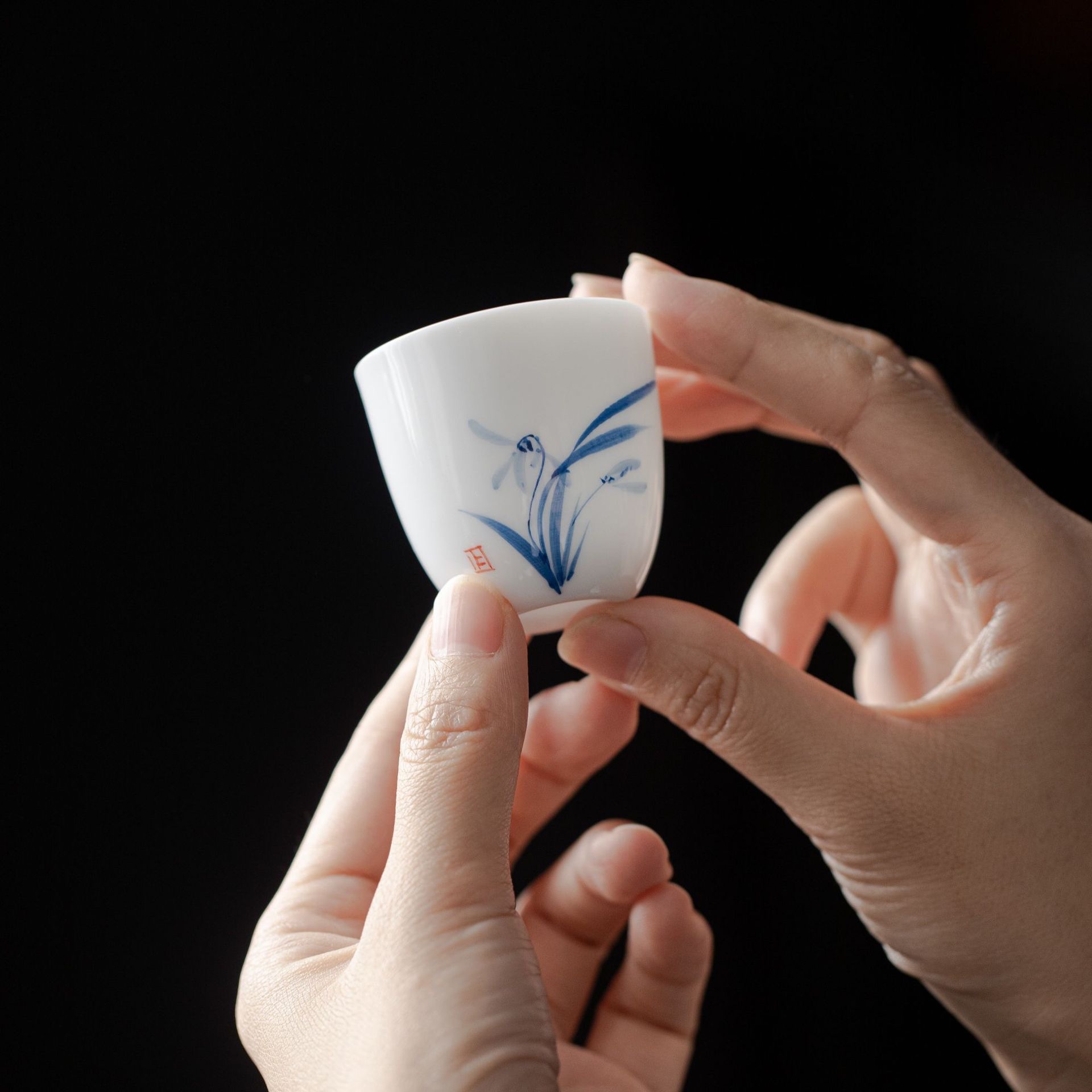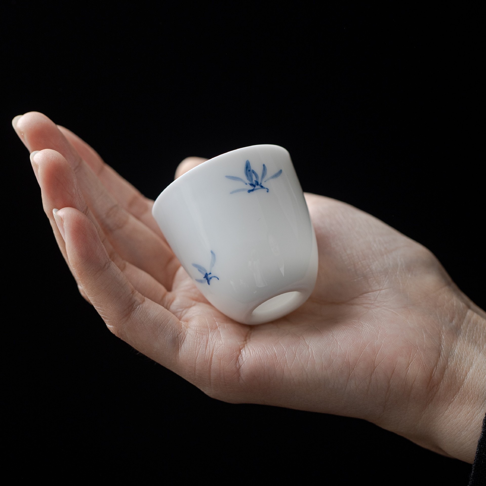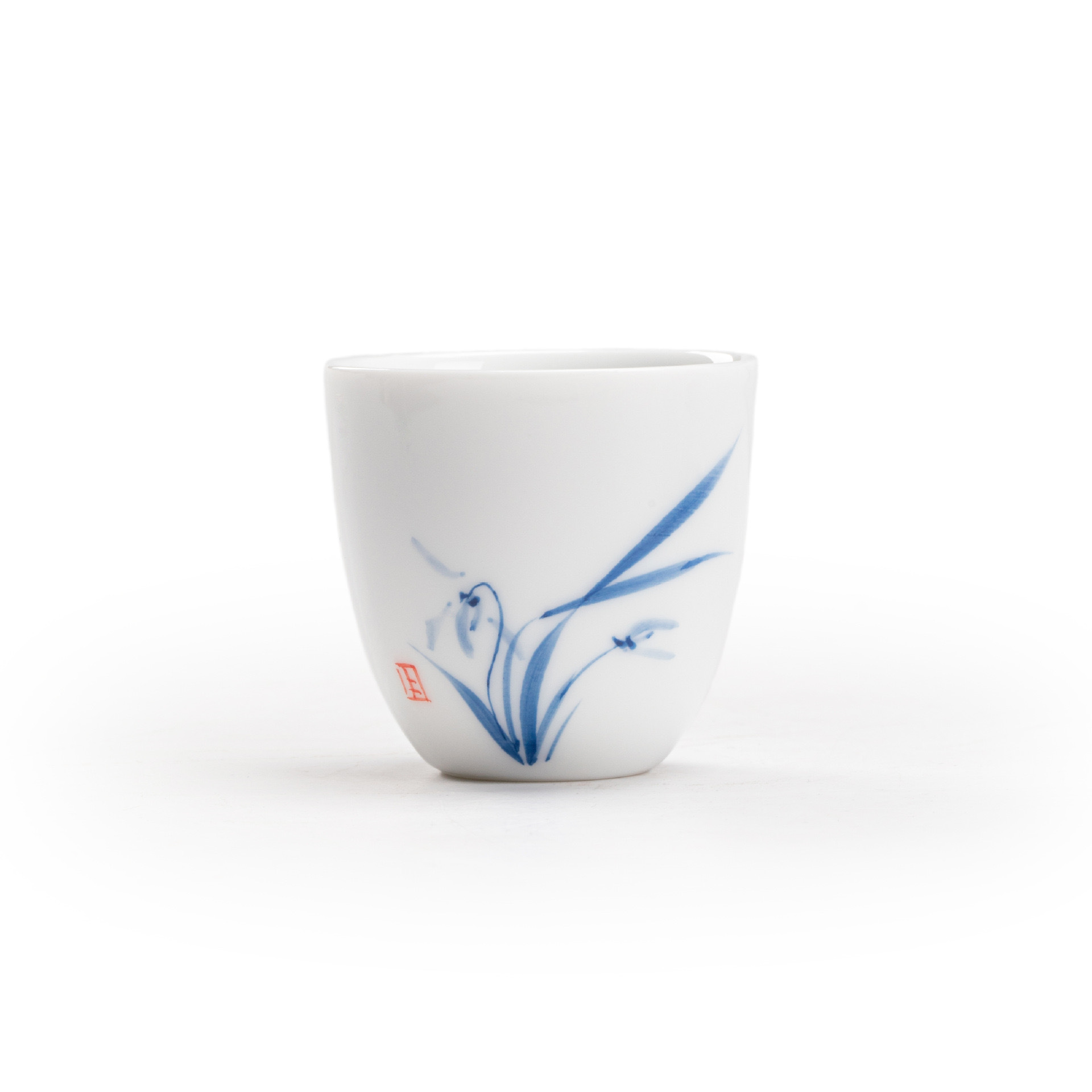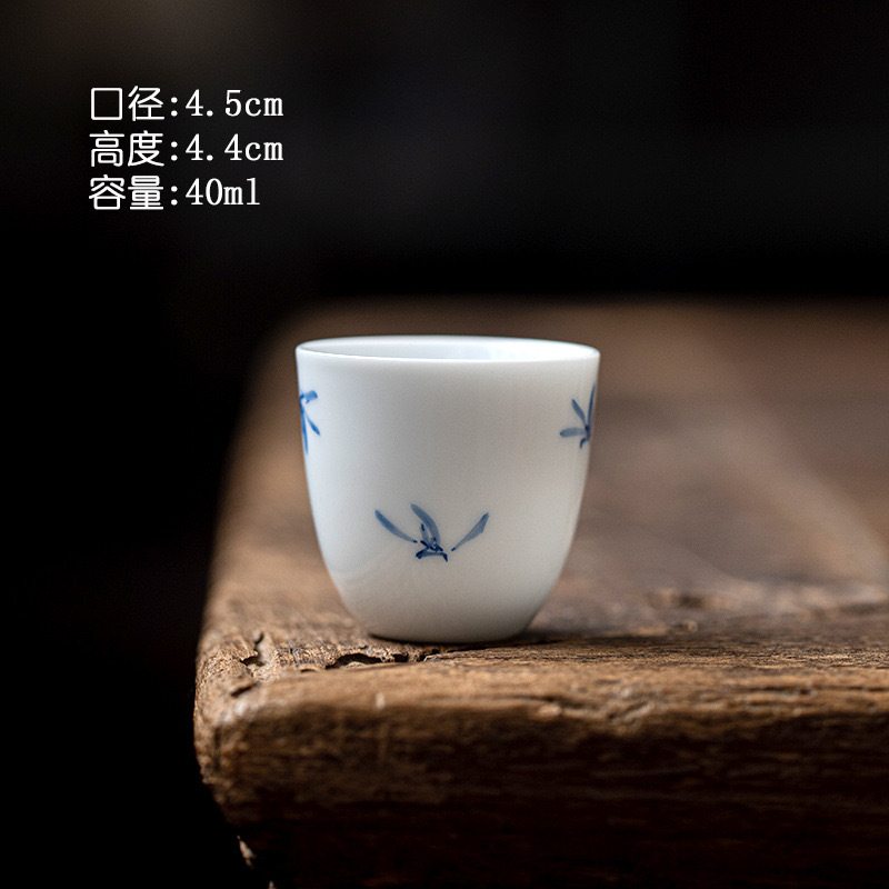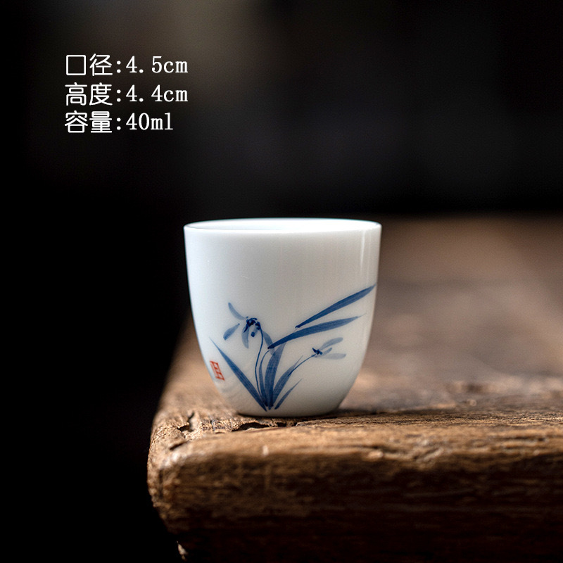 陶瓷茶杯主人杯手绘兰花品茗杯功夫茶杯家用单杯釉下彩喝茶小茶杯
