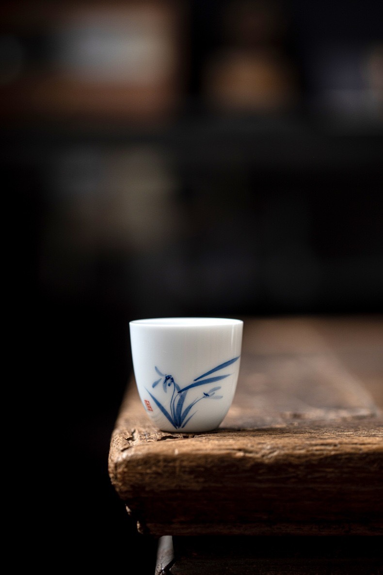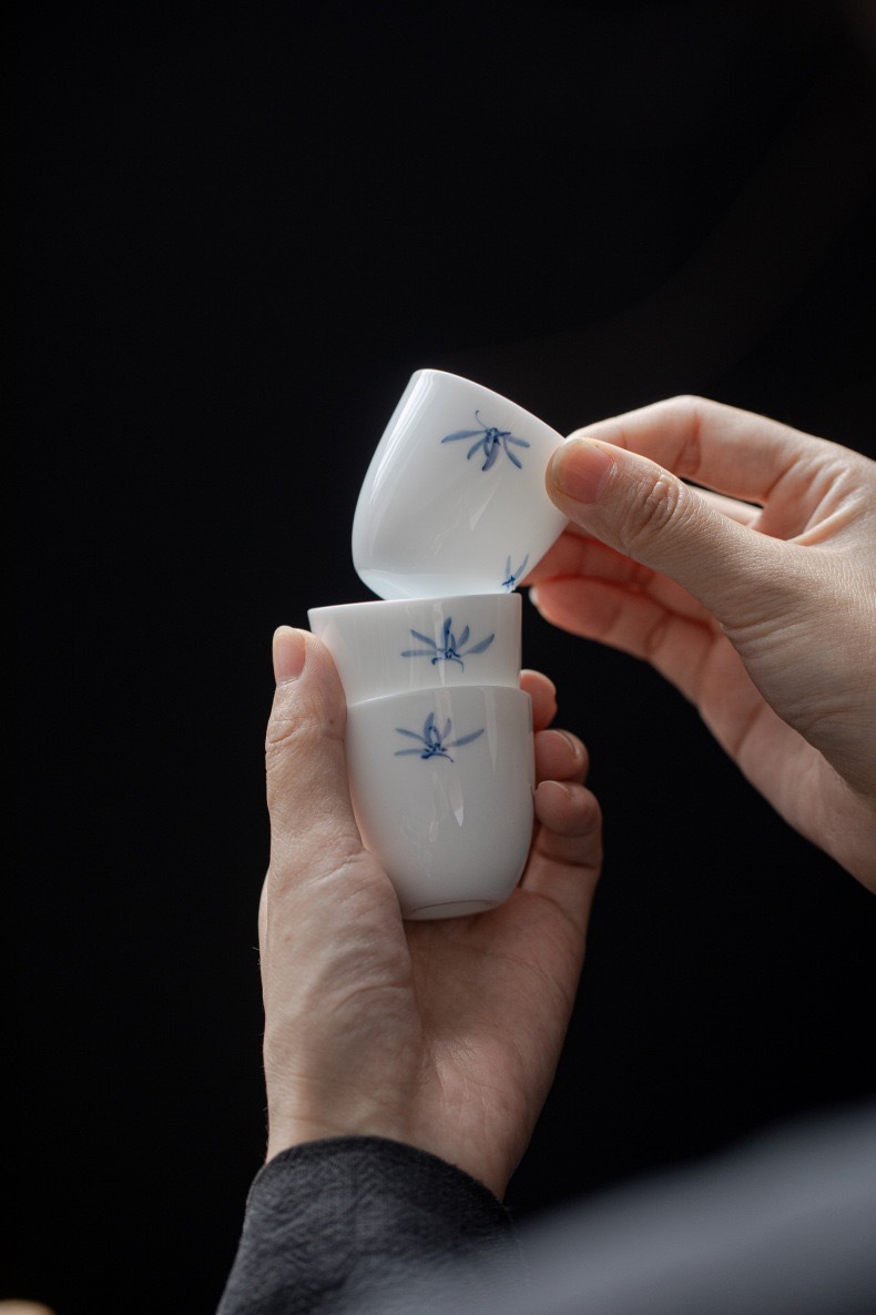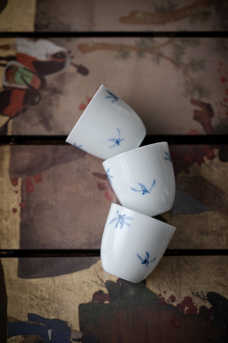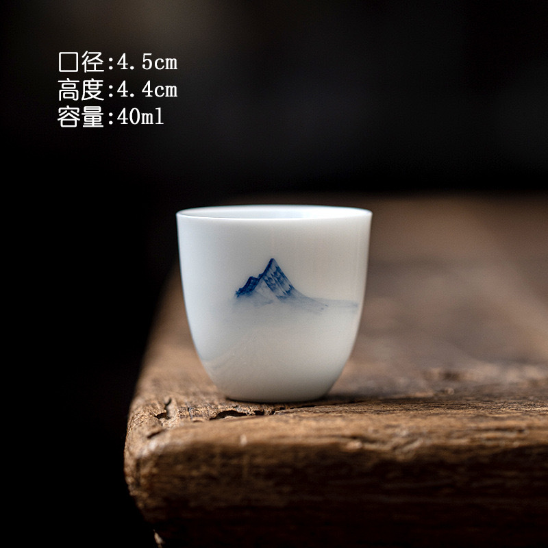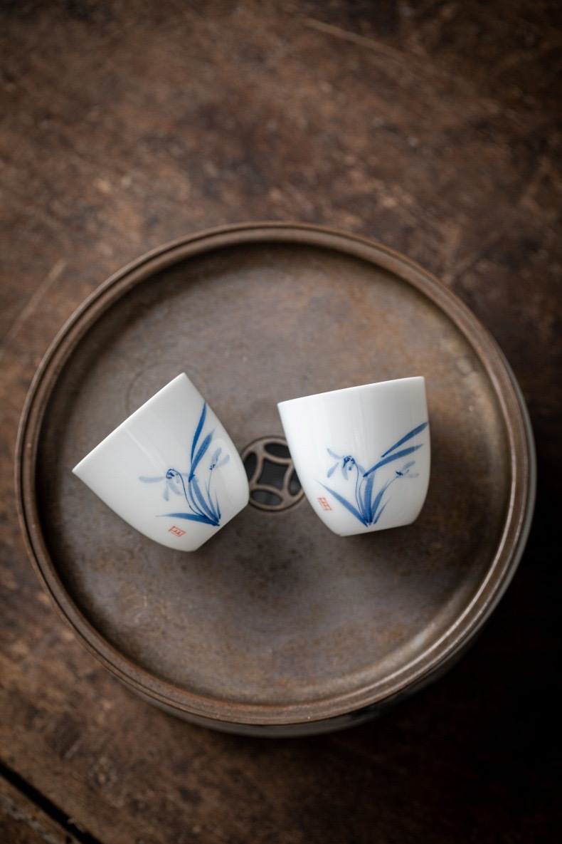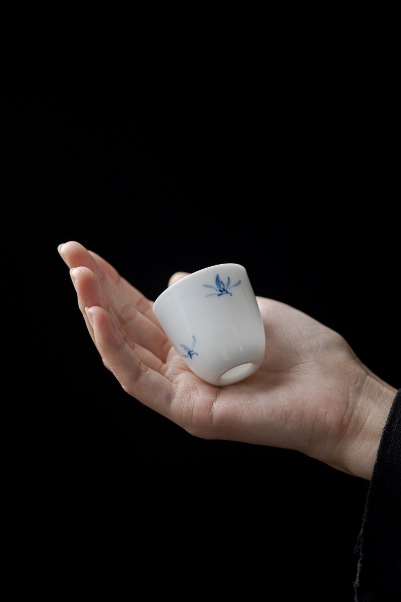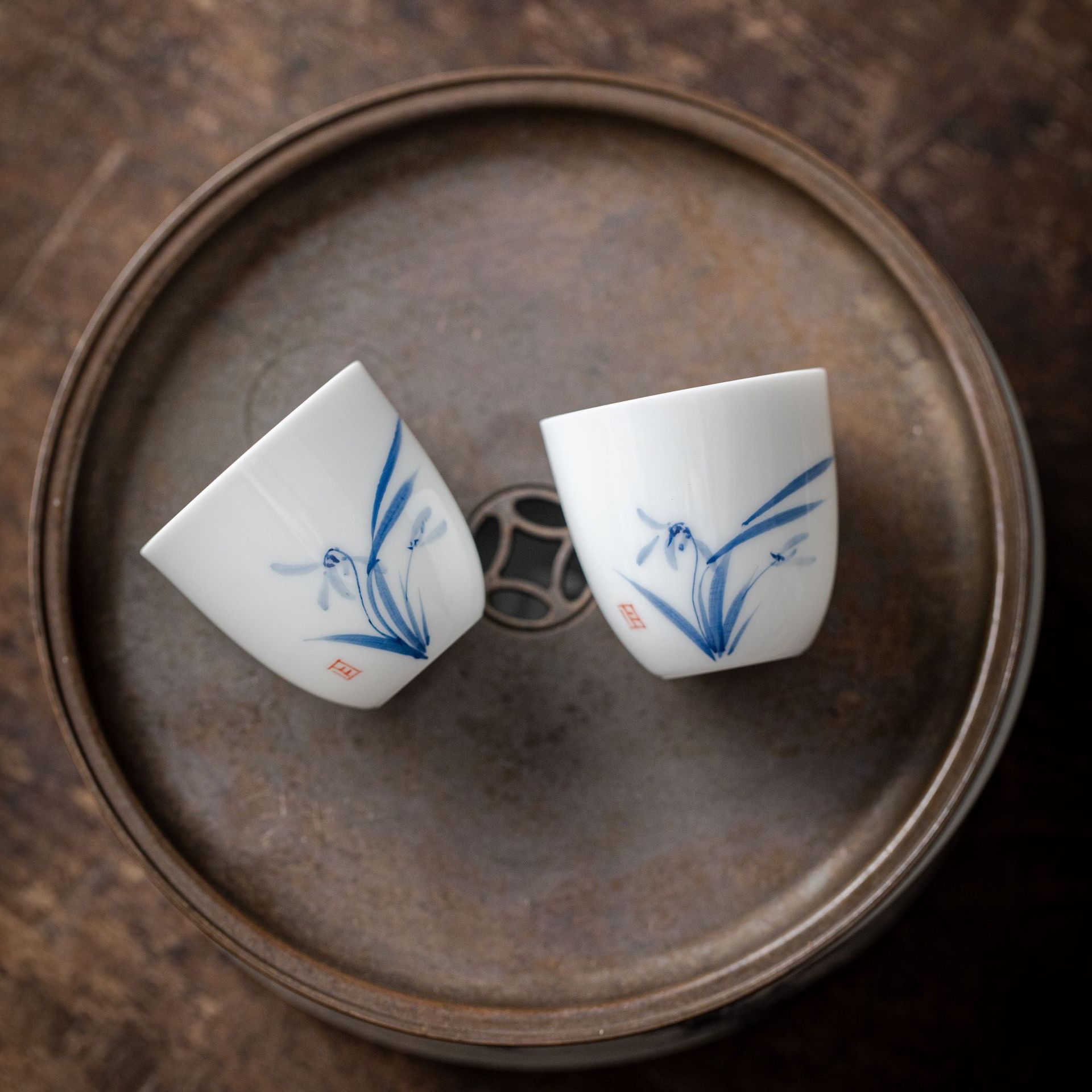 陶瓷茶杯主人杯手绘兰花品茗杯功夫茶杯家用单杯釉下彩喝茶小茶杯