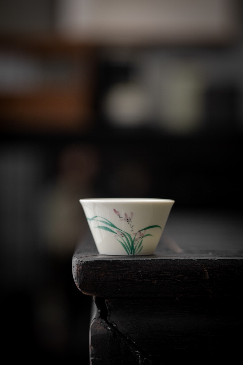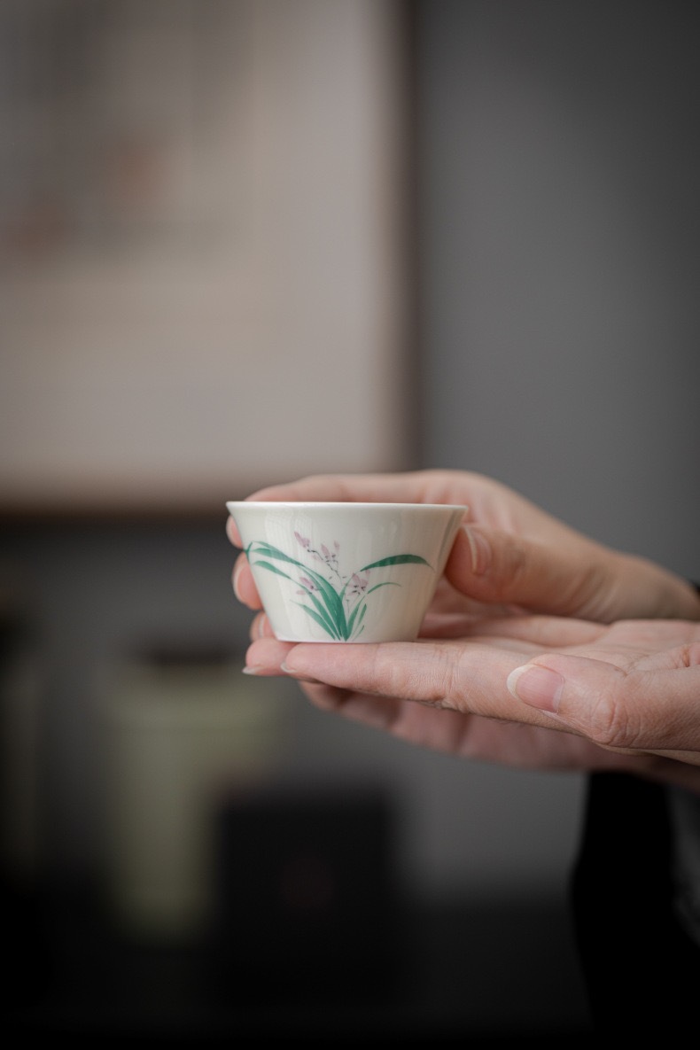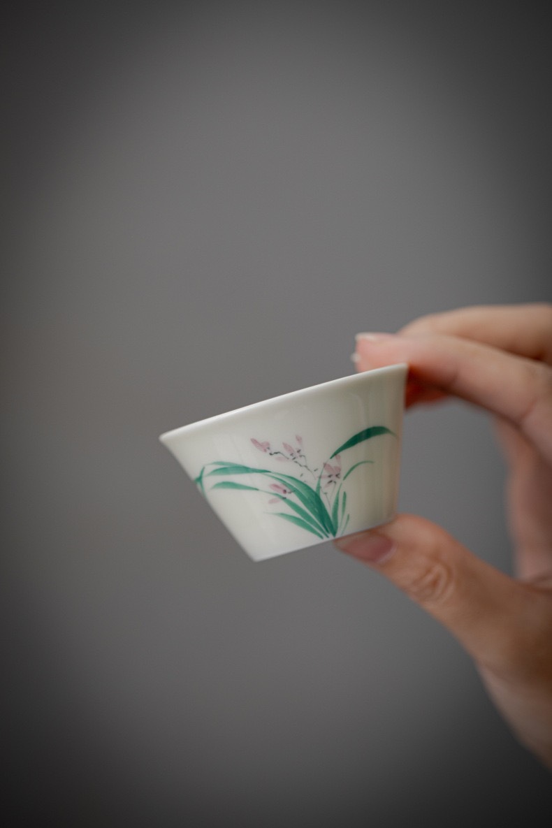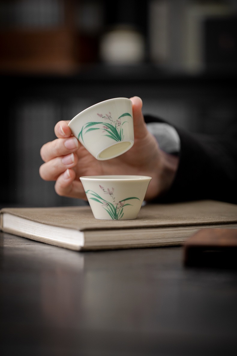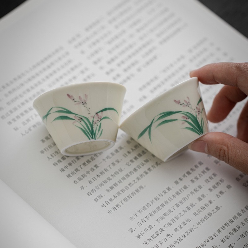 手绘兰花陶瓷茶杯白瓷主人杯喝茶品茗杯泡茶功夫茶杯釉下彩小茶杯