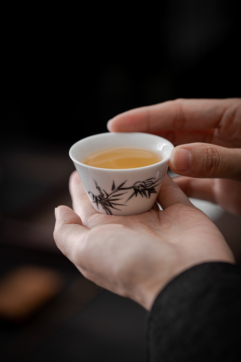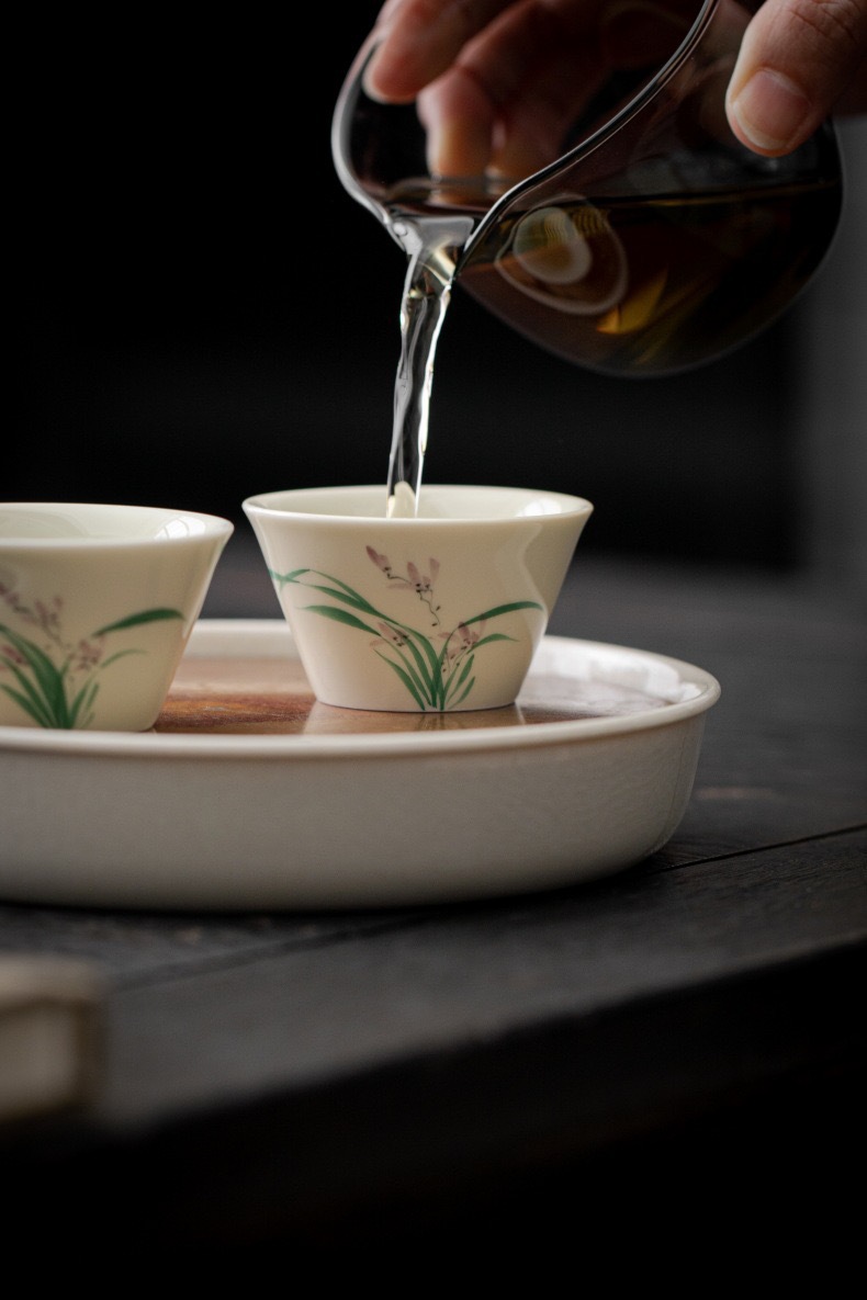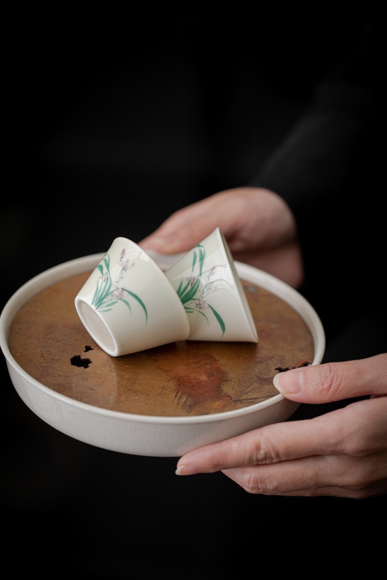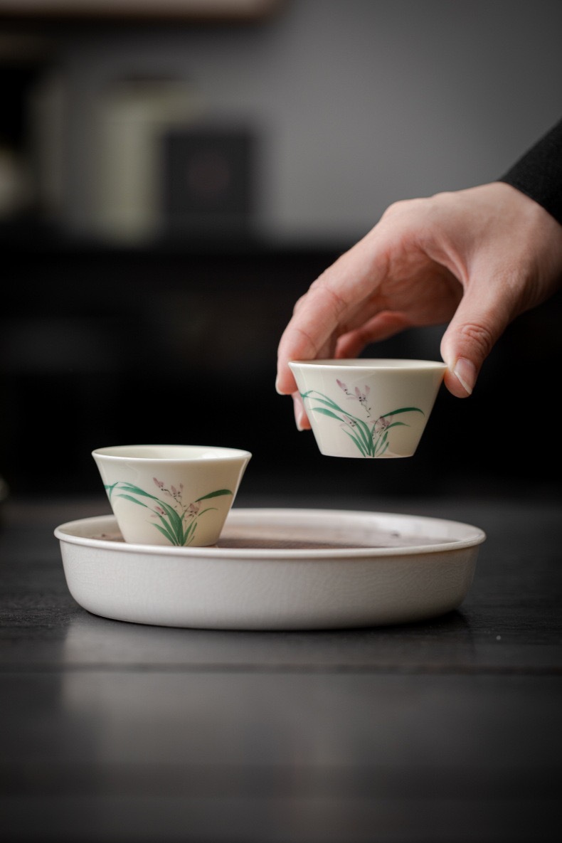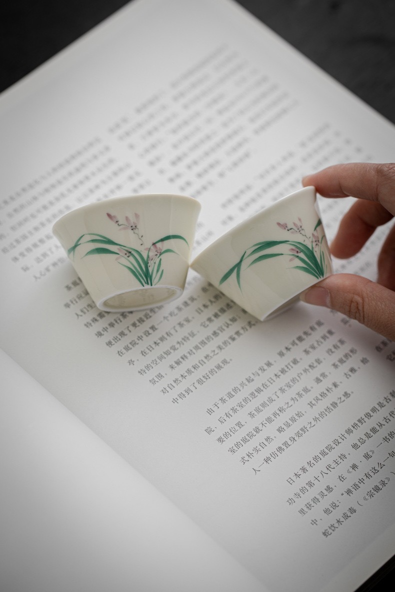 手绘兰花陶瓷茶杯白瓷主人杯喝茶品茗杯泡茶功夫茶杯釉下彩小茶杯