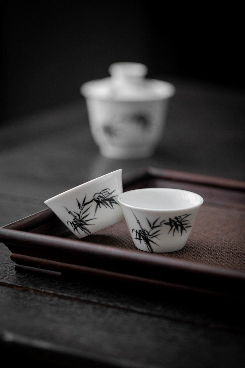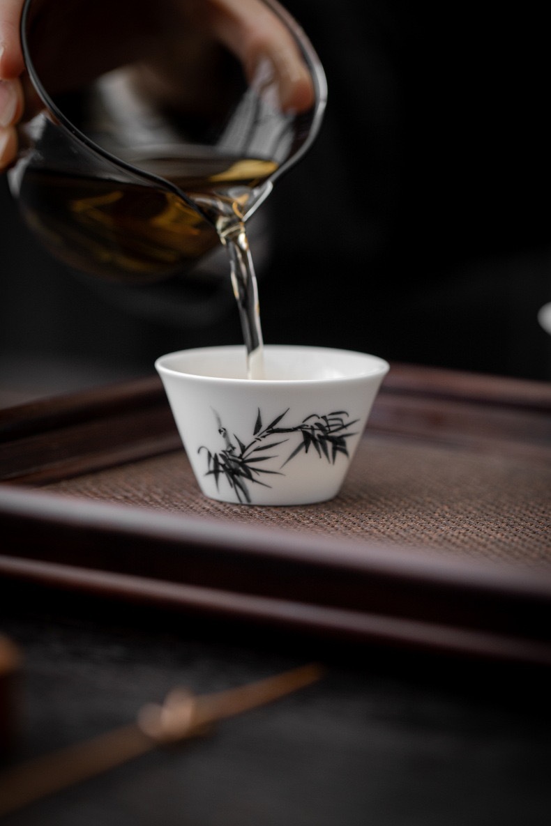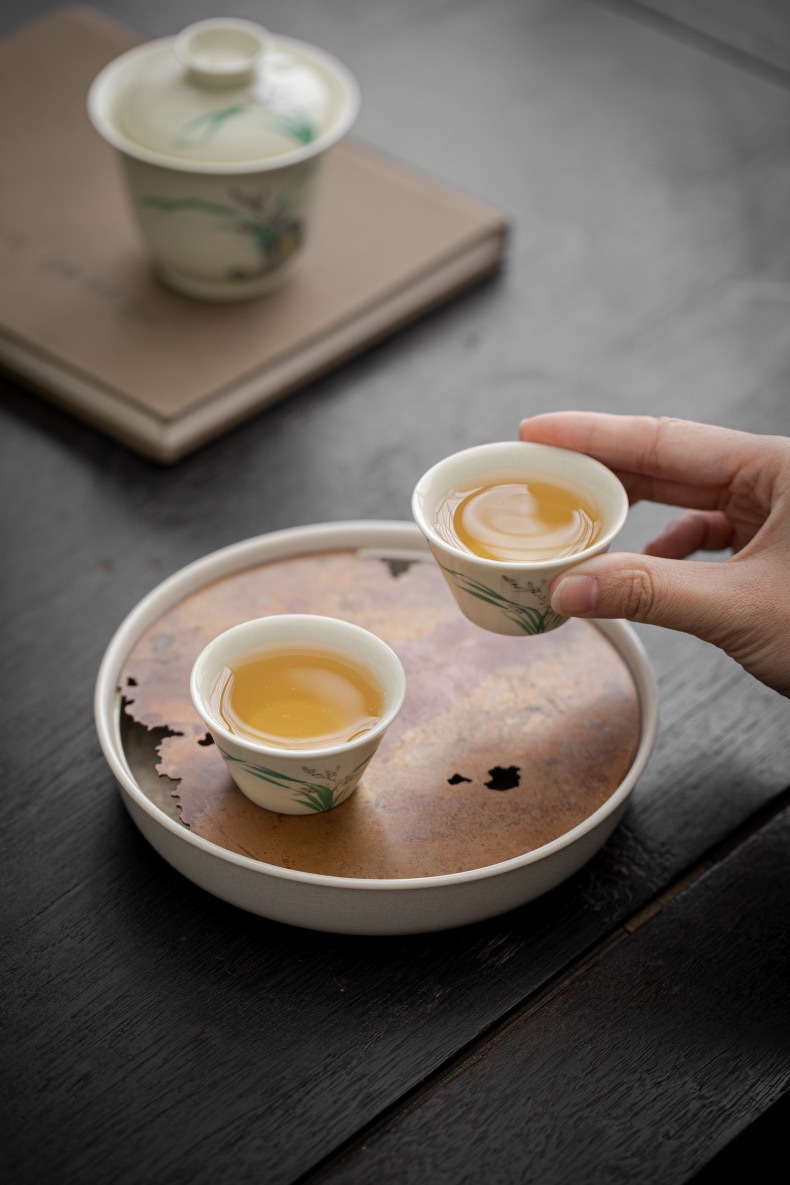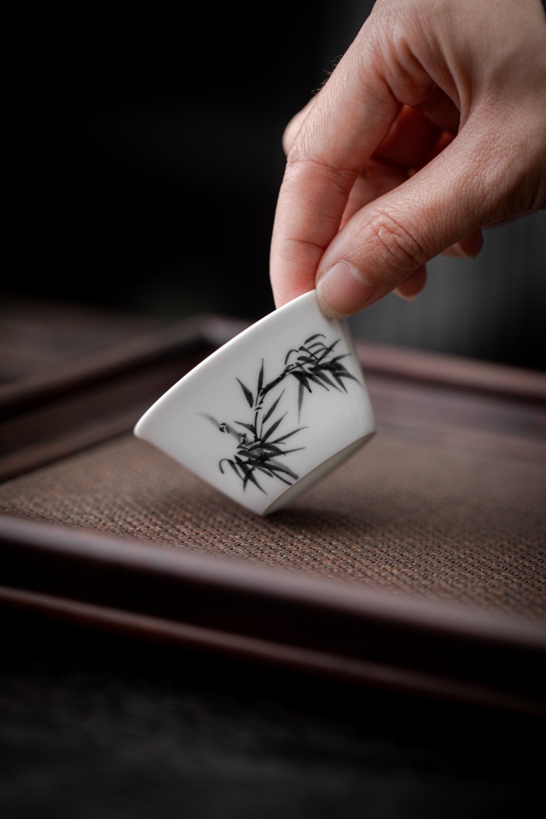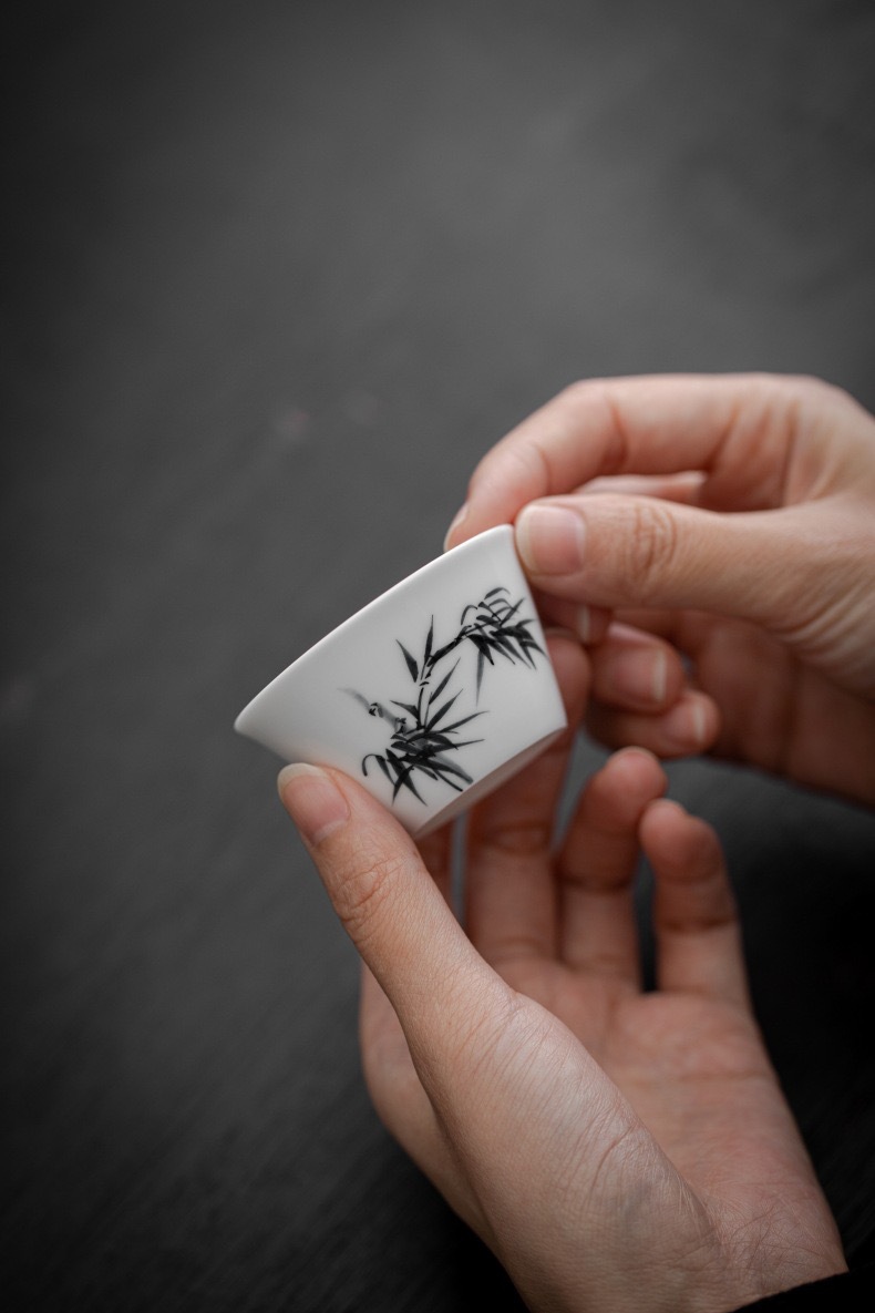 手绘兰花陶瓷茶杯白瓷主人杯喝茶品茗杯泡茶功夫茶杯釉下彩小茶杯