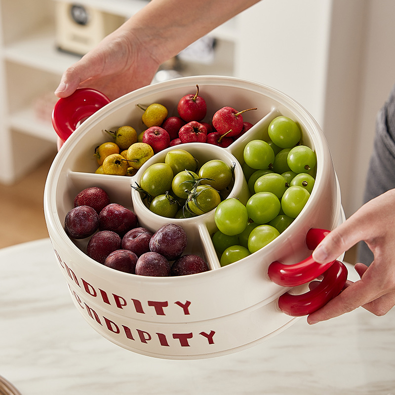 蝴蝶结果盘家用茶几干果盒分格坚果花生瓜子糖果多层零食收纳盒