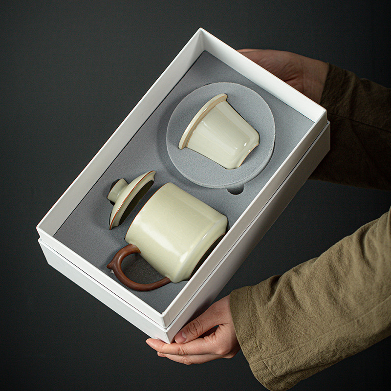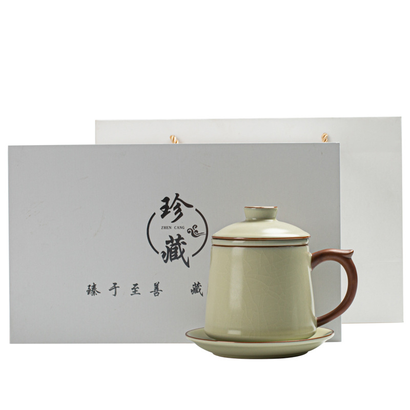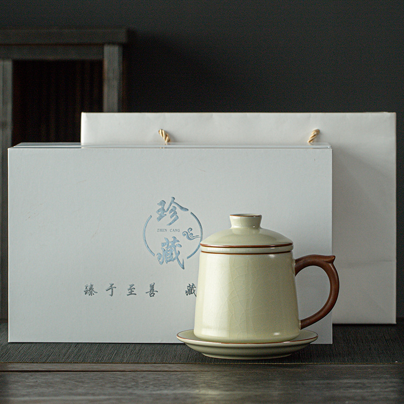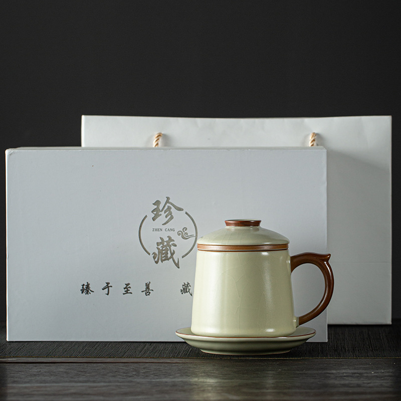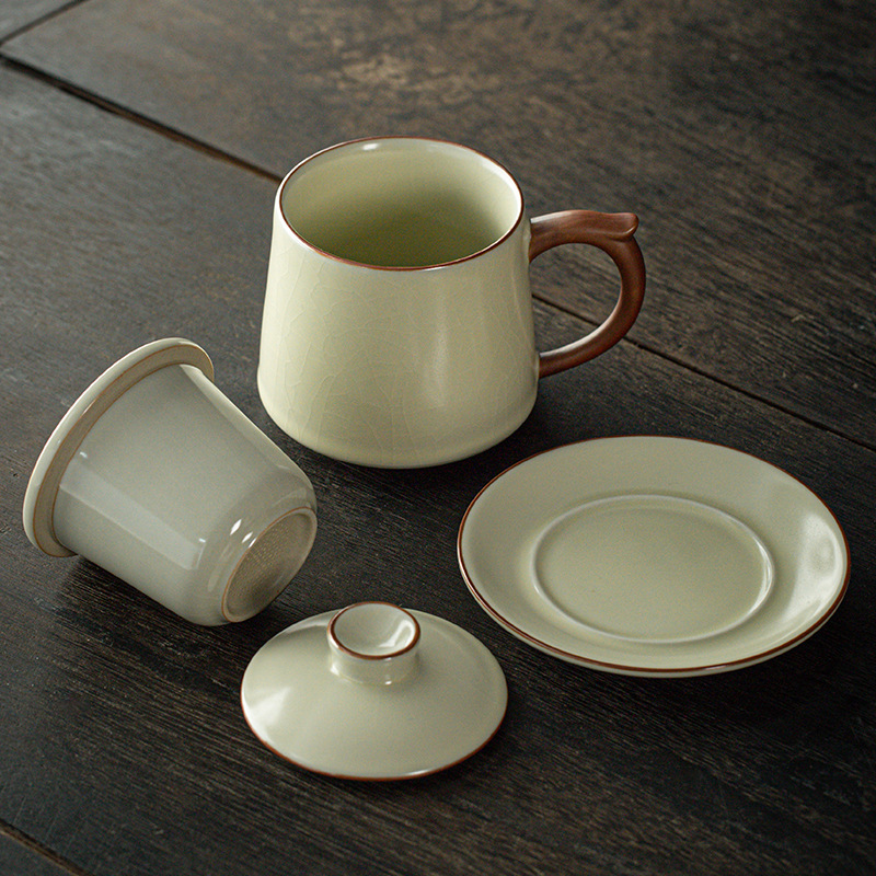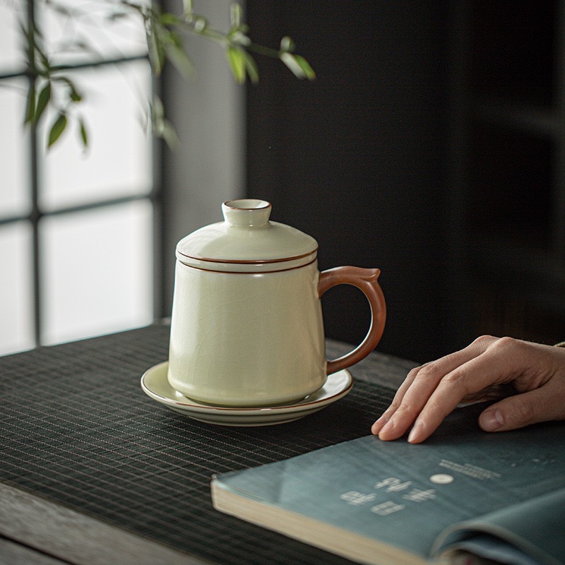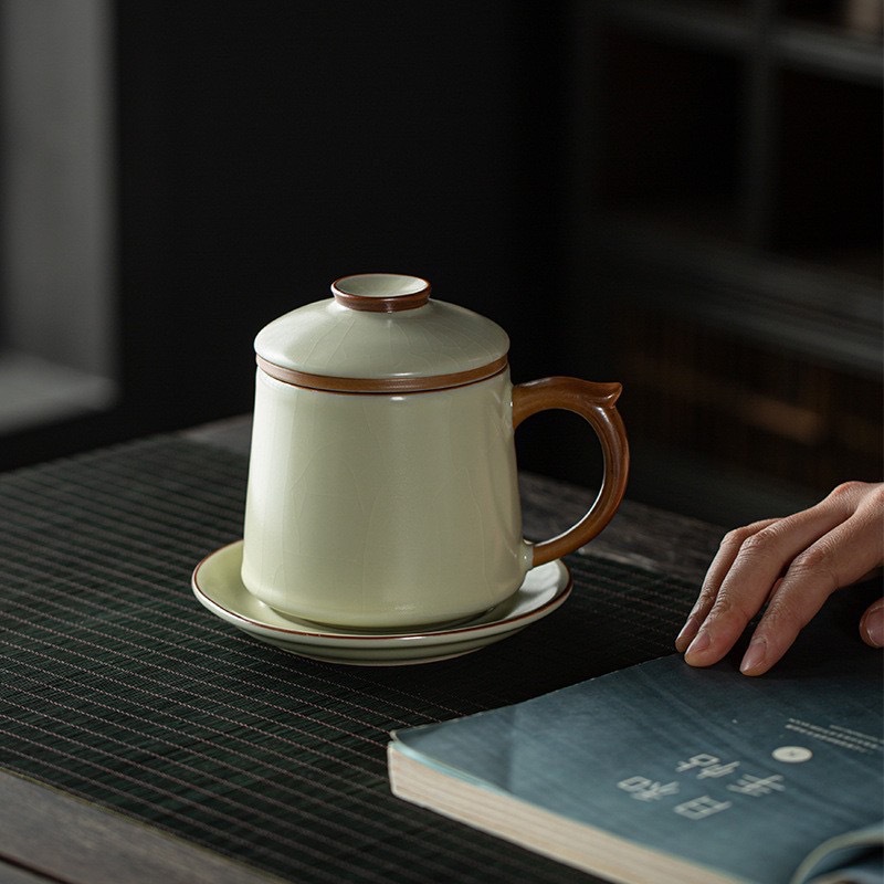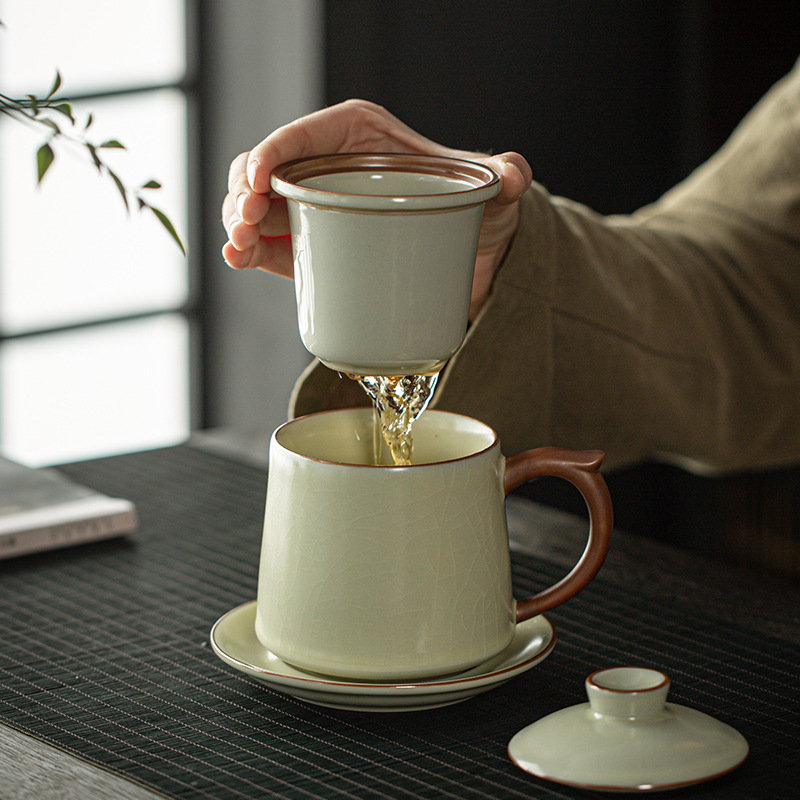 汝瓷功夫茶具马克杯带盖过滤办公室泡茶杯茶水分离杯家用陶瓷杯子