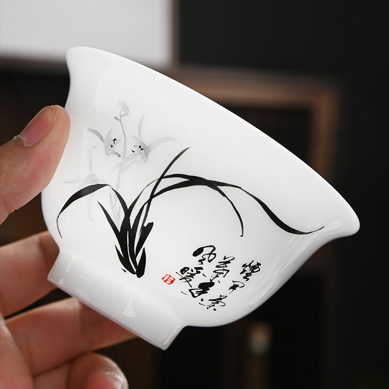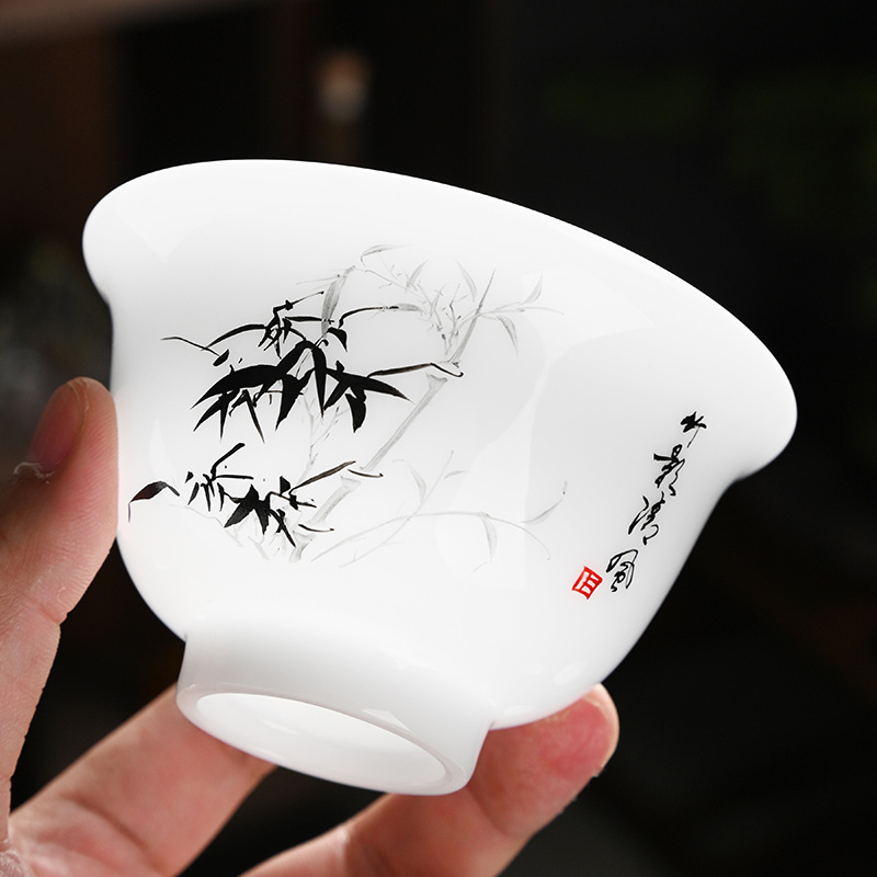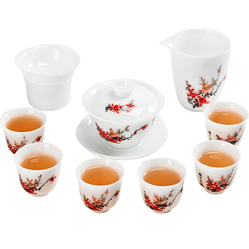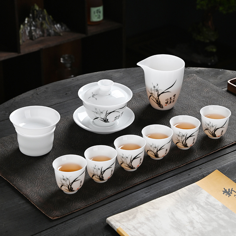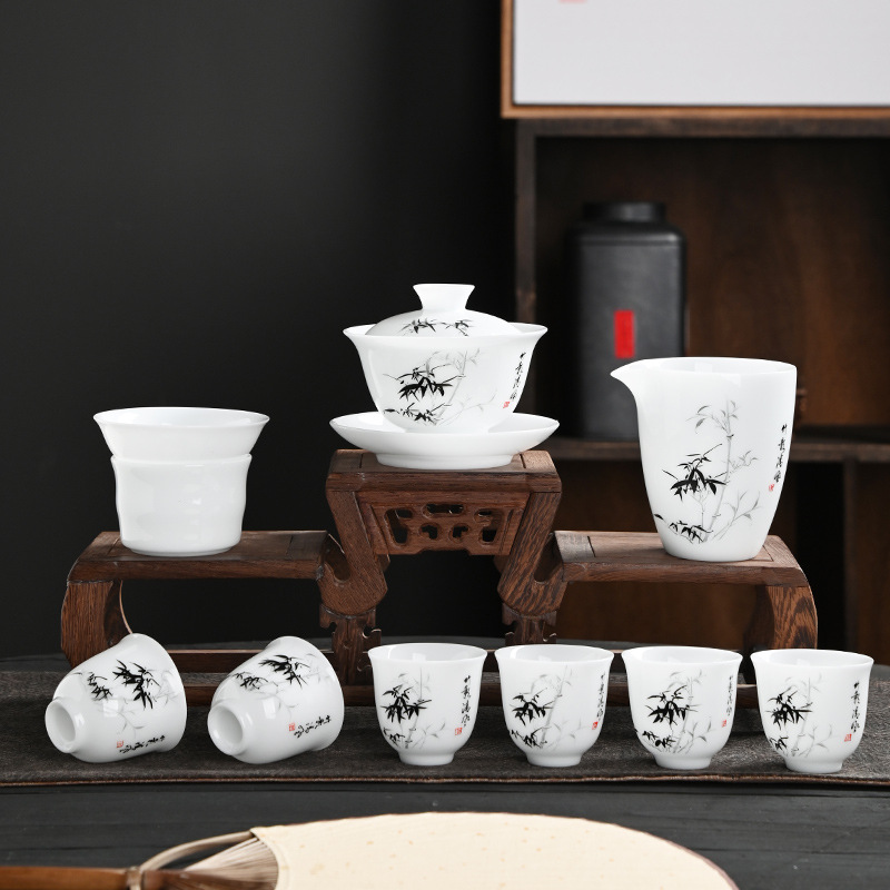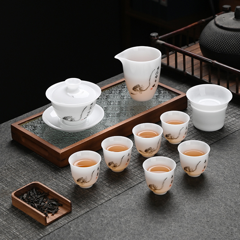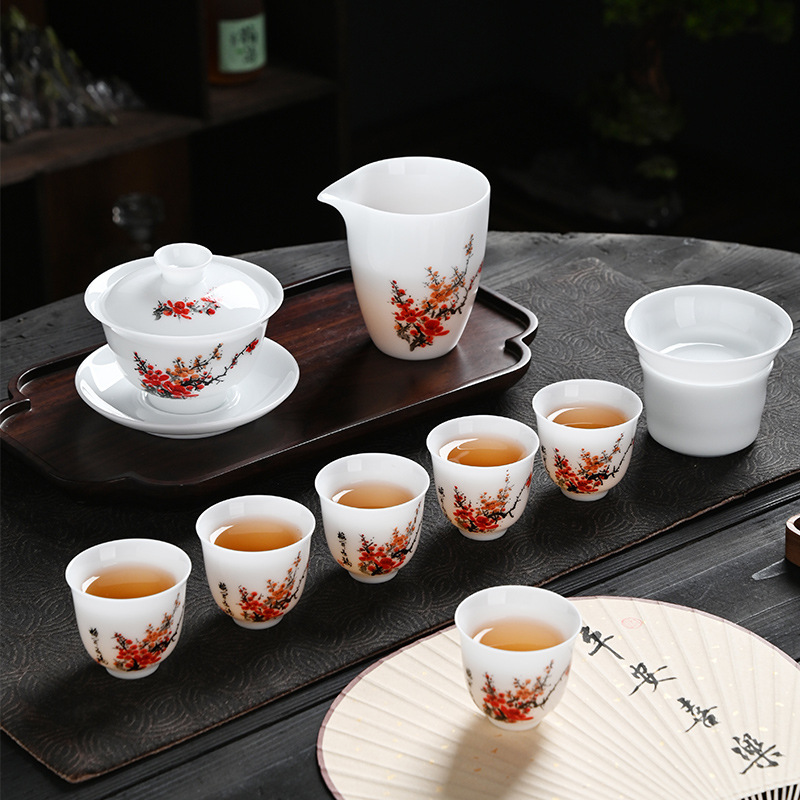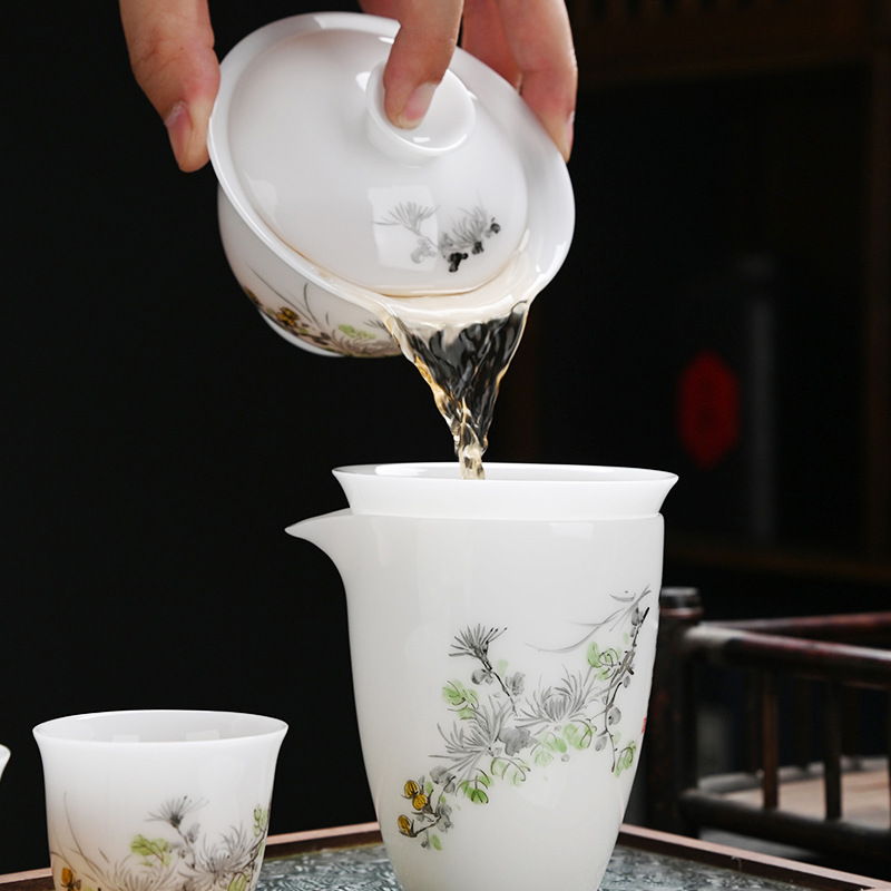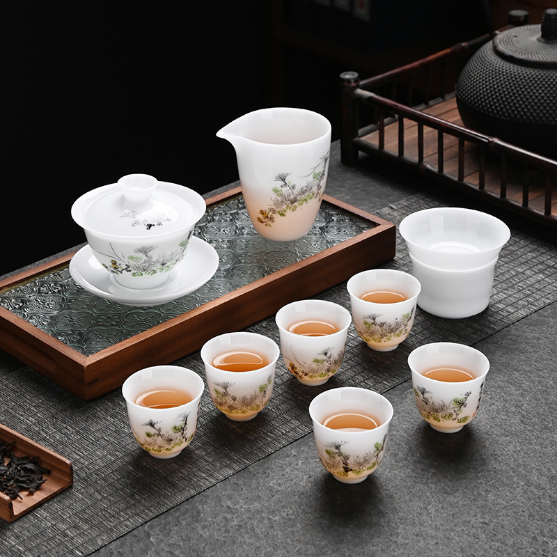 冰种茶具手绘羊脂玉功夫茶具套装泡茶盖碗茶杯办公室家用高档礼品