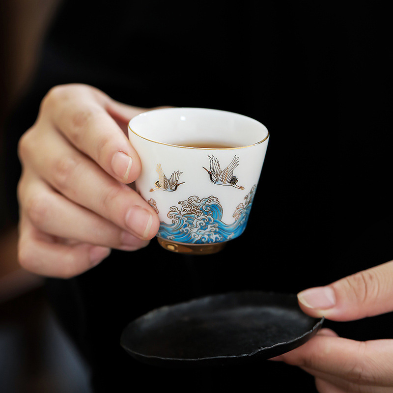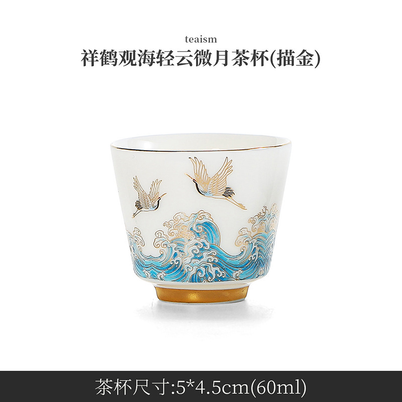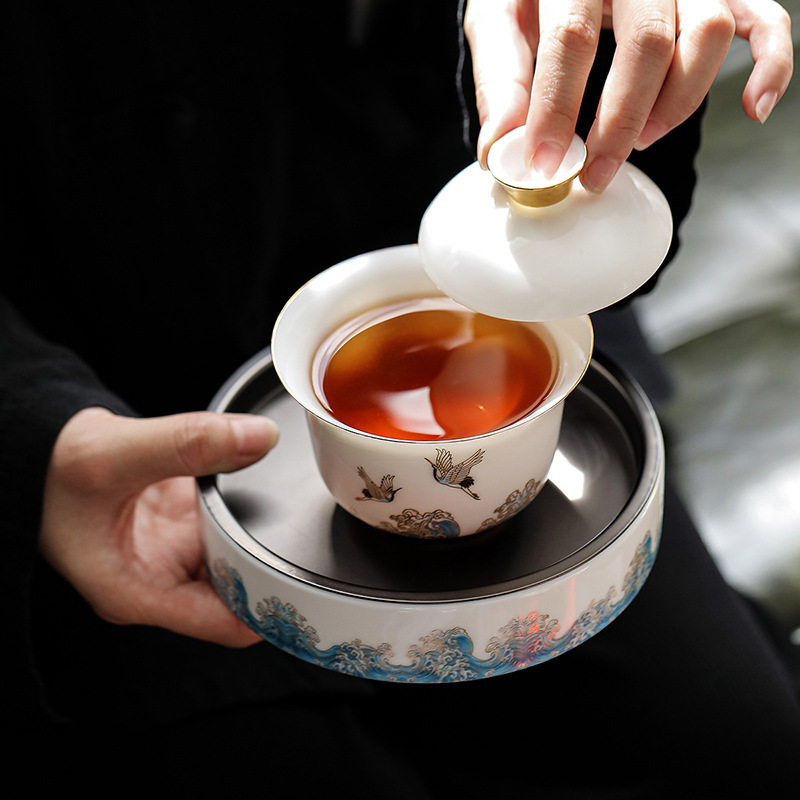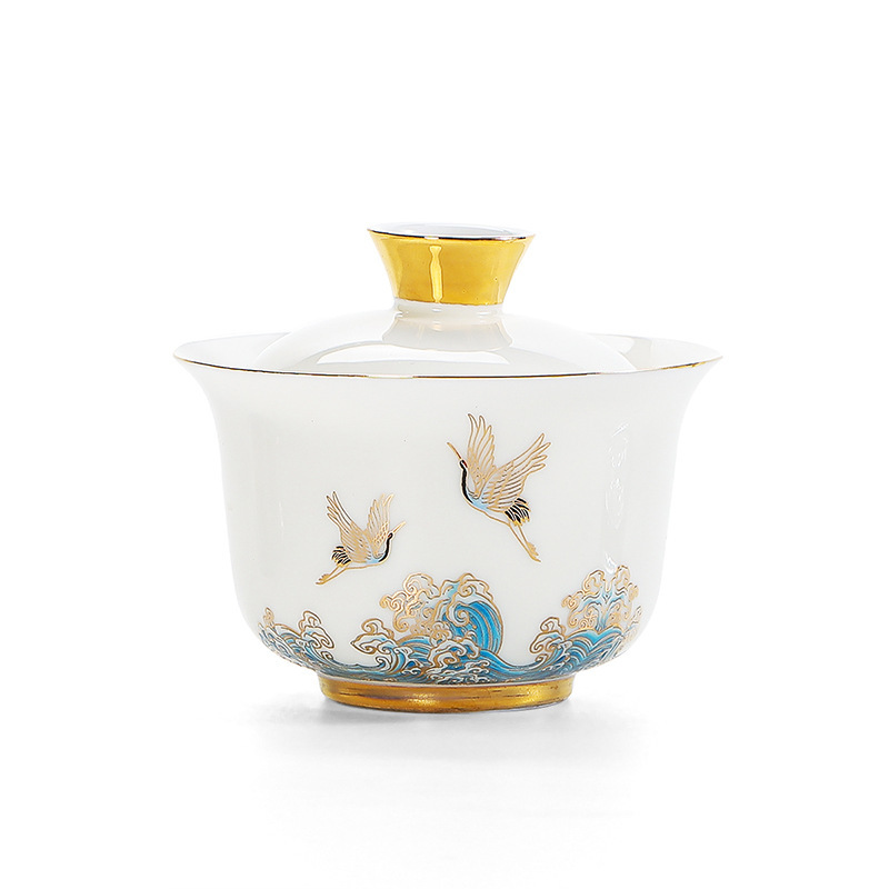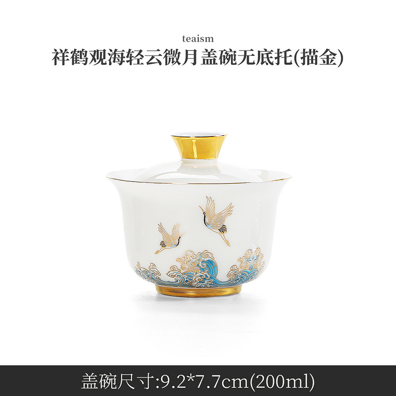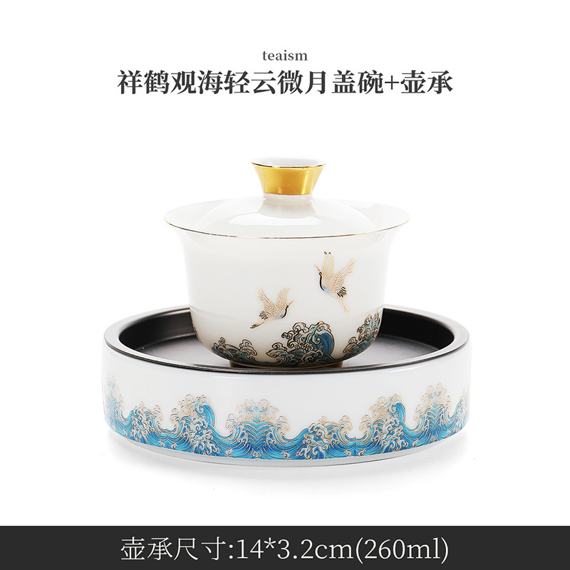 羊脂玉品茗杯陶瓷盖碗整套功夫茶具套装国潮风三才敬茶碗茶杯茶盏