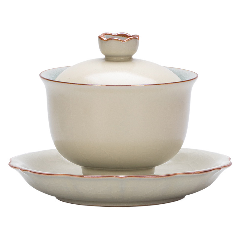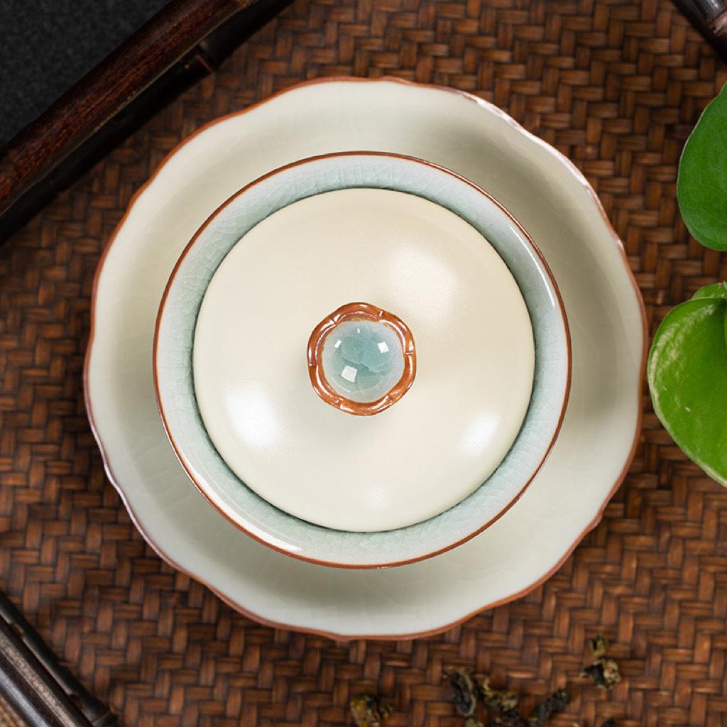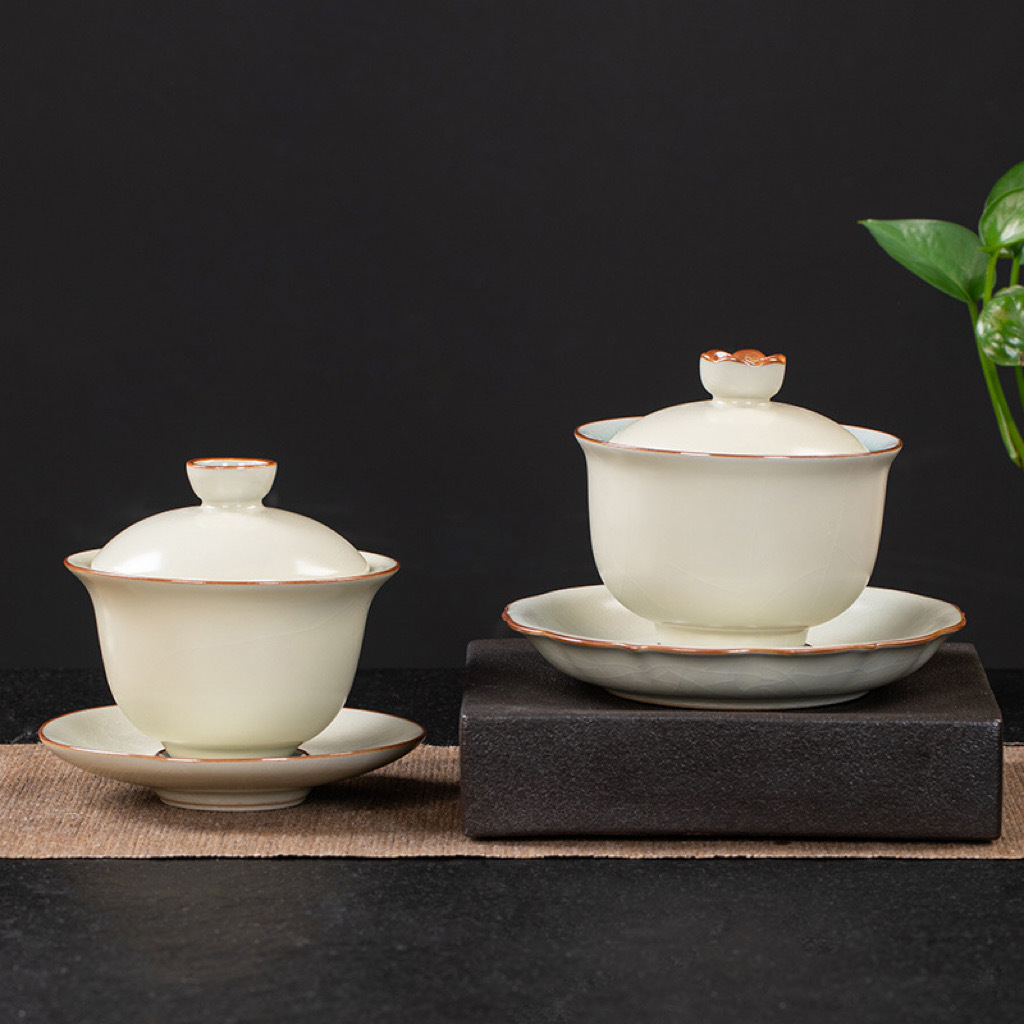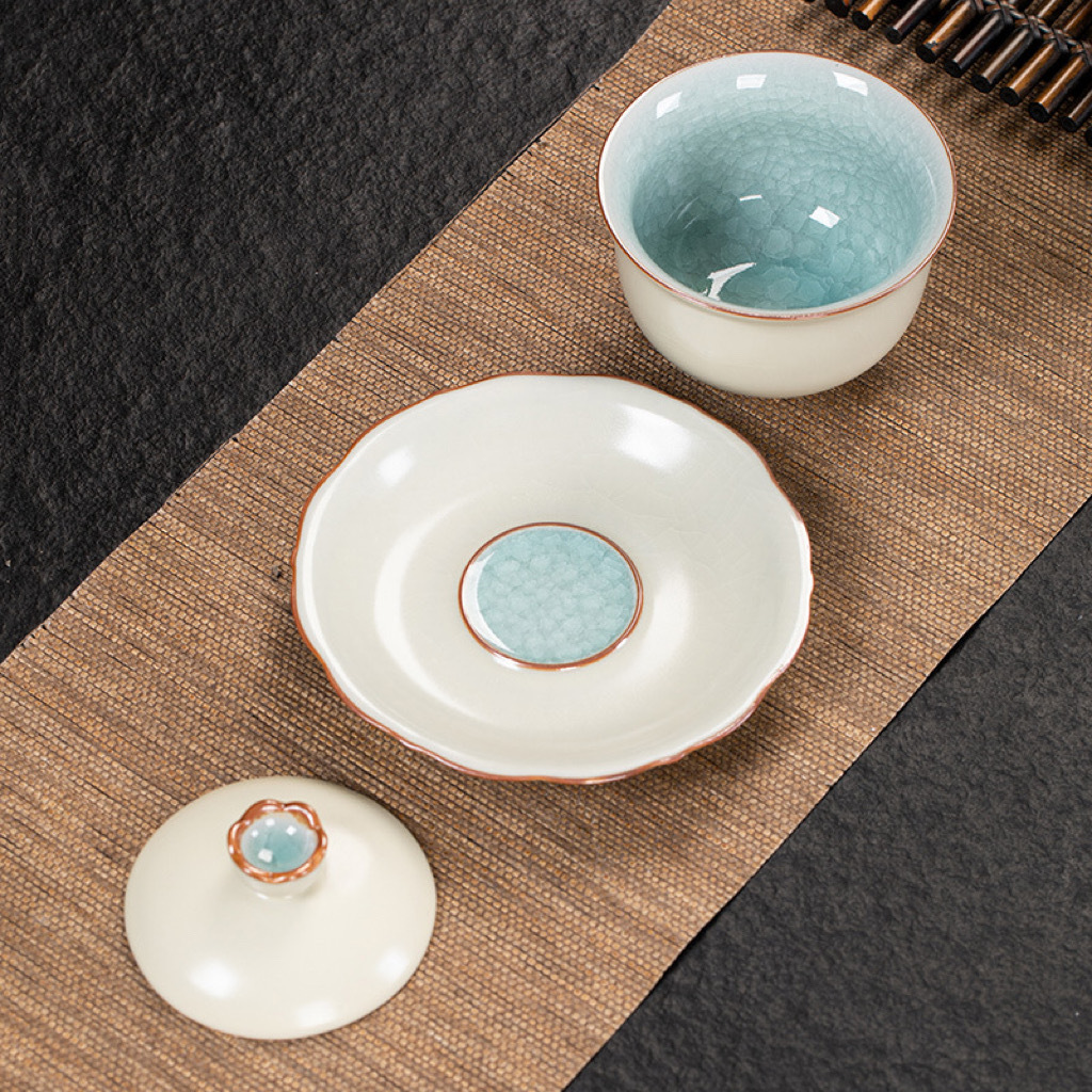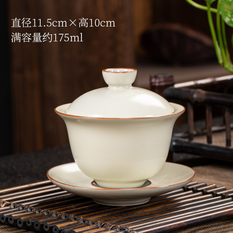 冰裂釉汝瓷三才盖碗陶瓷功夫茶具茶杯汝窑敬茶碗开片可养盖碗批发