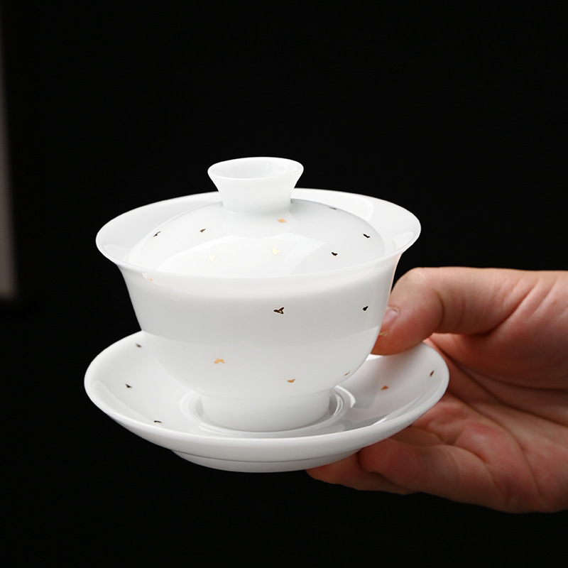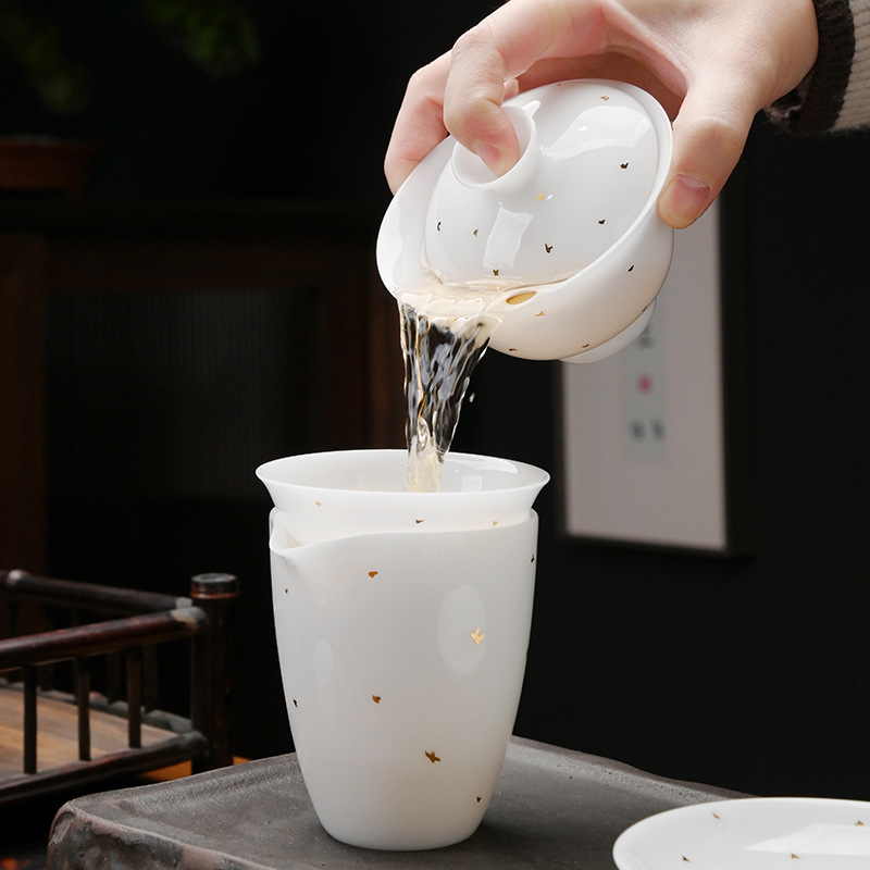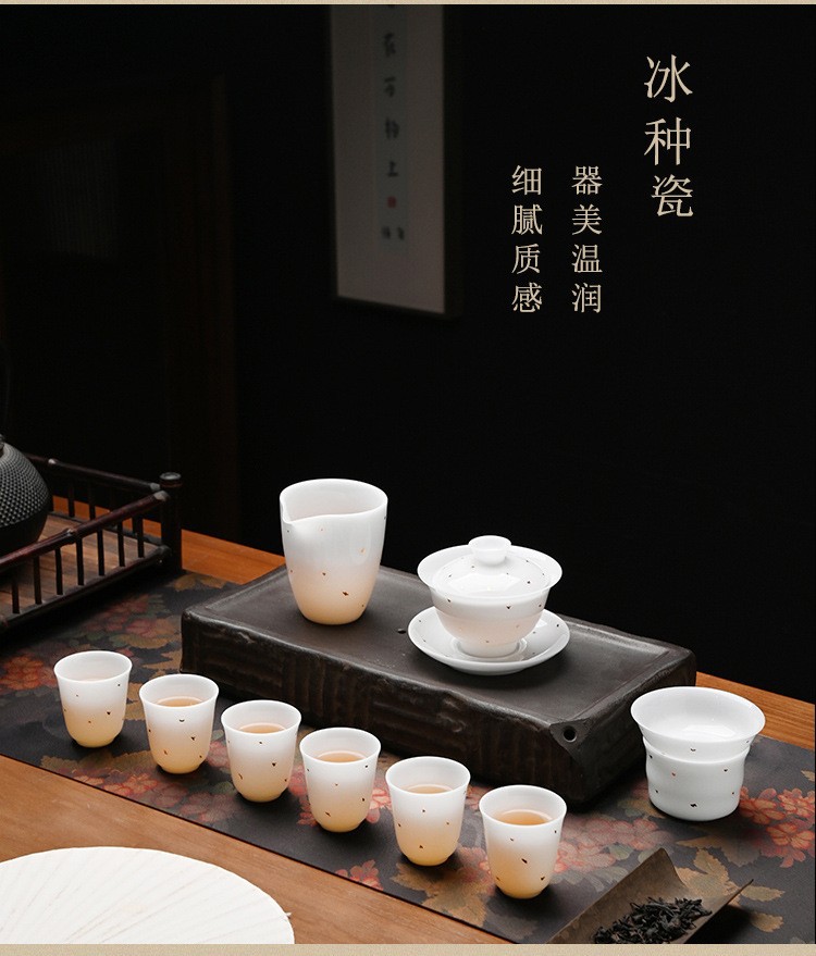 轻奢冰种玉瓷茶具套装家用泡茶杯子盖碗办公会客功夫茶具整套礼品