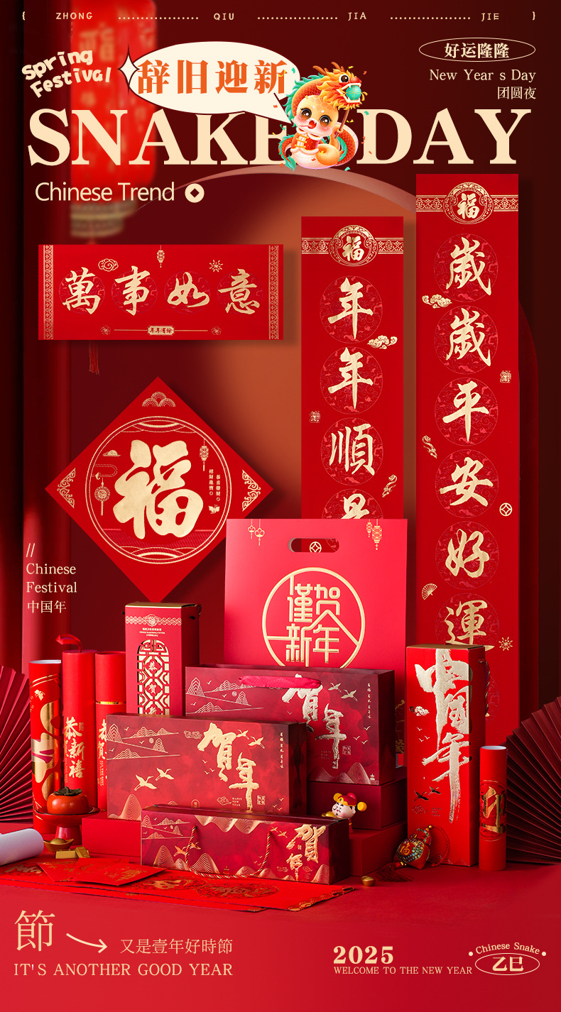 2025蛇年植绒对联定做广告印LOGO烫金防晒大礼盒龙纹绸布春联定制