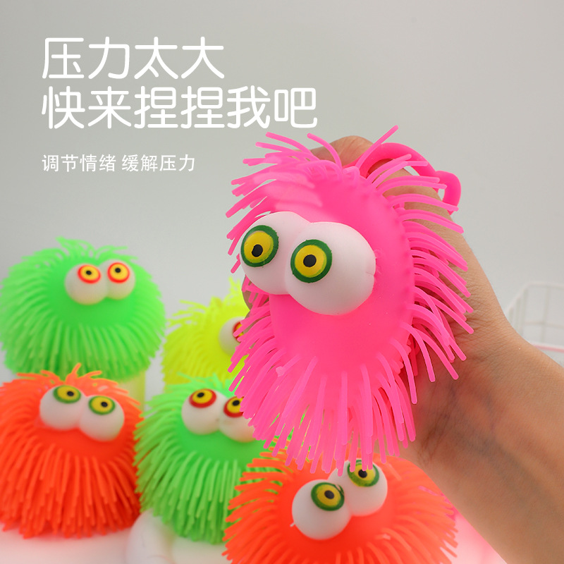 创意减压闪光海胆球解压神器凸眼毛毛球发泄球地摊货源玩具批发