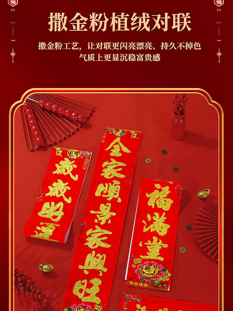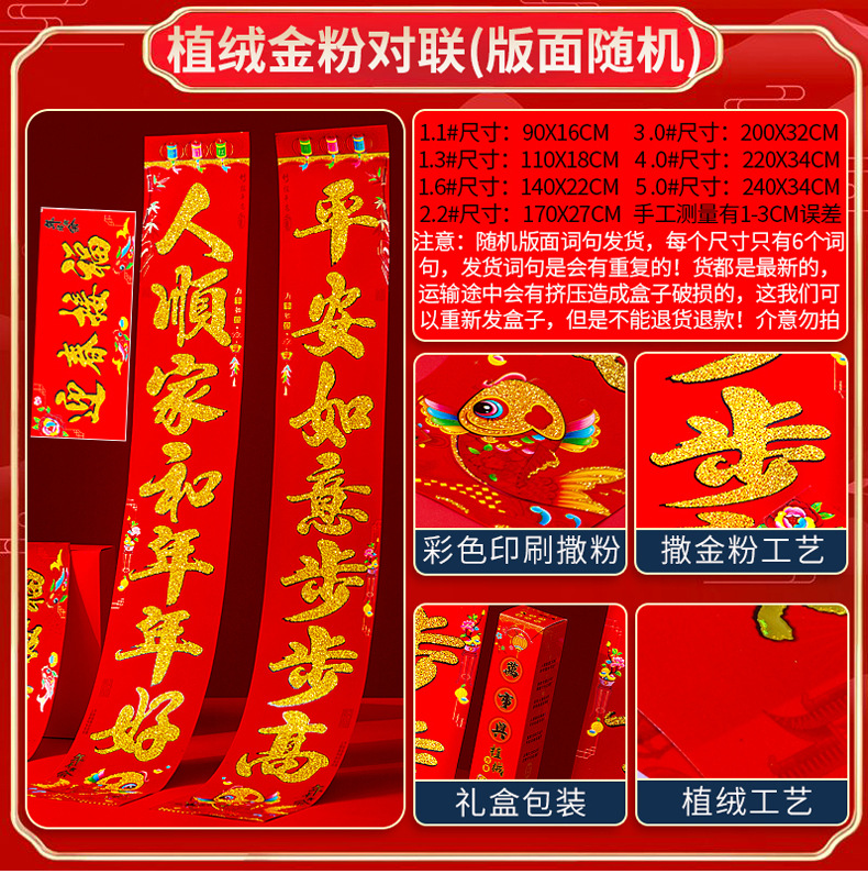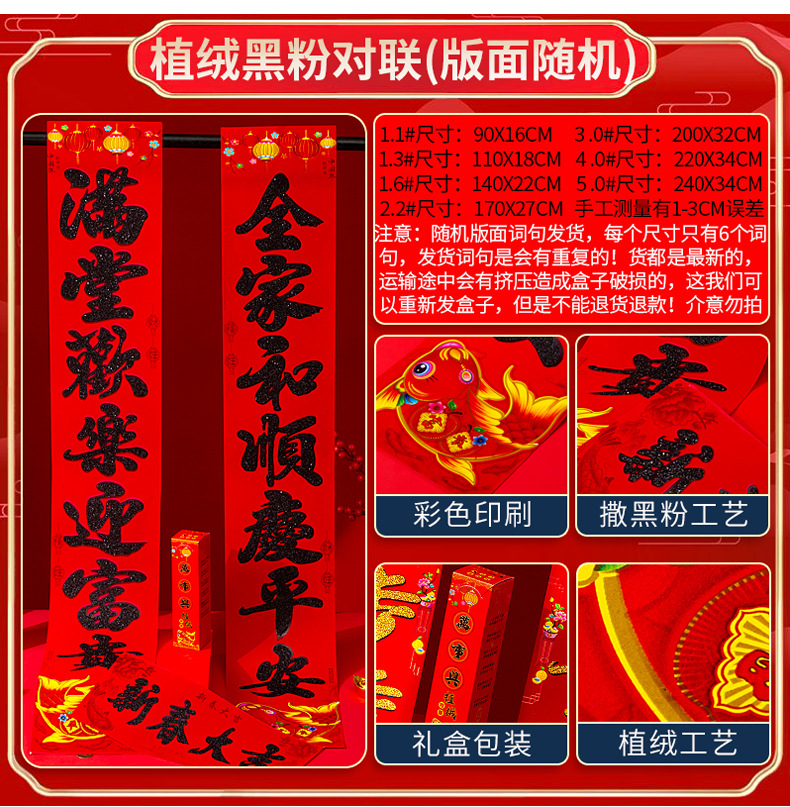 对联批发新年春节植绒对联批货蛇年地摊过年春联绒布款批发年货