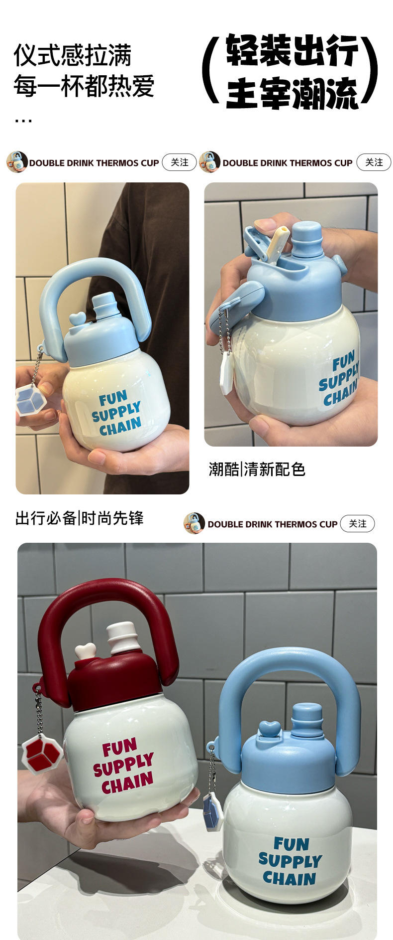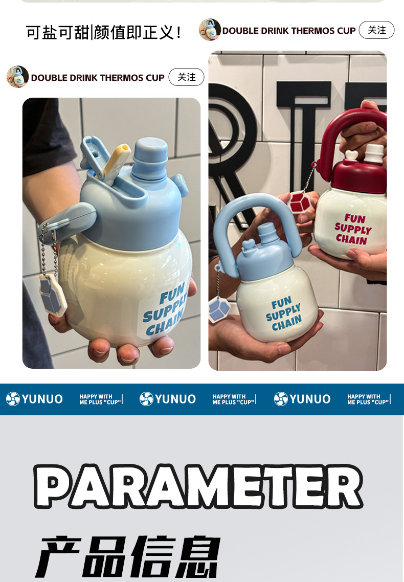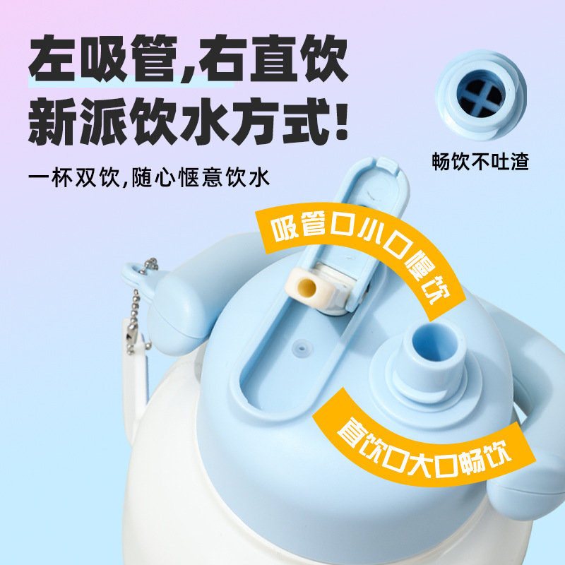 高颜值大肚杯女双饮水杯拎拎壶大容量耐高温便携水壶太空吸管水杯