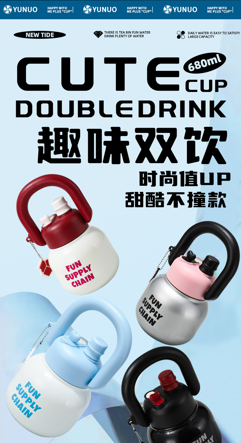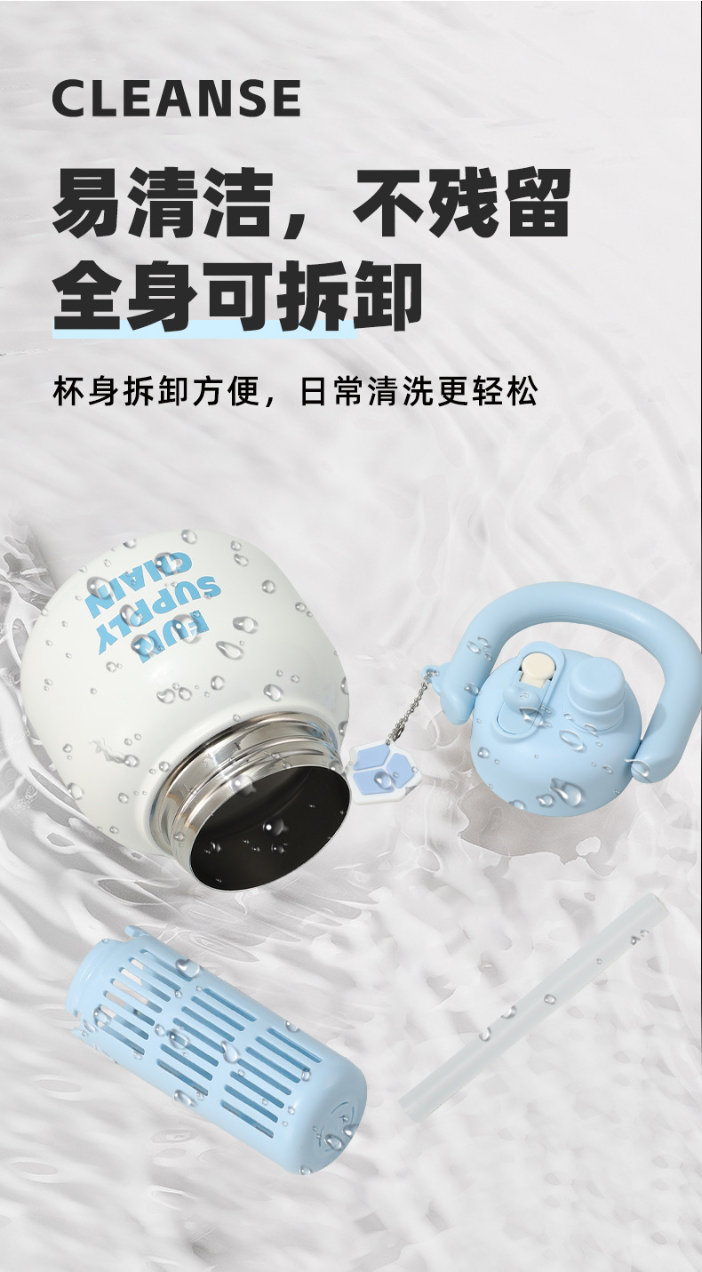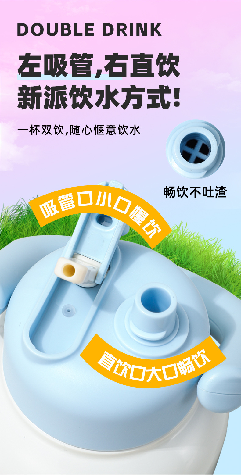 高颜值大肚杯女双饮水杯拎拎壶大容量耐高温便携水壶太空吸管水杯