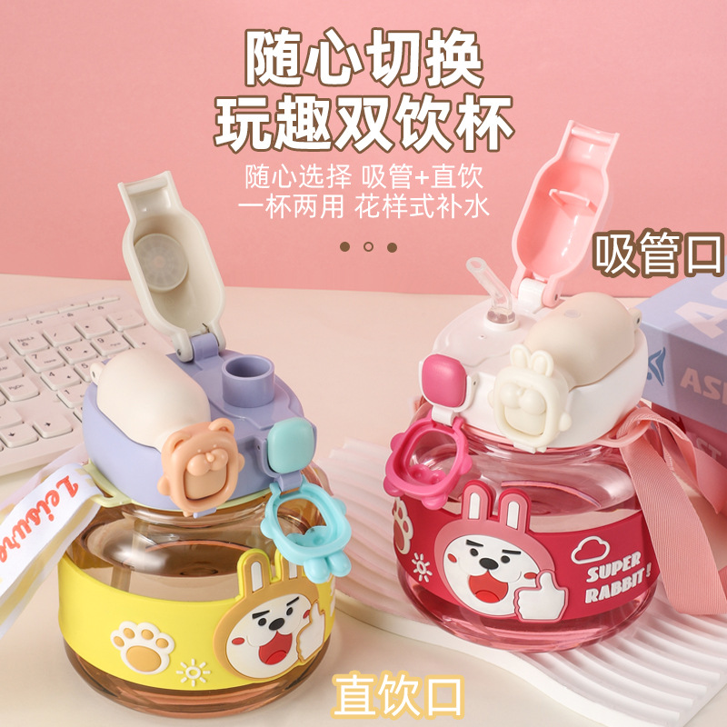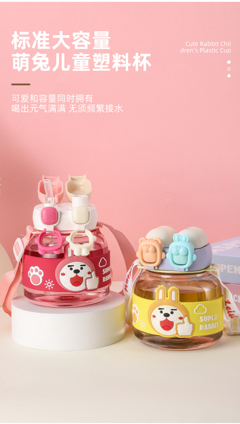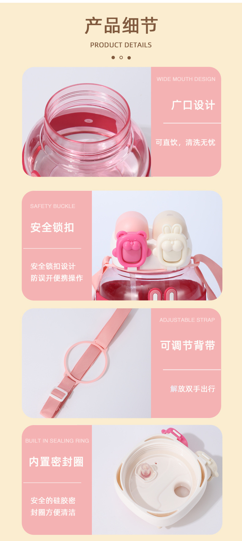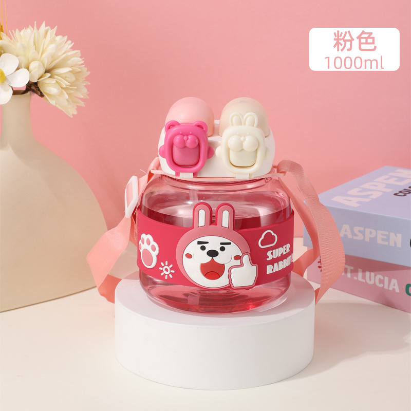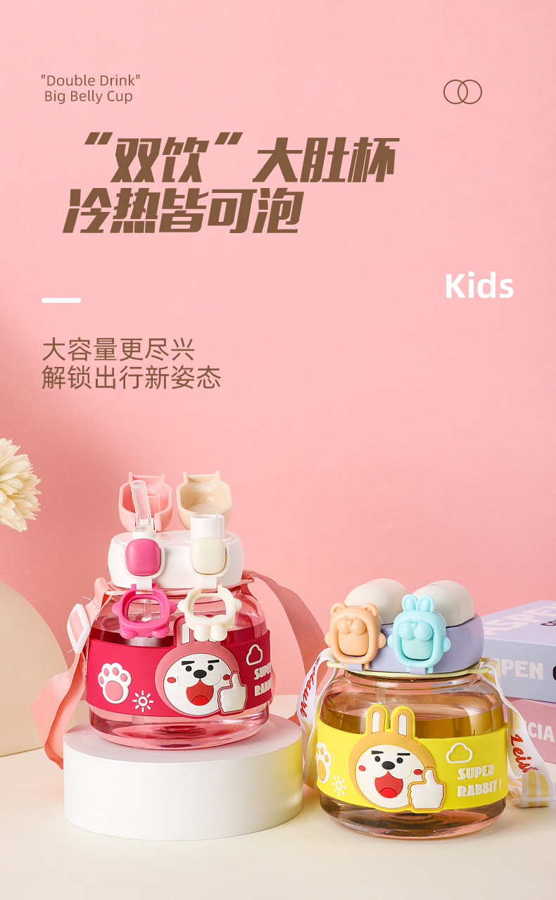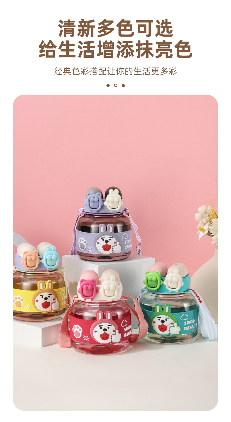网红高颜值大肚杯大容量防摔塑料水壶卡通便携吸管水杯花茶杯批发