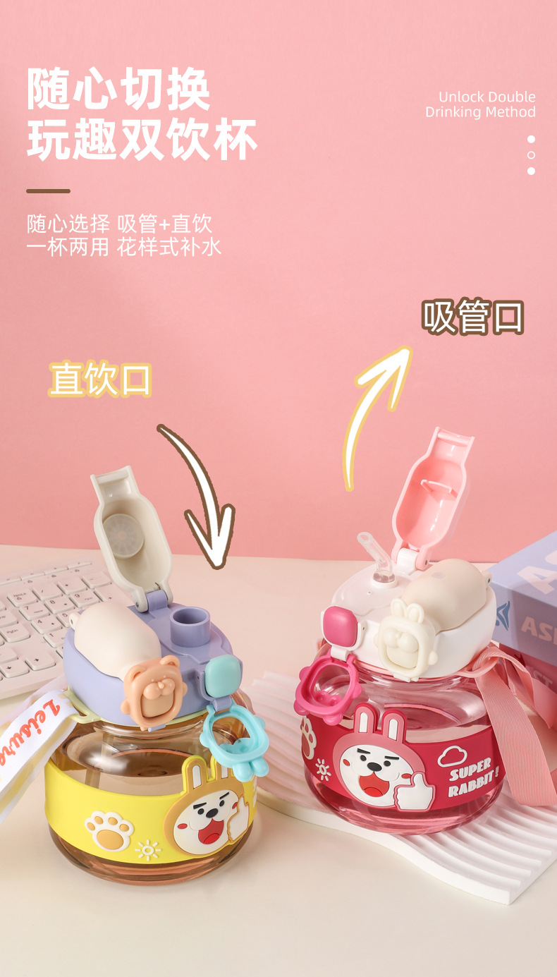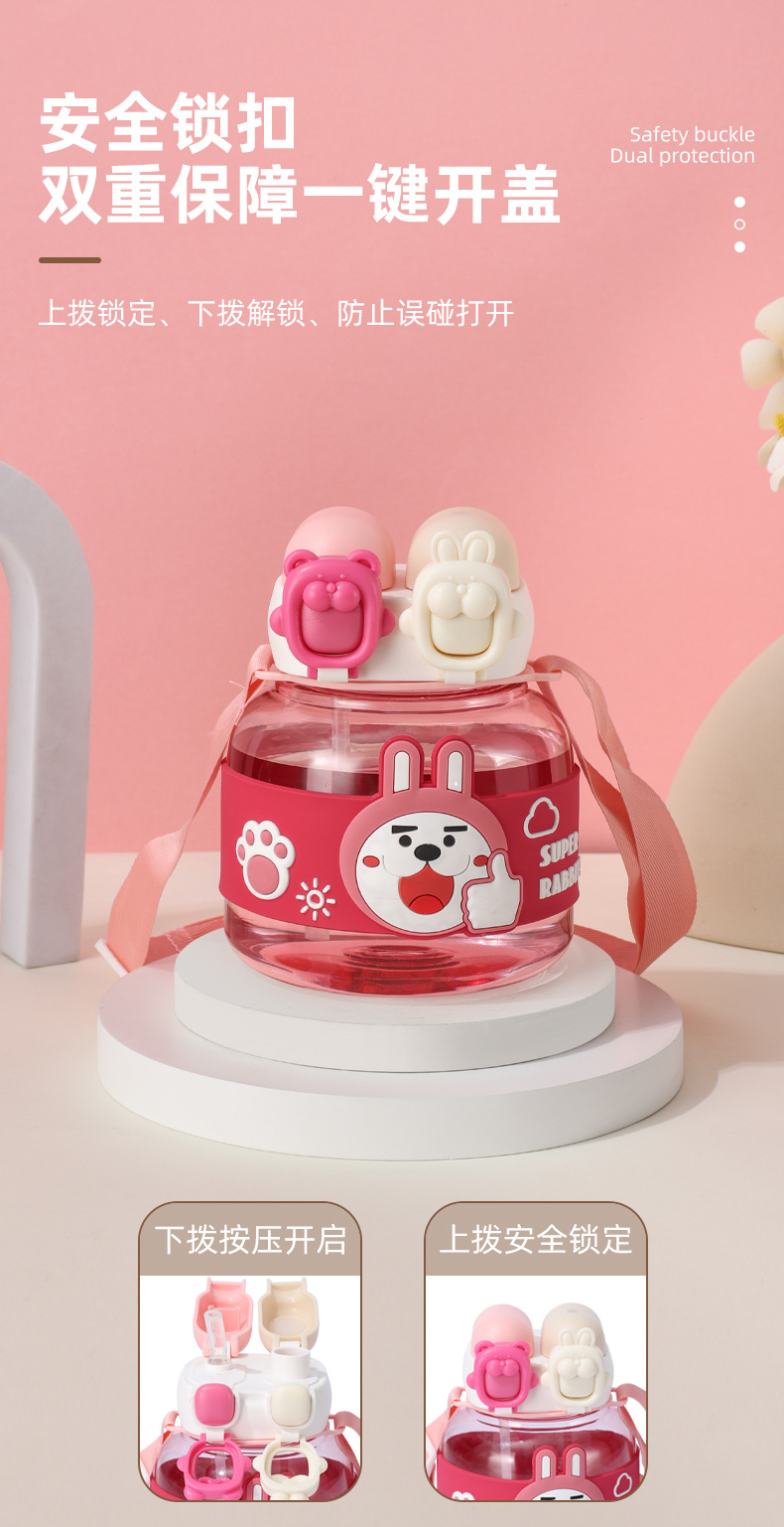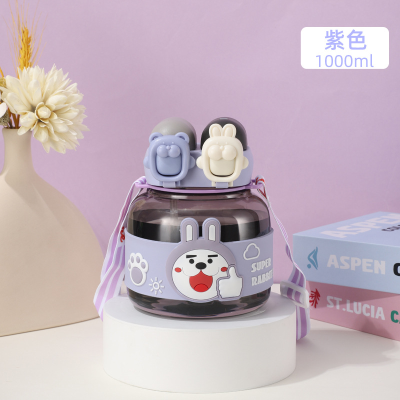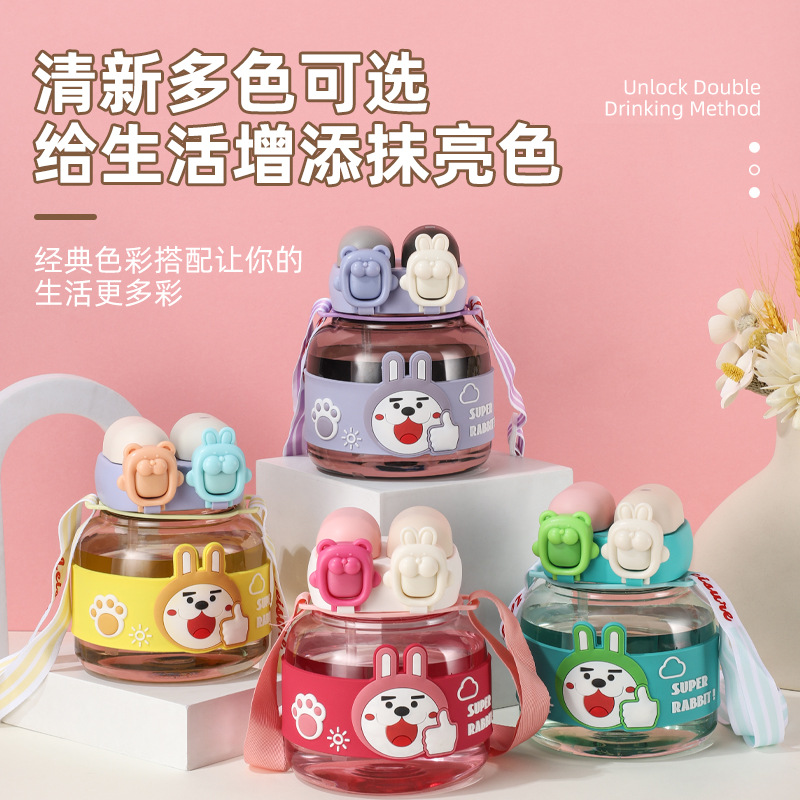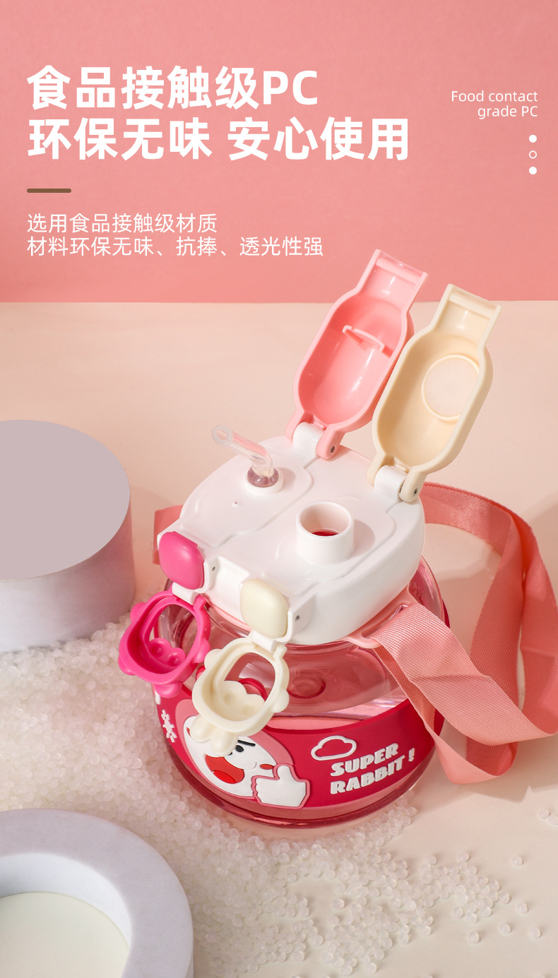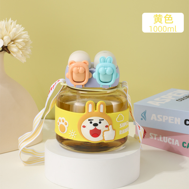 网红高颜值大肚杯大容量防摔塑料水壶卡通便携吸管水杯花茶杯批发