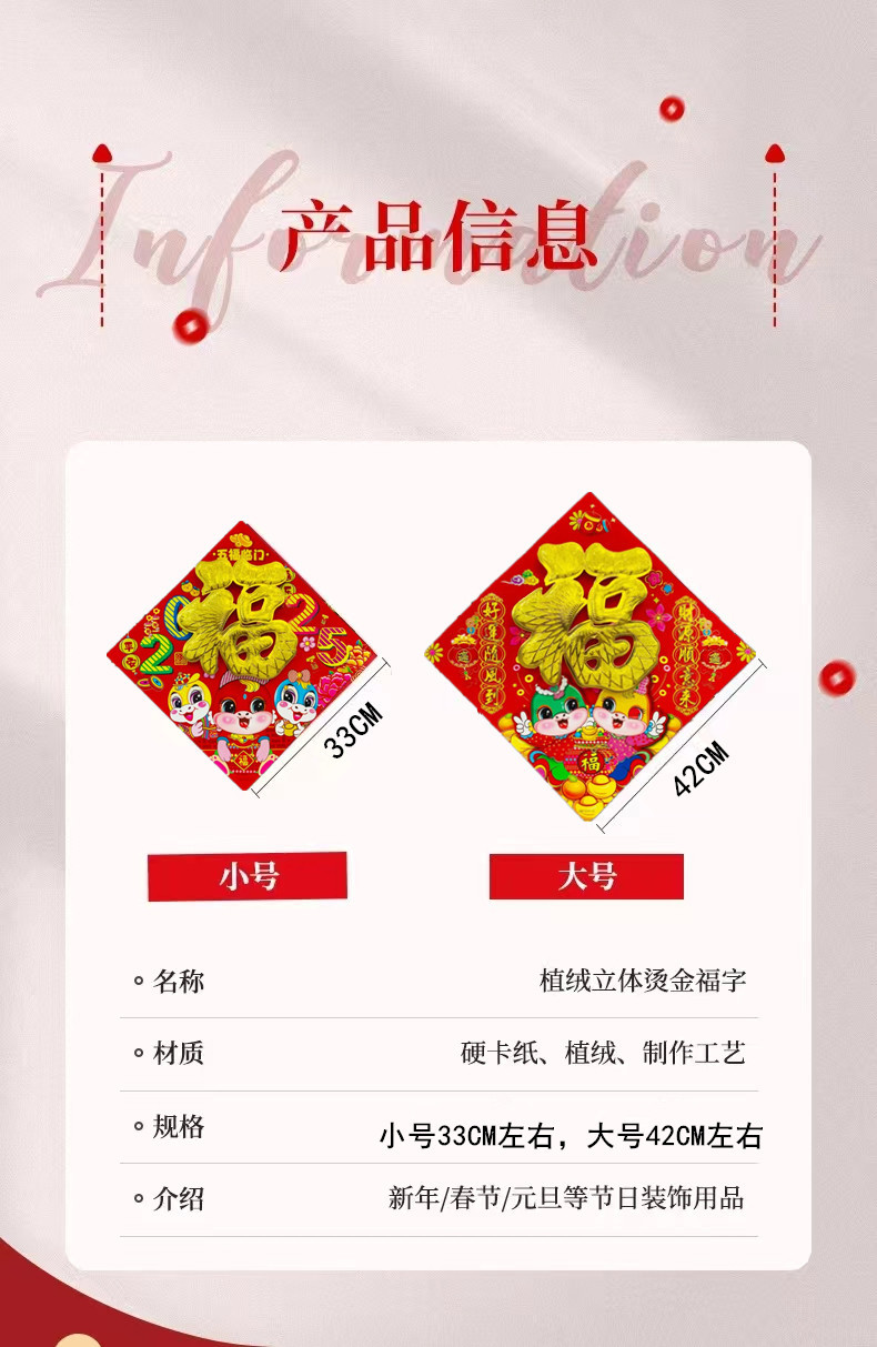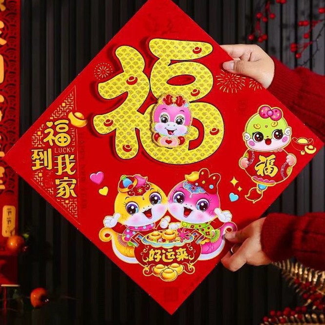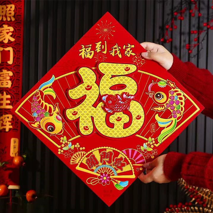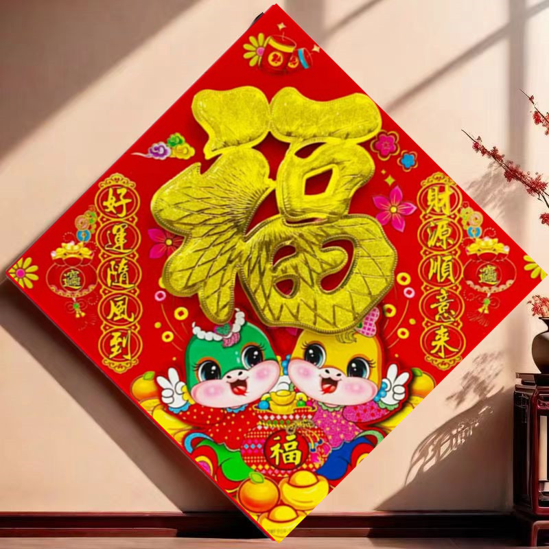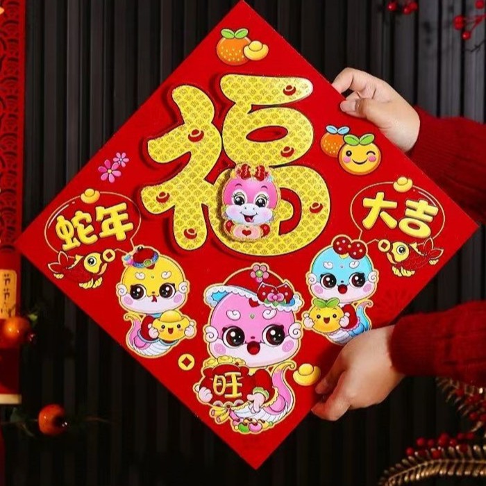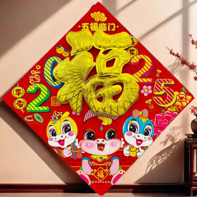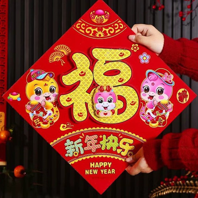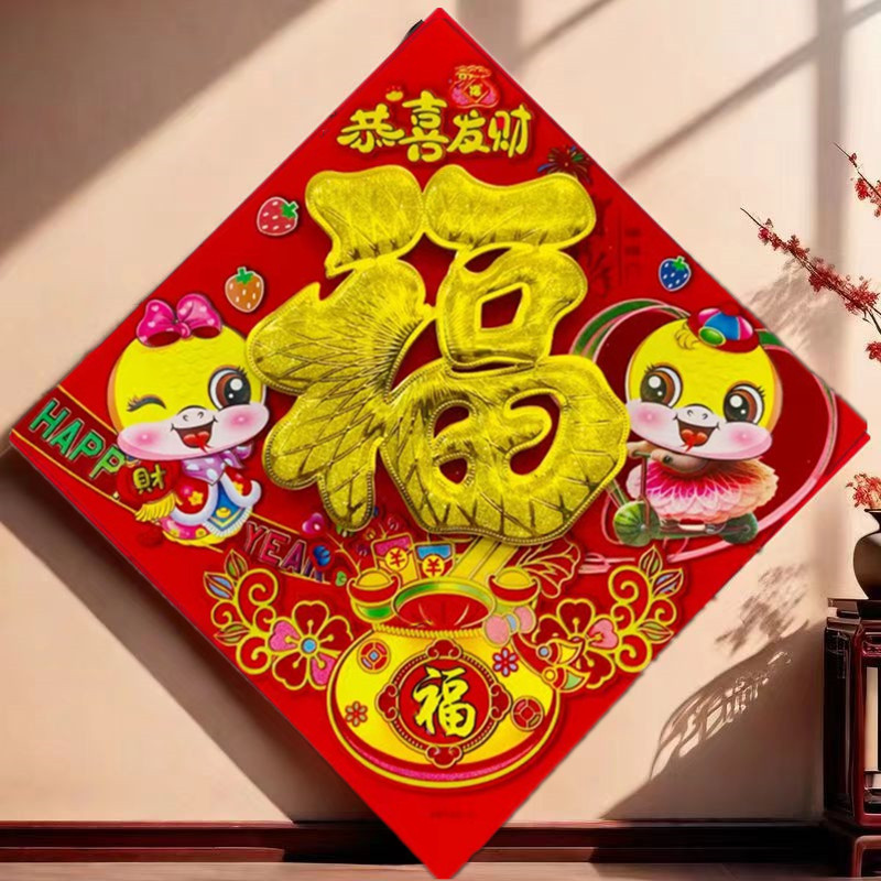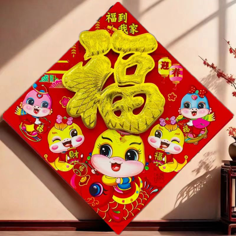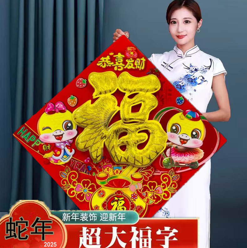 立体福字蛇年新款高档植绒金粉立体福字门贴春节生肖福字贴年画