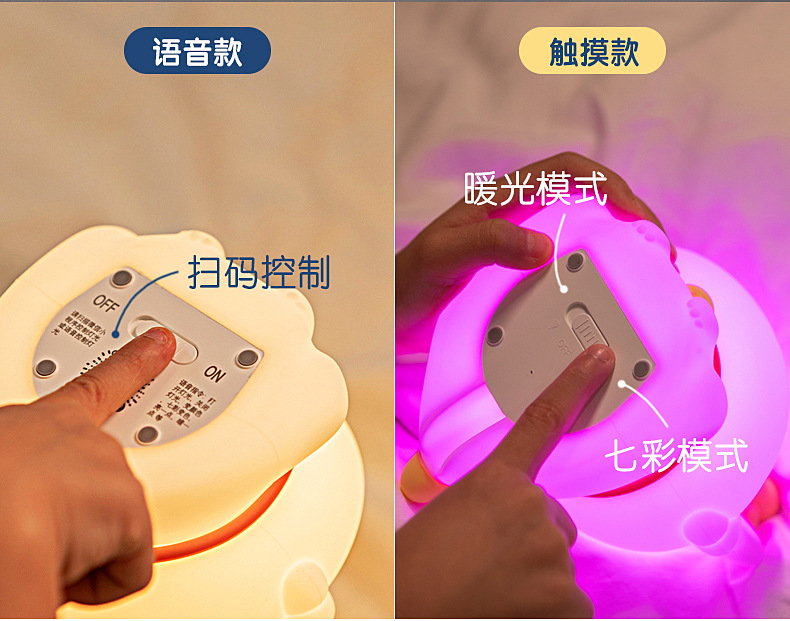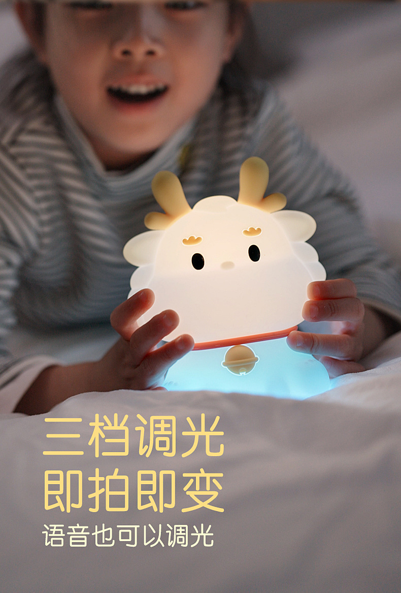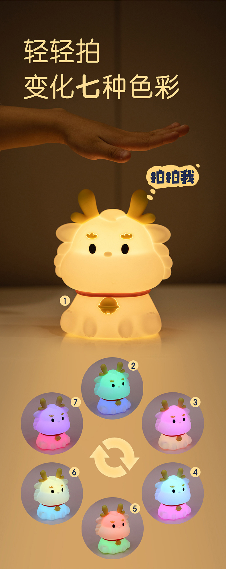 龙宝宝拍拍智能语音灯小龙伴睡硅胶拍拍创意夜灯礼品七彩氛围灯