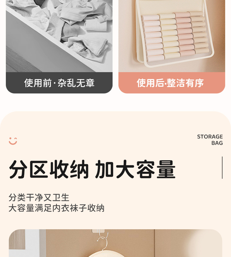 袜子收纳挂袋衣柜宿舍收纳网兜内衣收纳墙挂式整理置物袋收纳袋