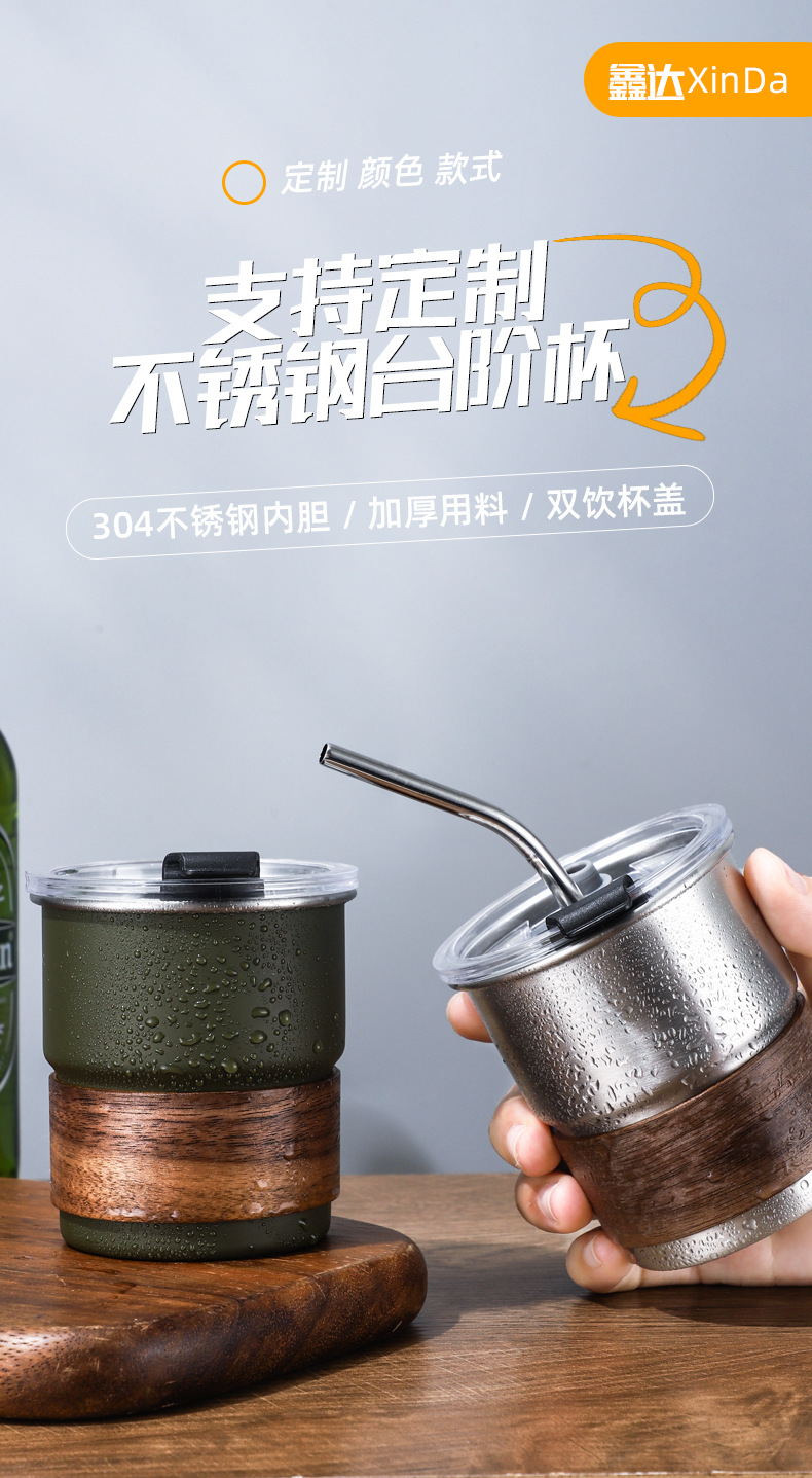 304不锈钢咖啡杯带盖户外露营杯餐厅啤酒杯加厚带杯套防烫台阶杯
