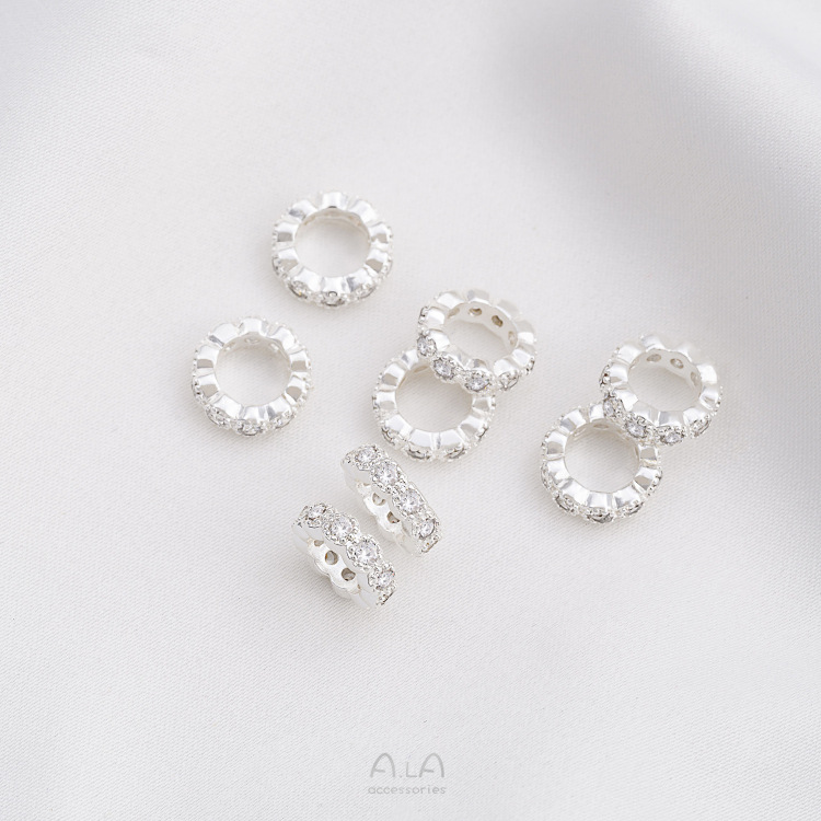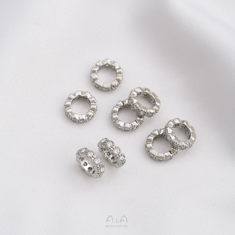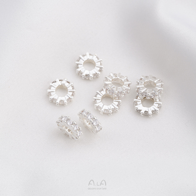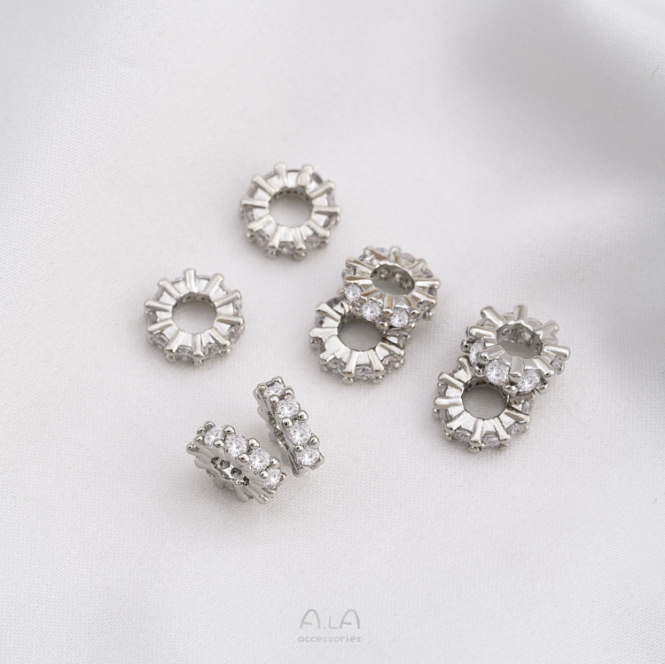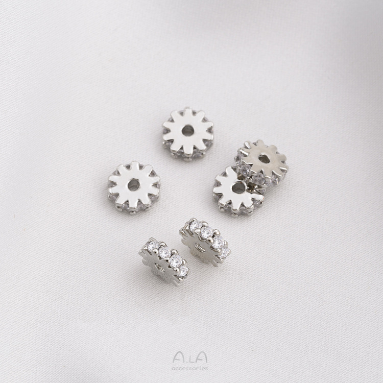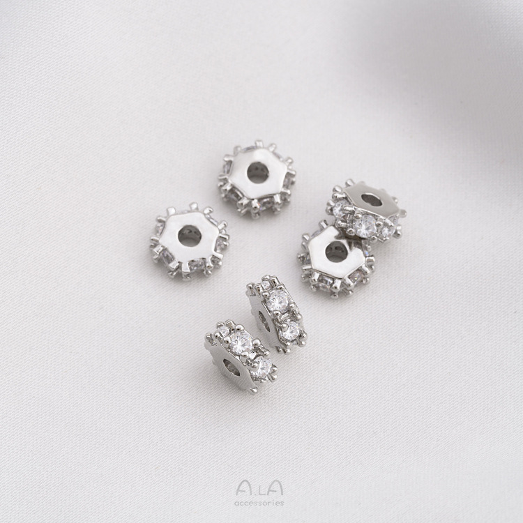 包厚银强保色锆石隔片白金色镶锆雪花隔珠片diy串珠垫片饰品配件