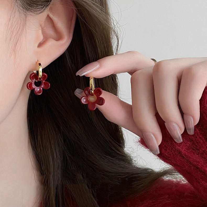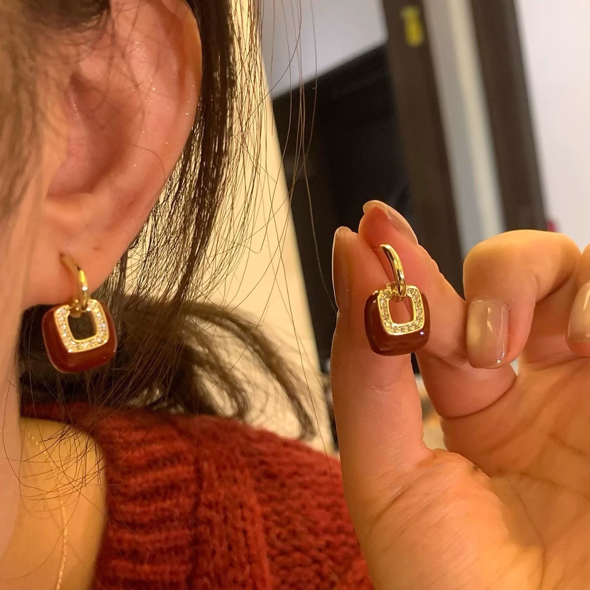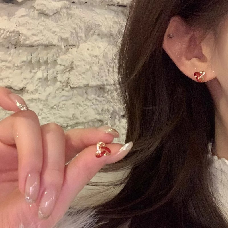 安可拉红耳饰925银针女2024新款爆款轻奢高级感秋冬复古红色耳环