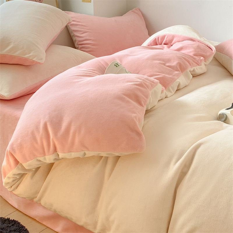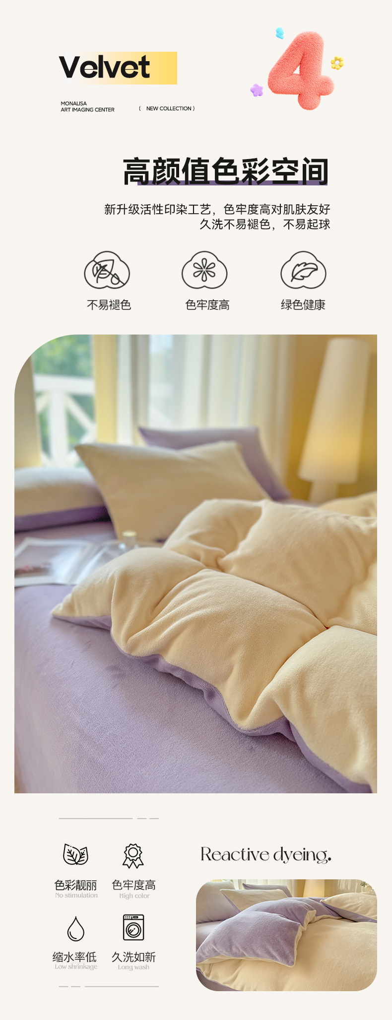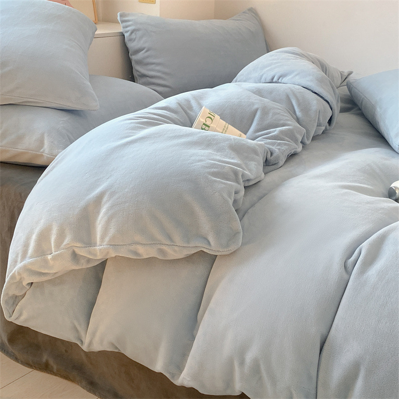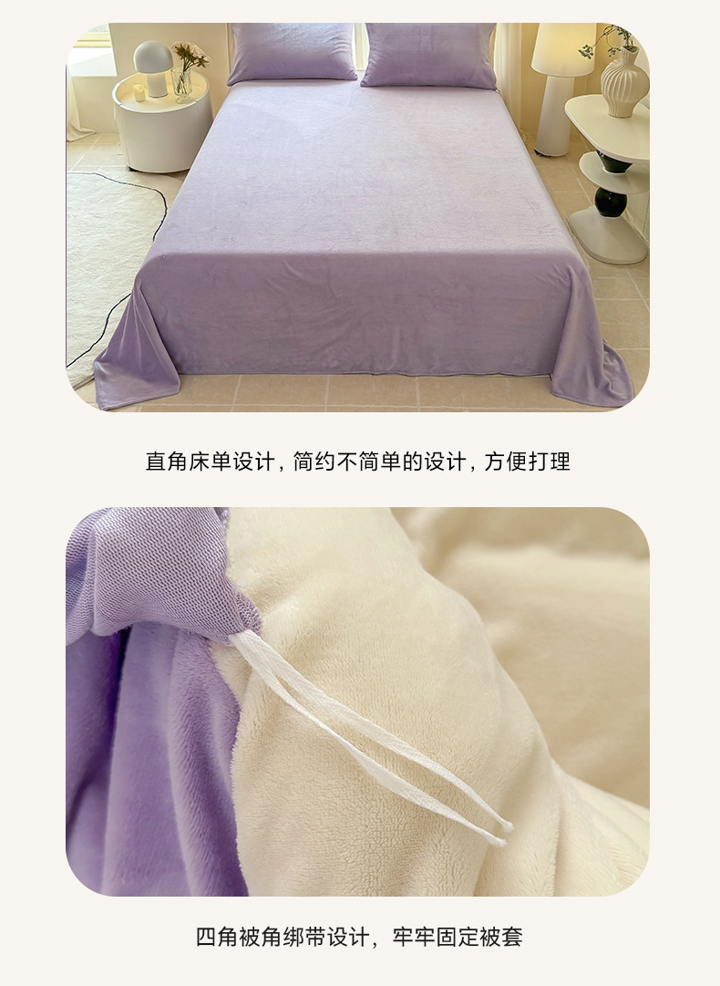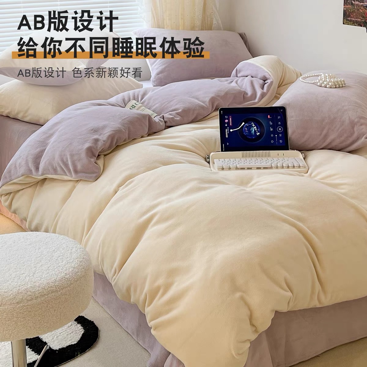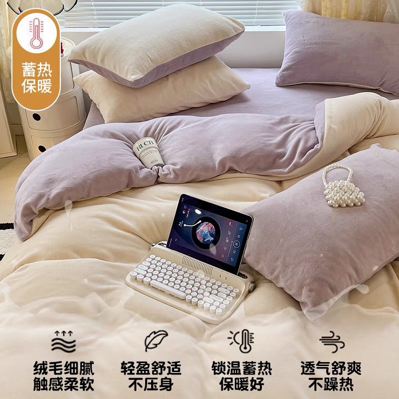 A类床上用品冬季加厚牛奶绒四件套加绒被套珊瑚法兰绒床单三件套4