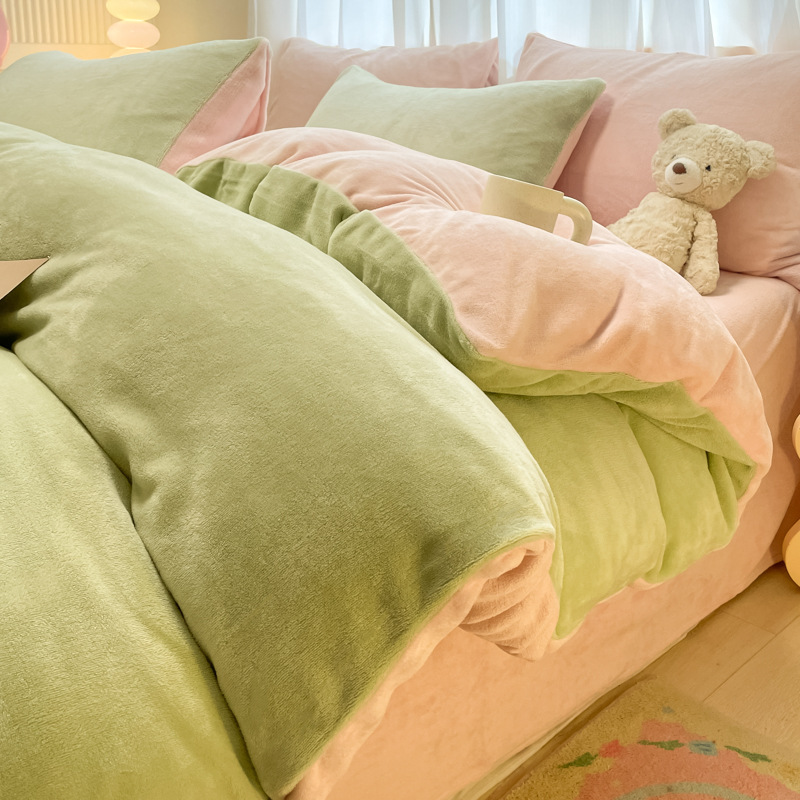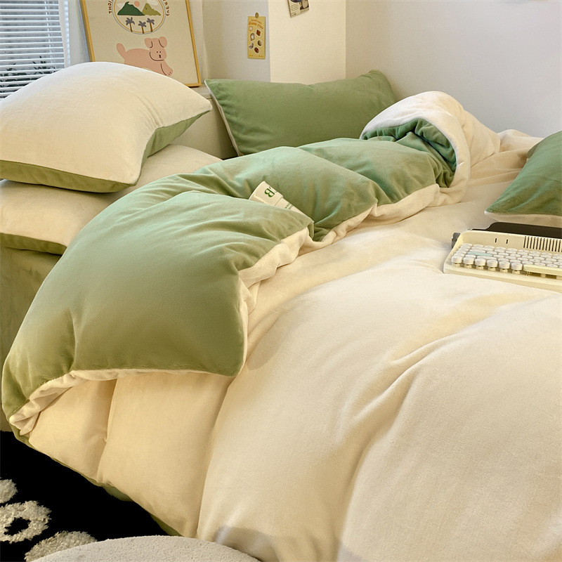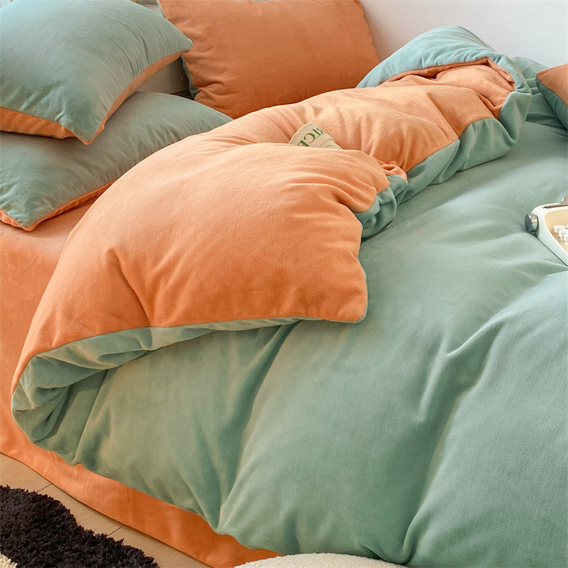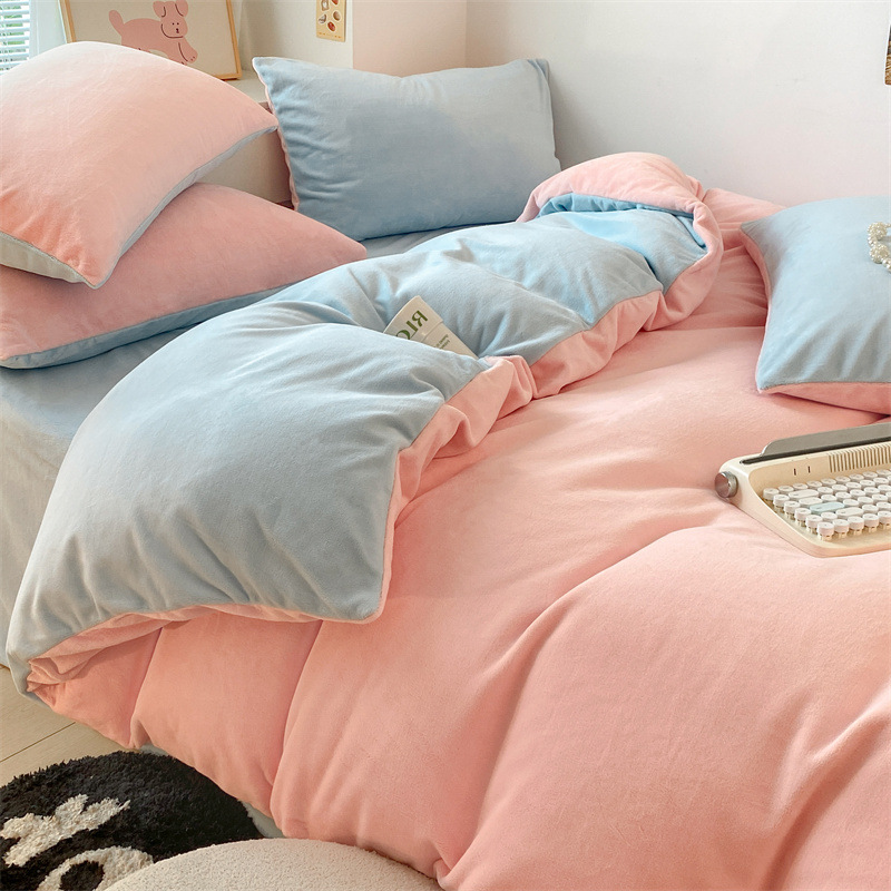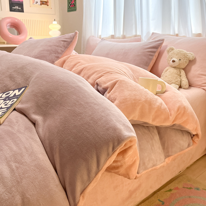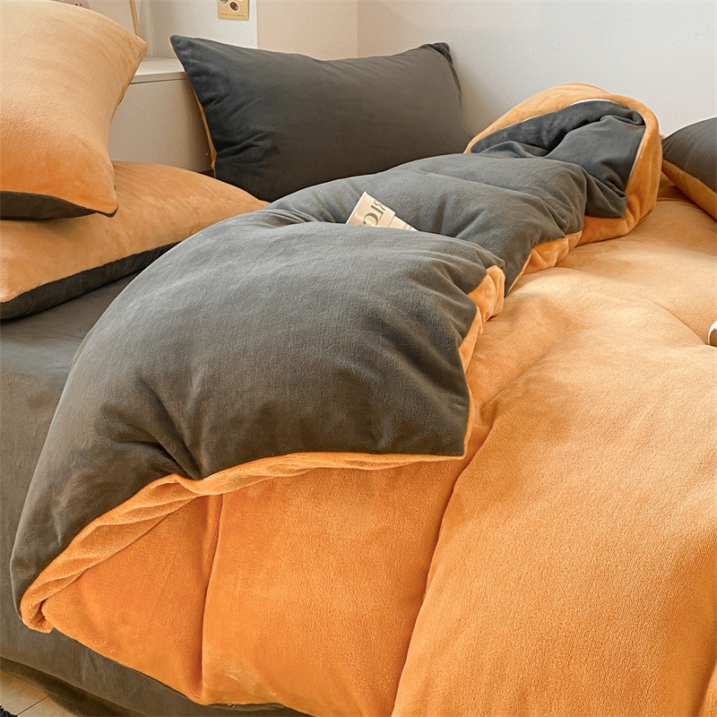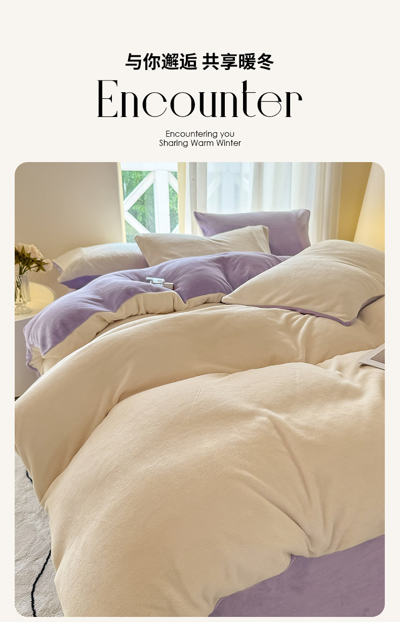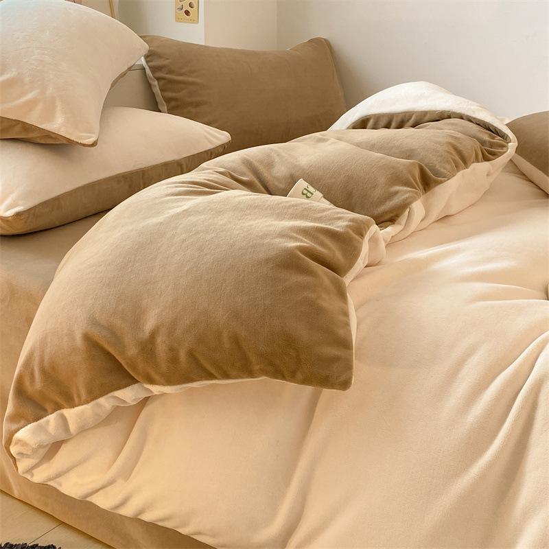 A类床上用品冬季加厚牛奶绒四件套加绒被套珊瑚法兰绒床单三件套4