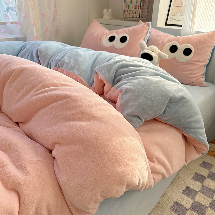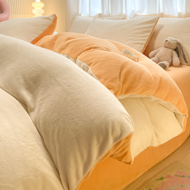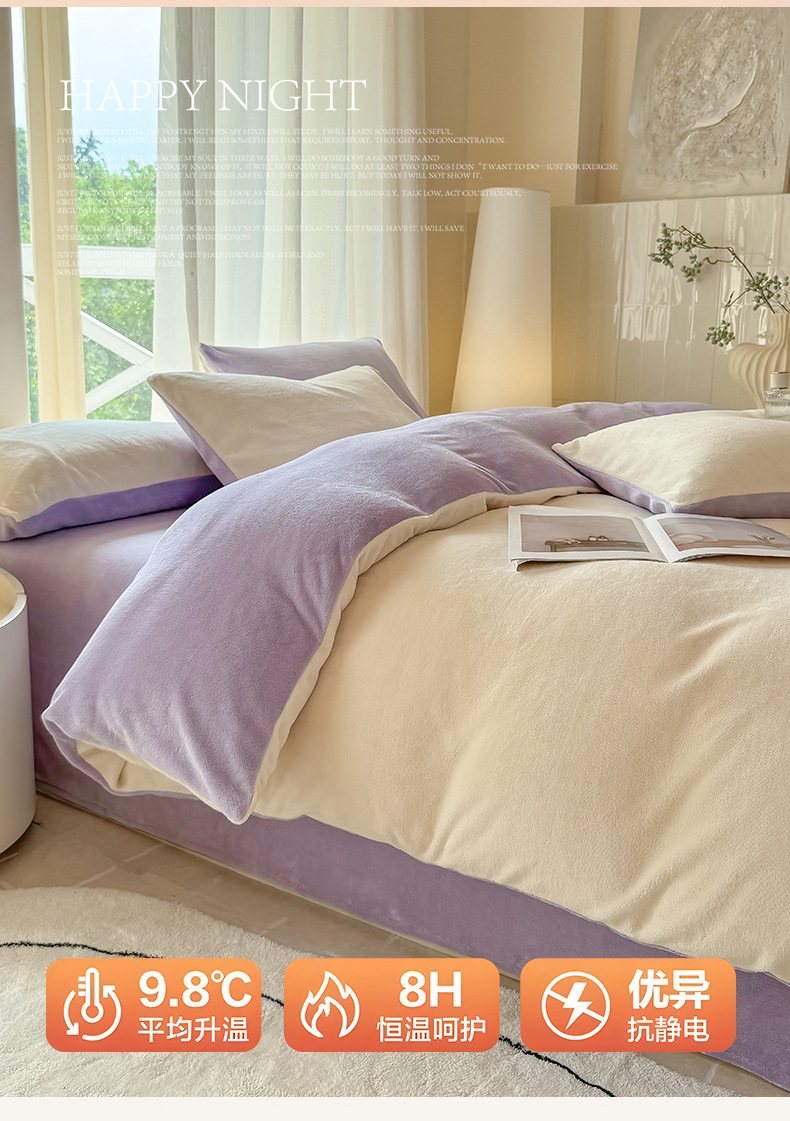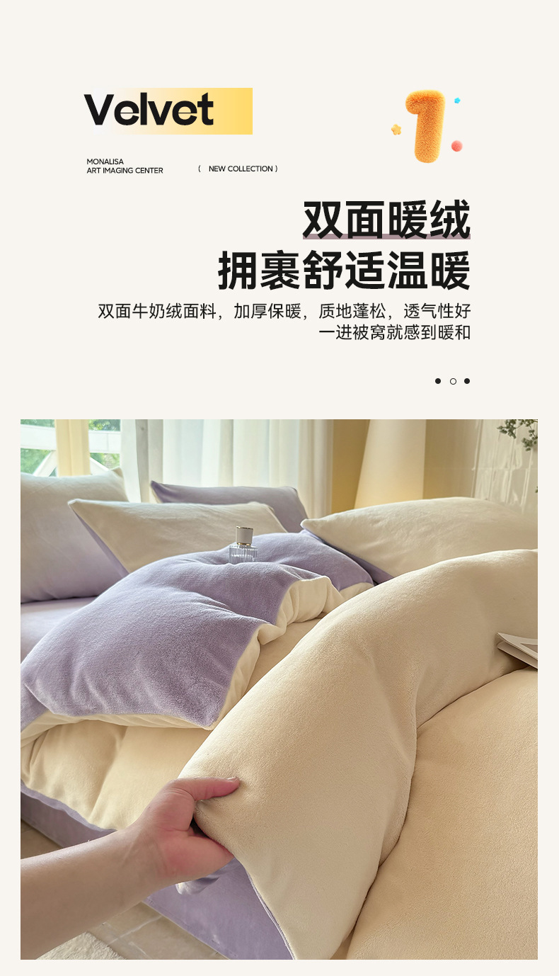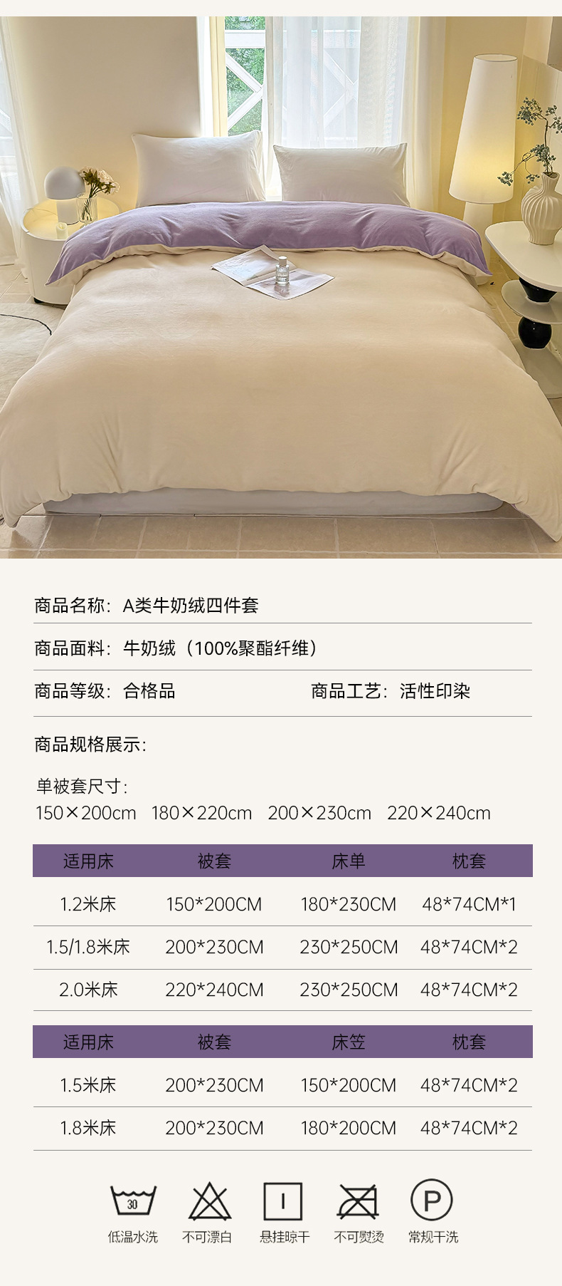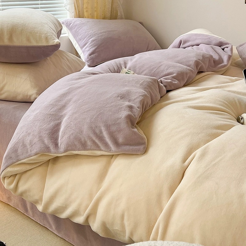 A类床上用品冬季加厚牛奶绒四件套加绒被套珊瑚法兰绒床单三件套4