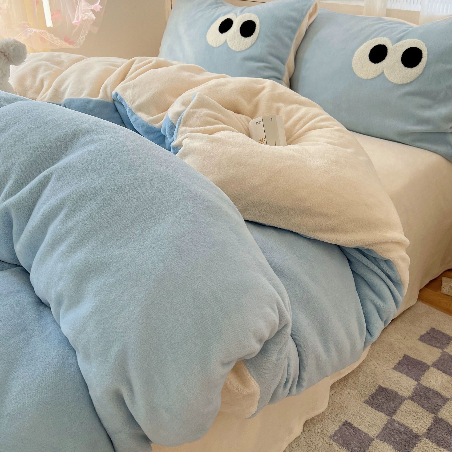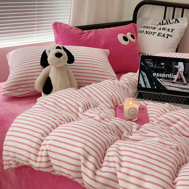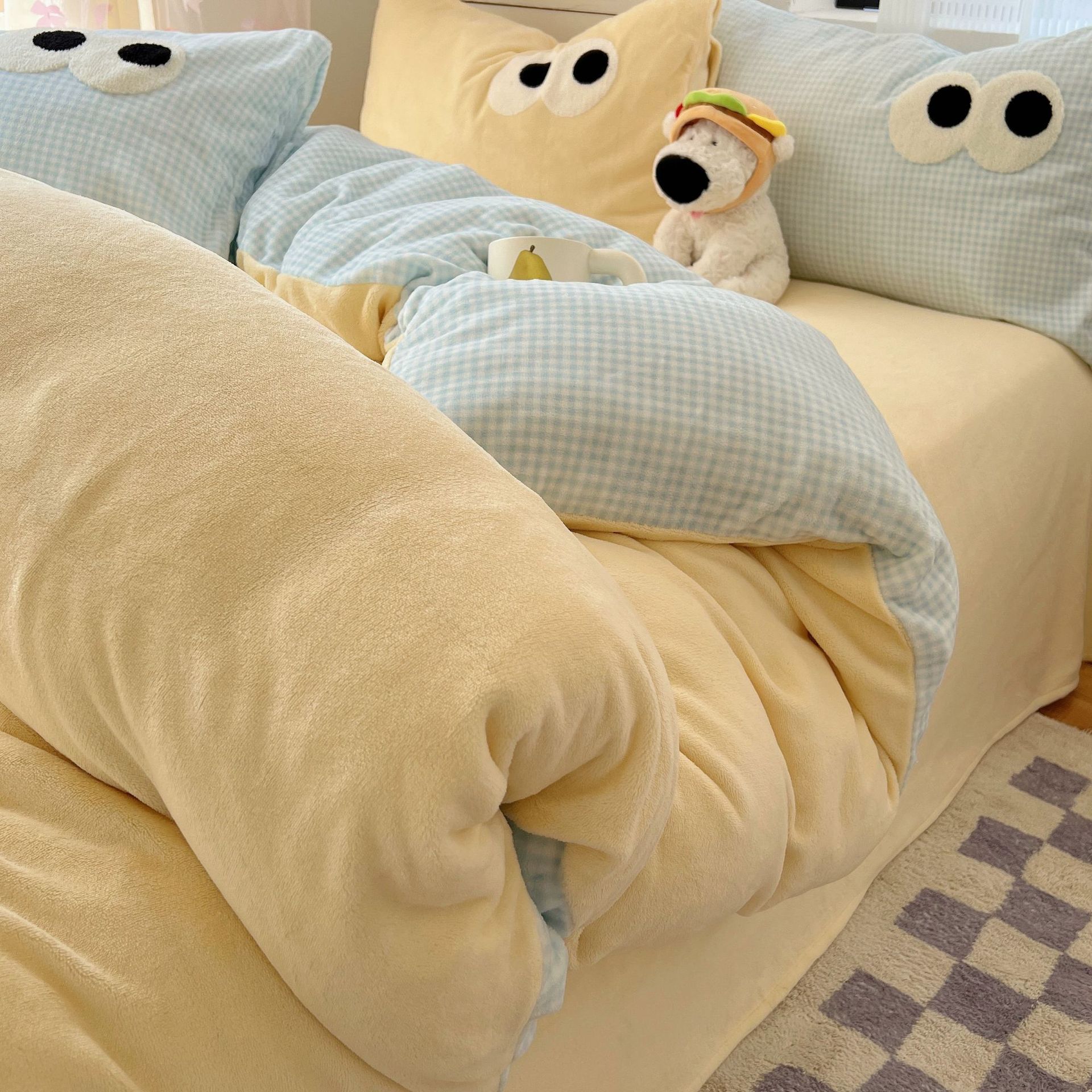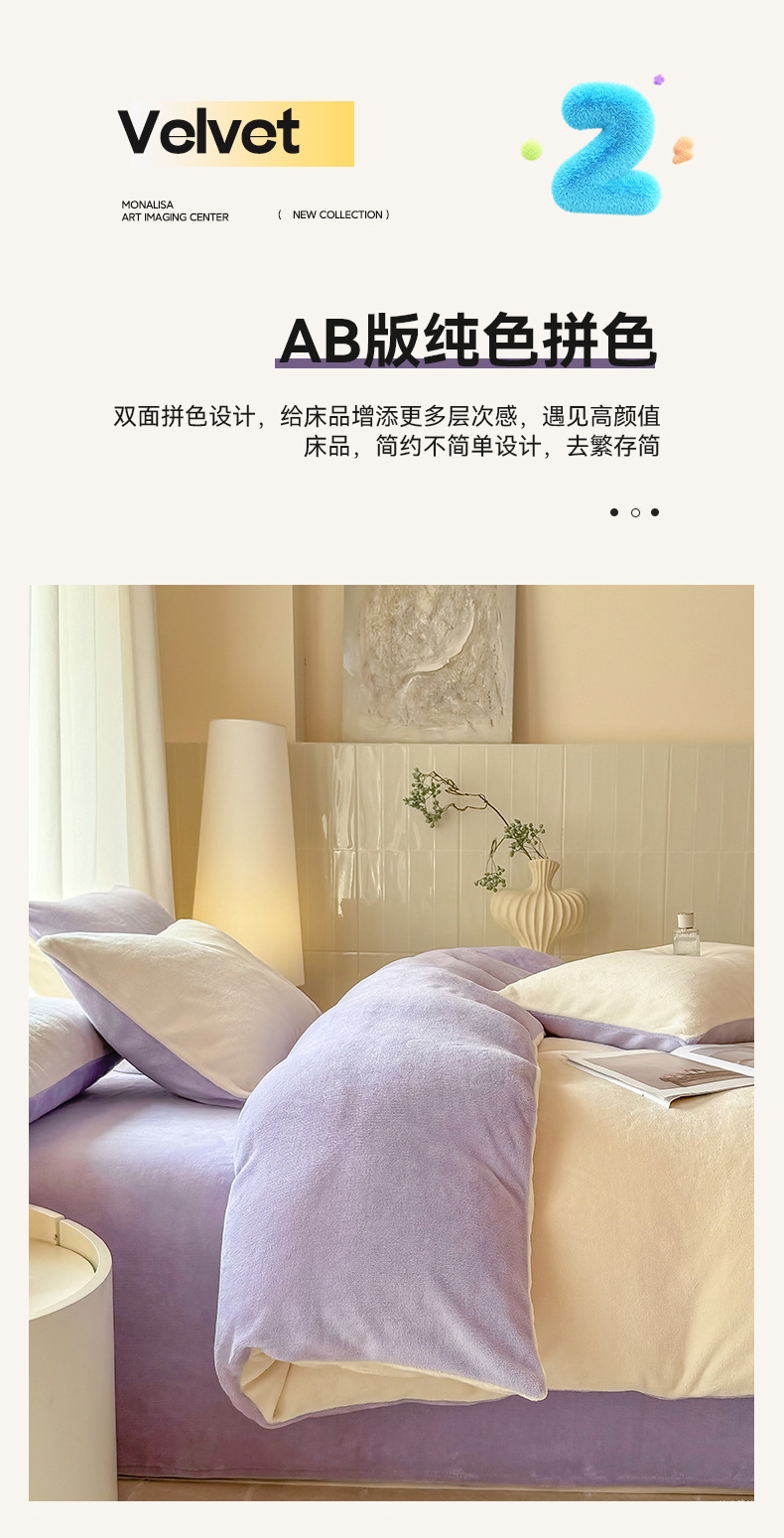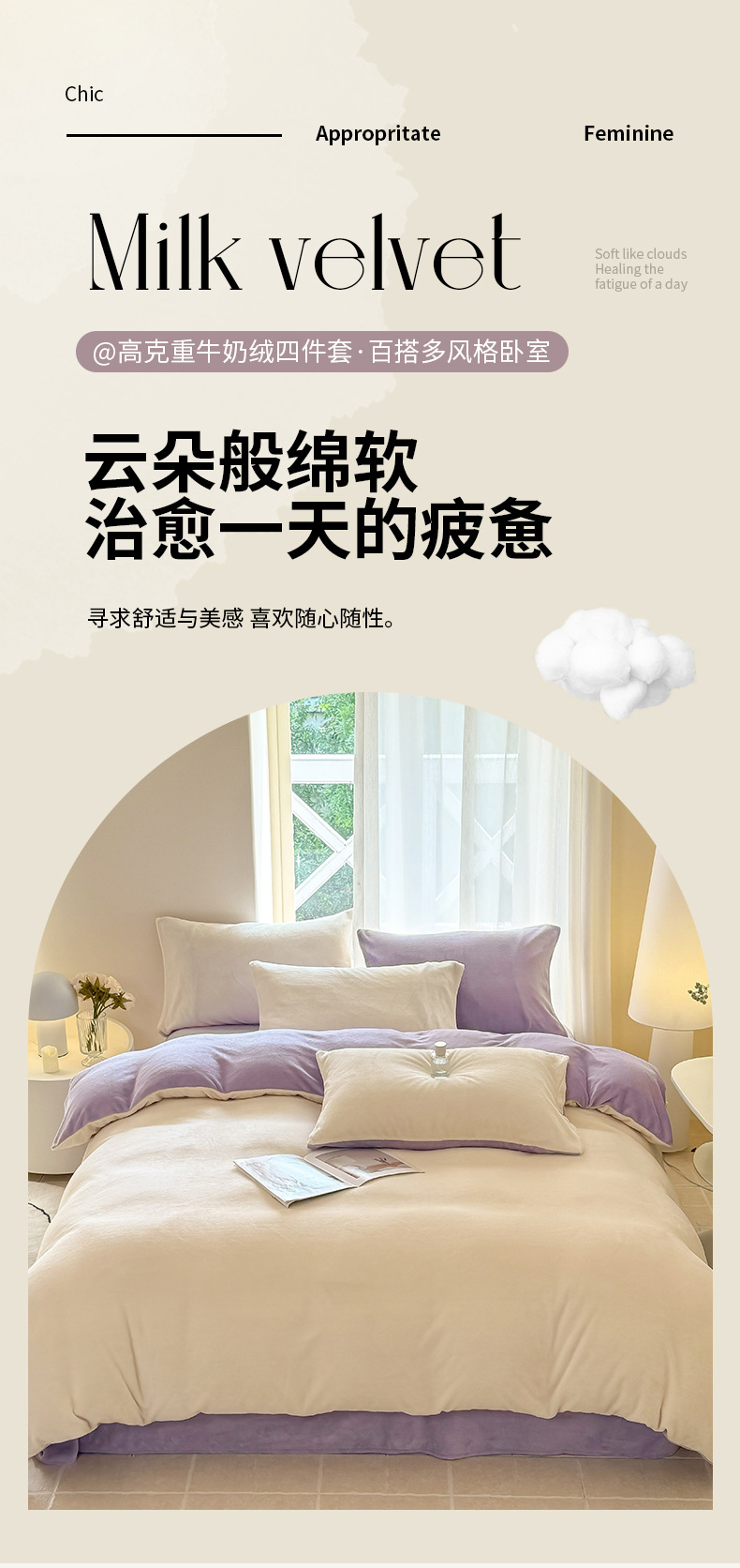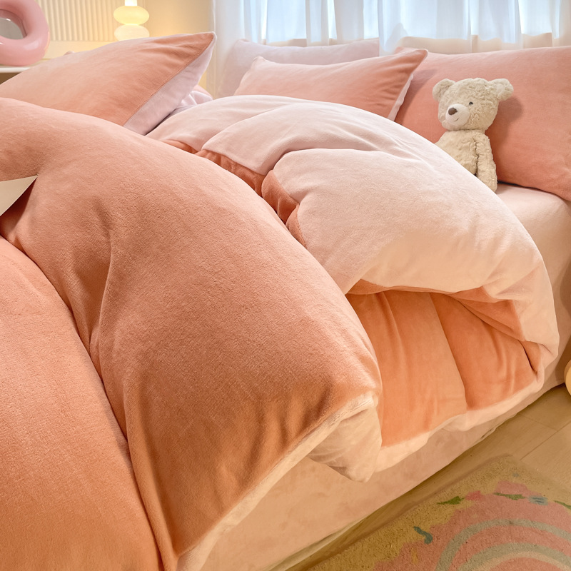 A类床上用品冬季加厚牛奶绒四件套加绒被套珊瑚法兰绒床单三件套4