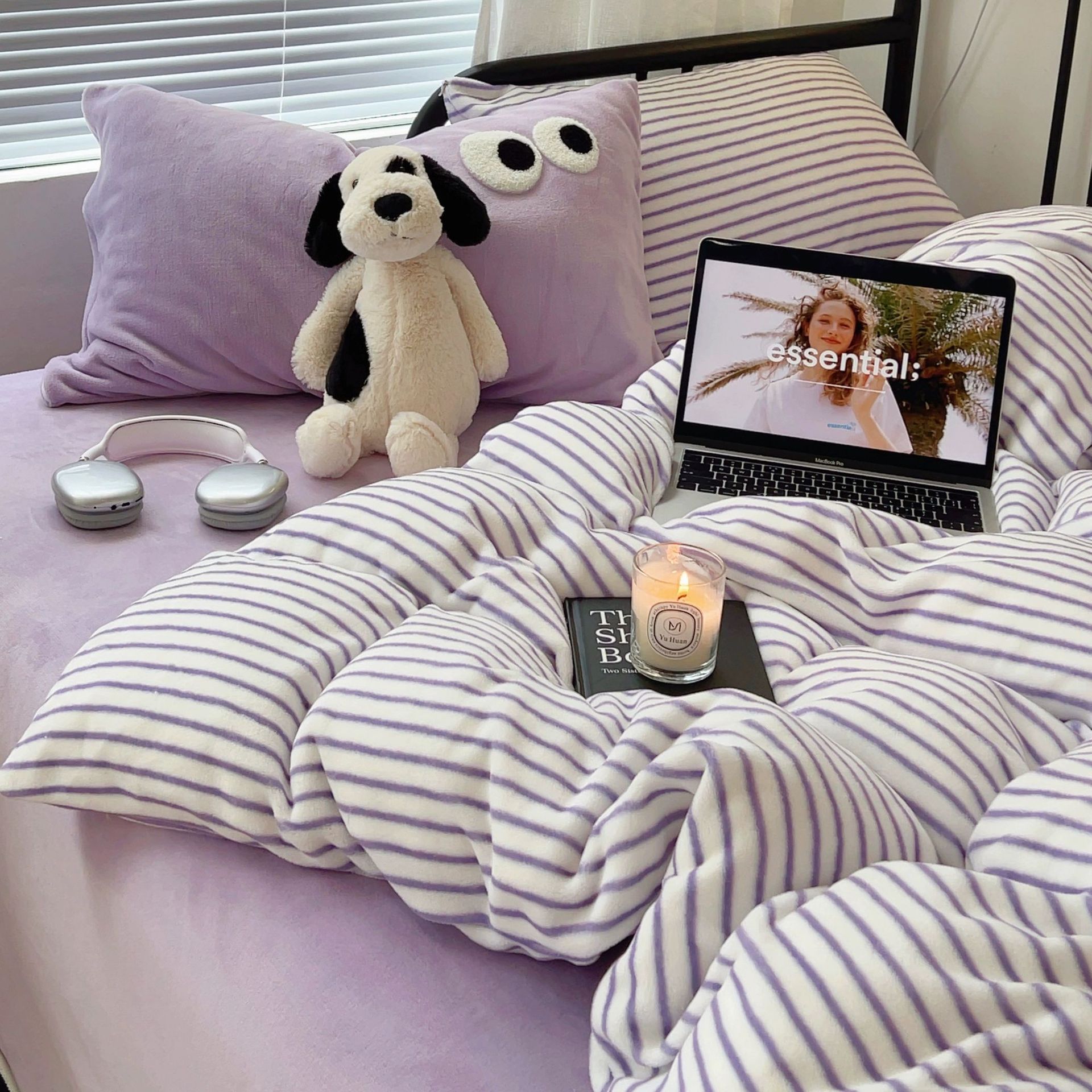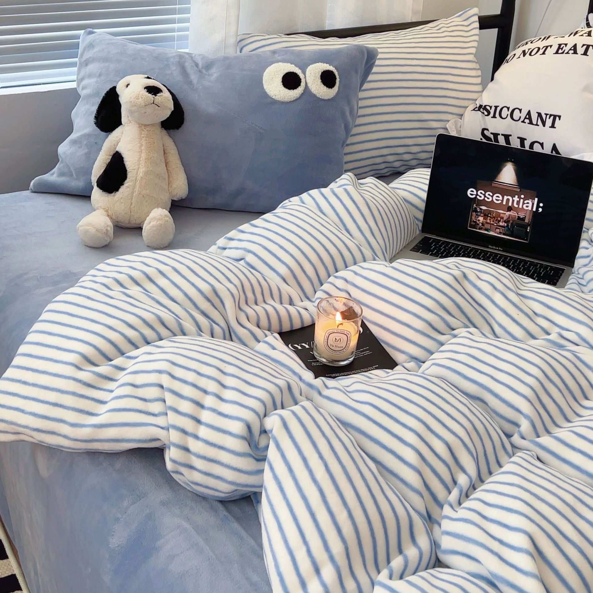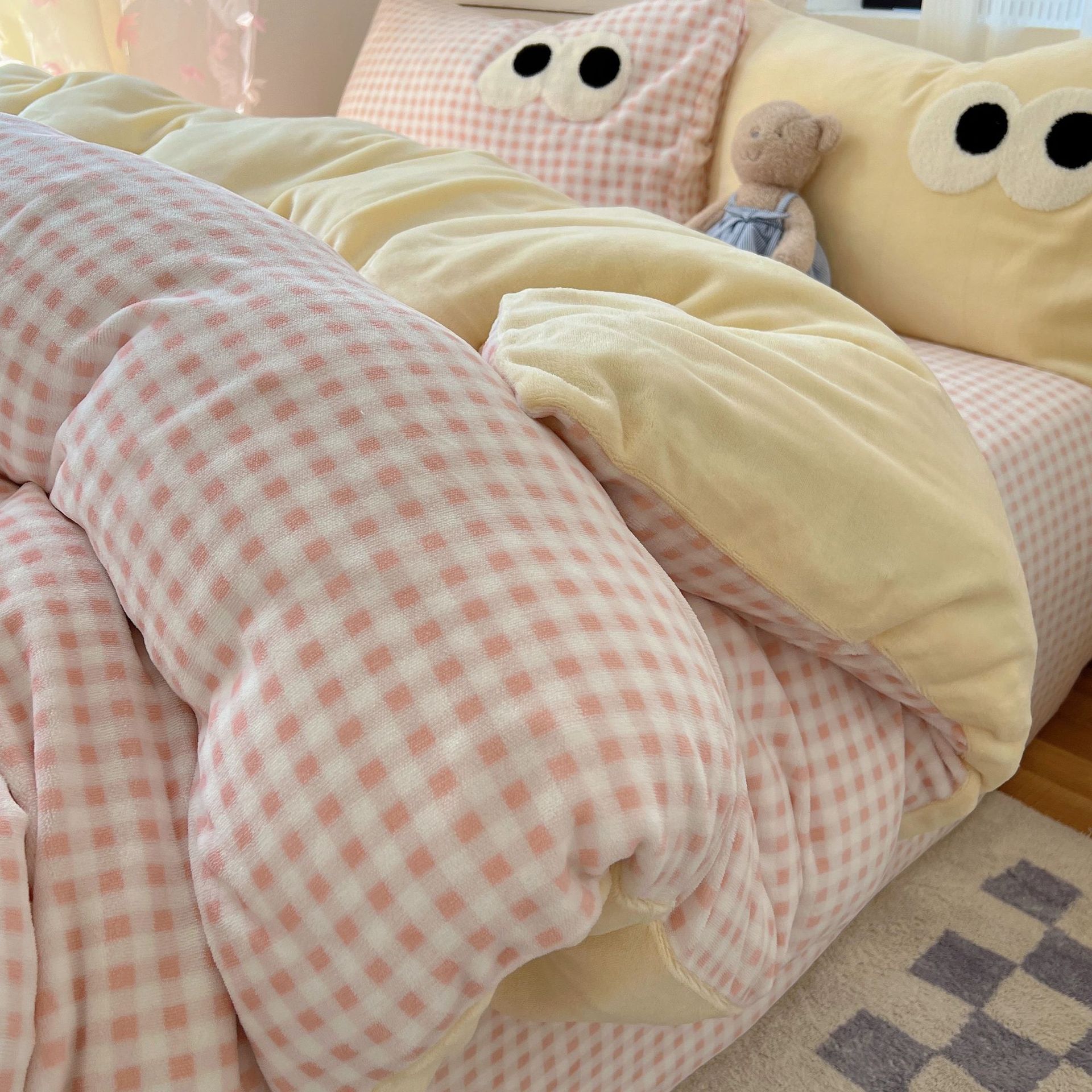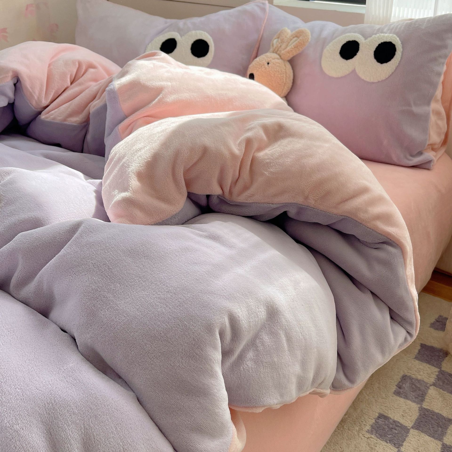 A类床上用品冬季加厚牛奶绒四件套加绒被套珊瑚法兰绒床单三件套4