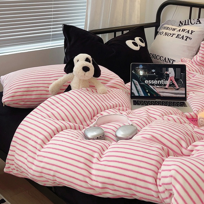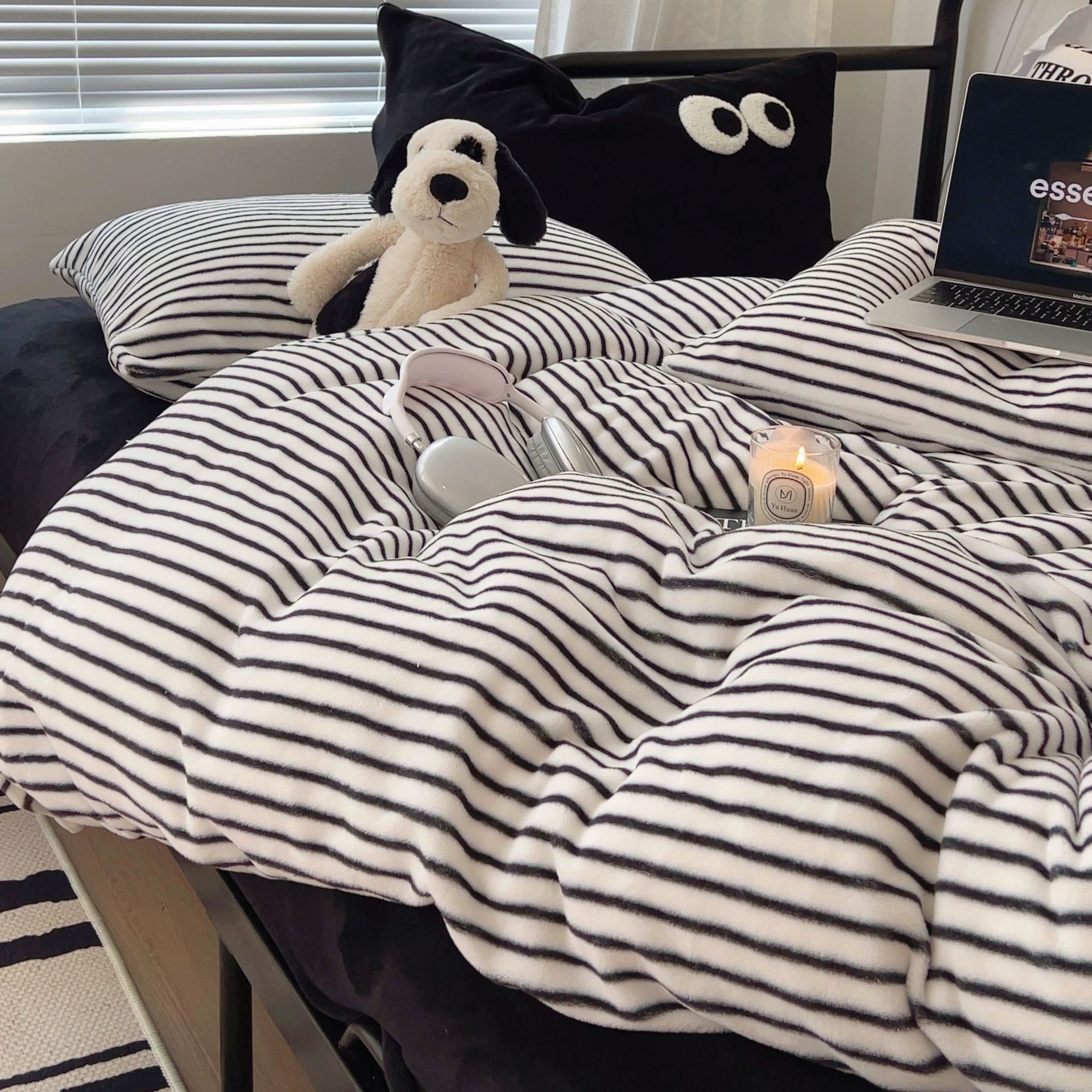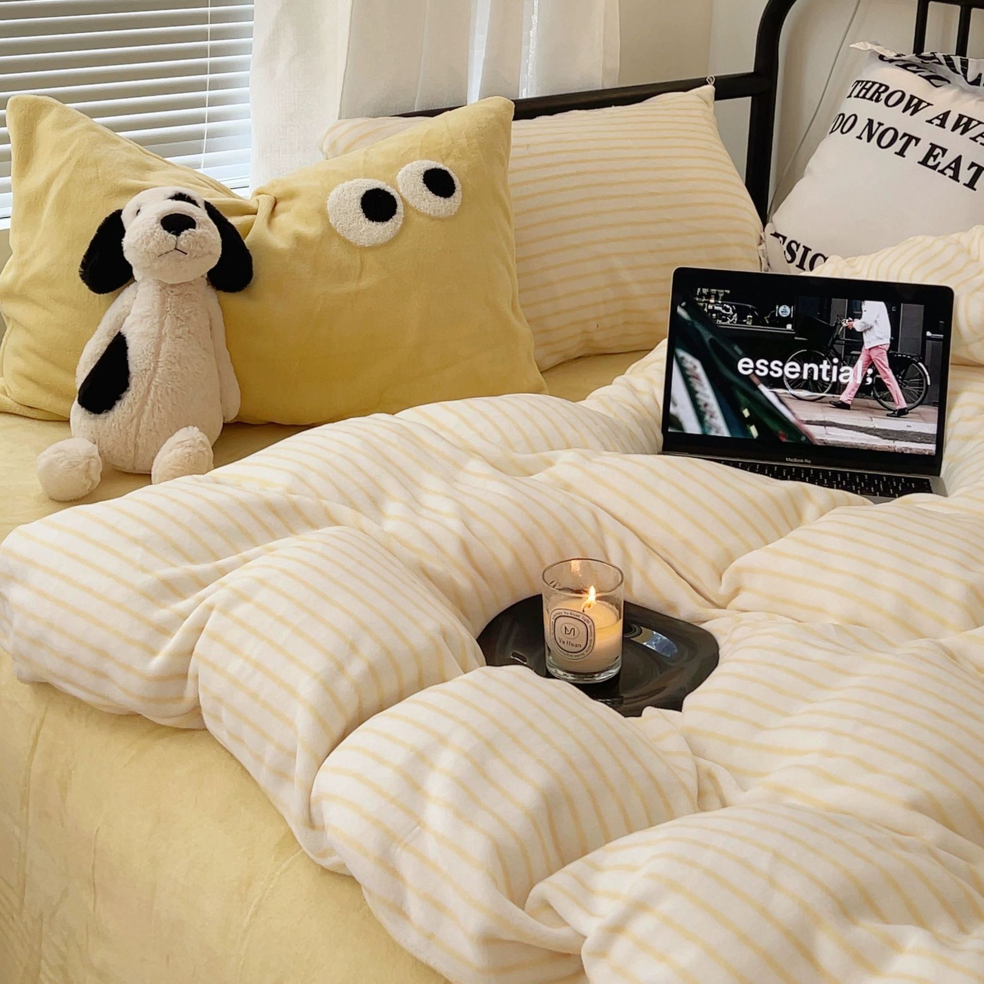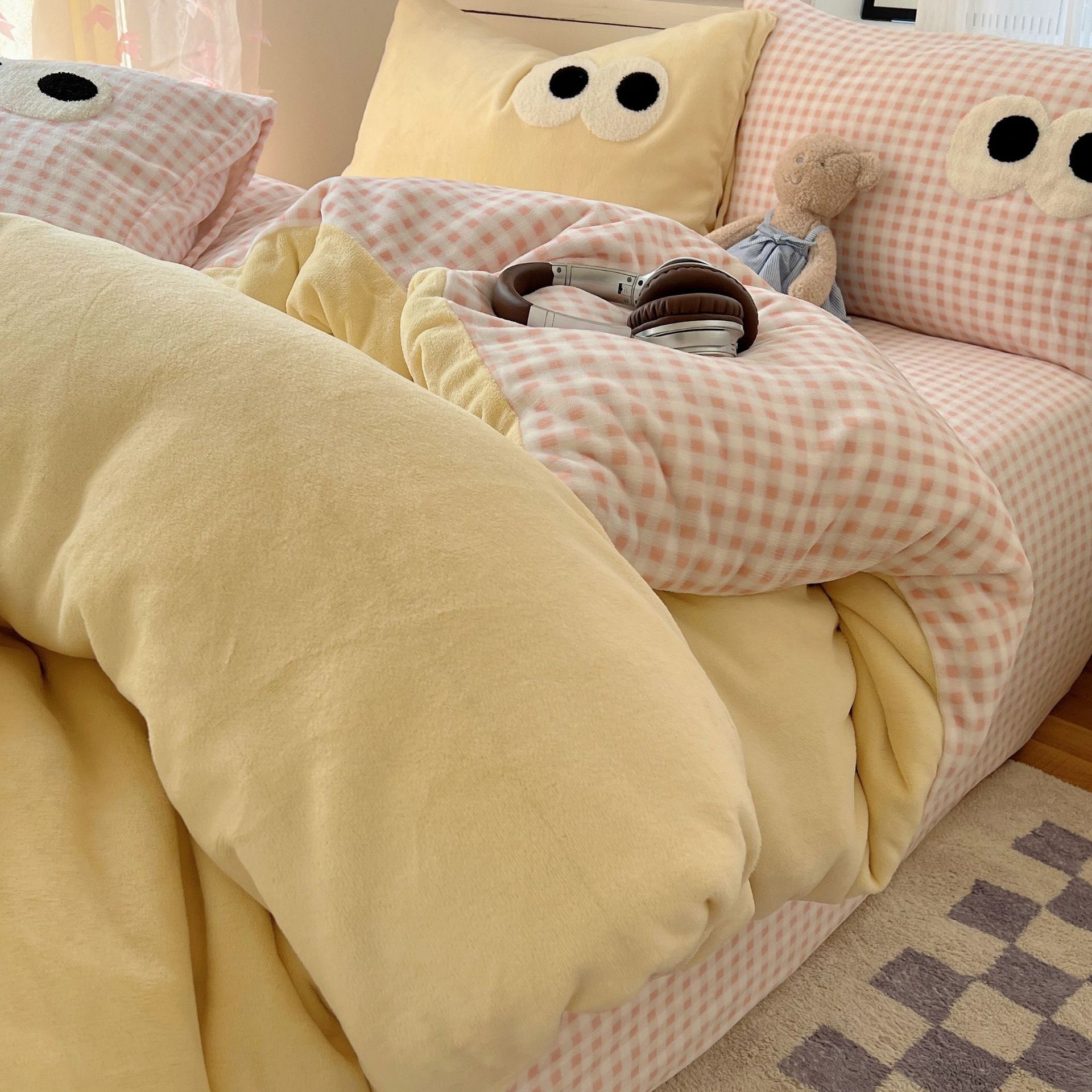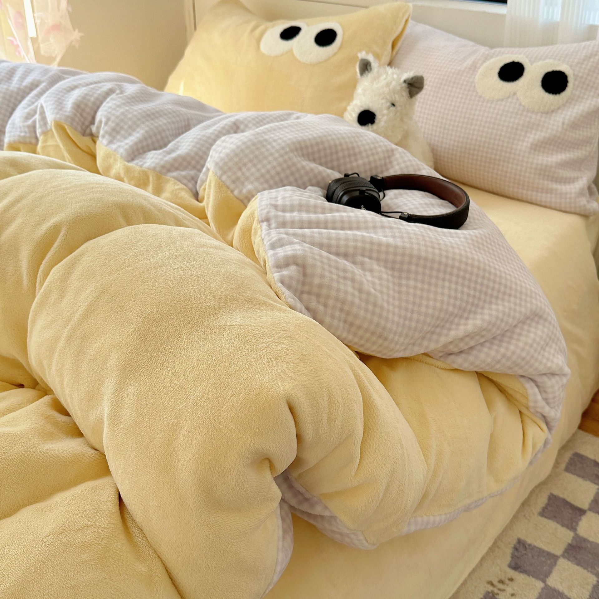 A类床上用品冬季加厚牛奶绒四件套加绒被套珊瑚法兰绒床单三件套4